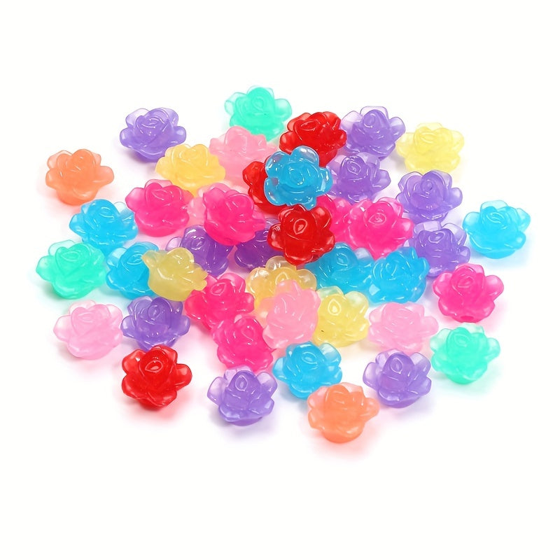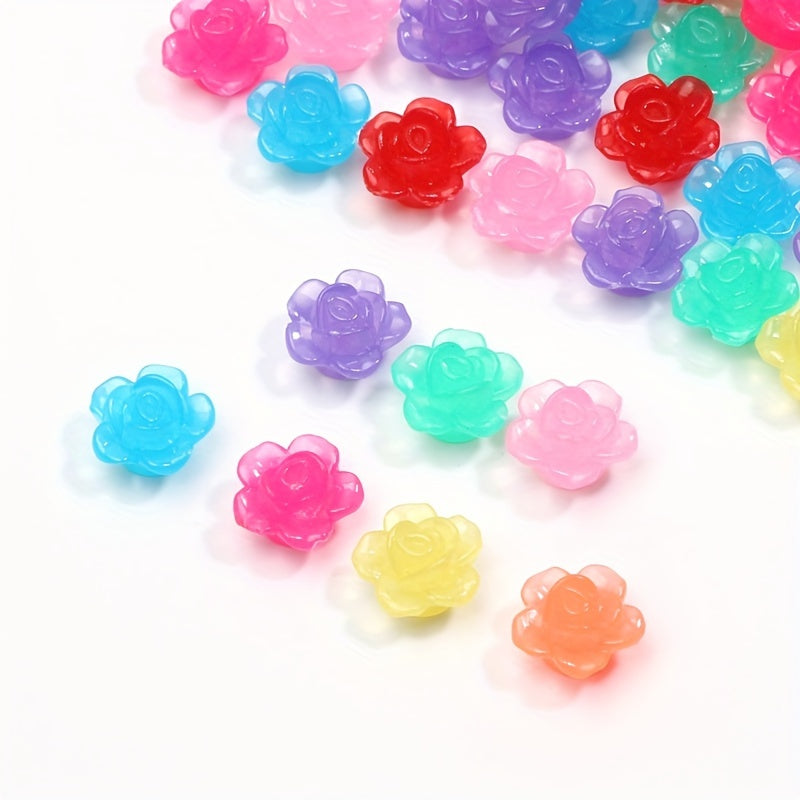 These 12mm jelly flower acrylic beads are perfect for creating unique jewelry pieces. Add a pop of color and fun to your designs with these vibrant beads.