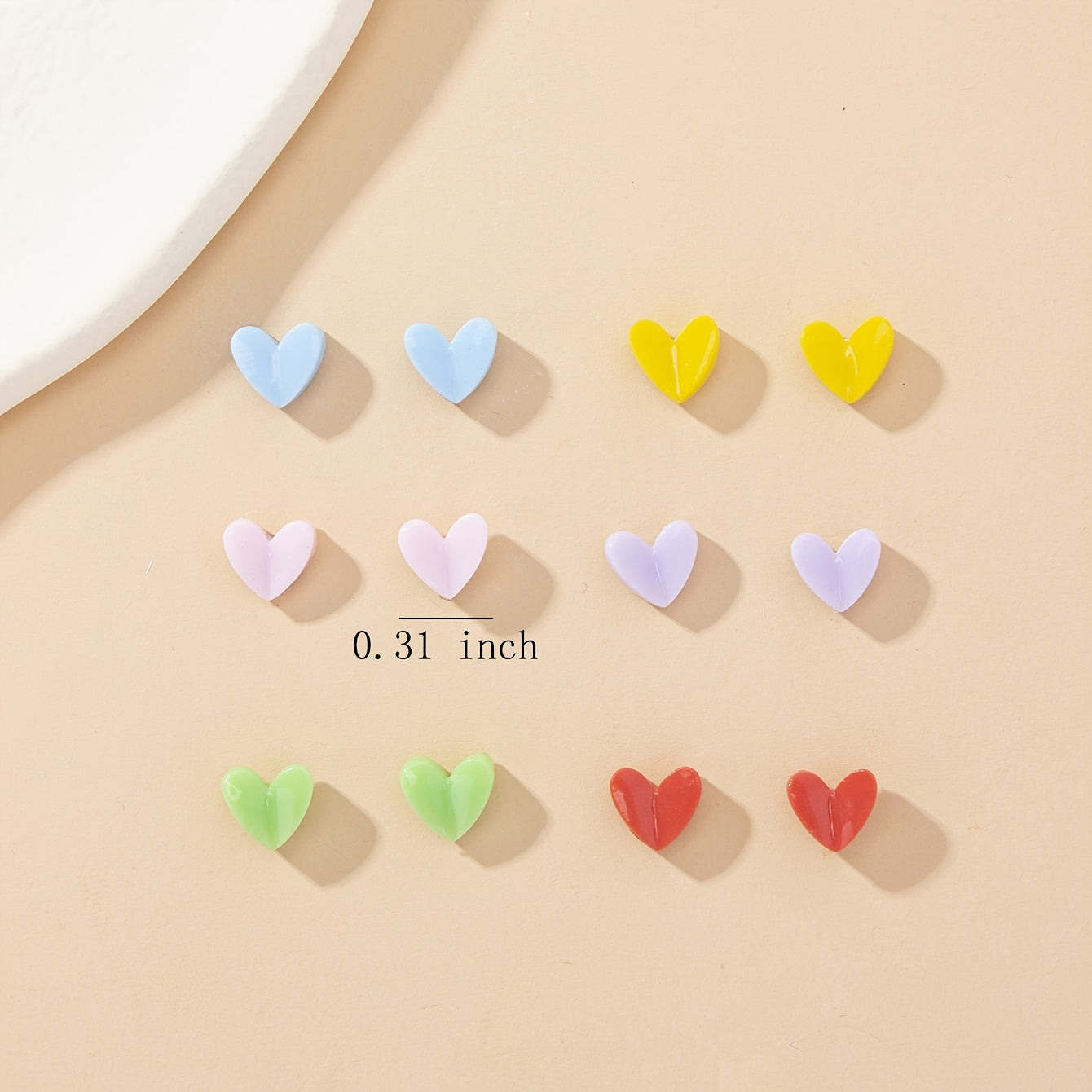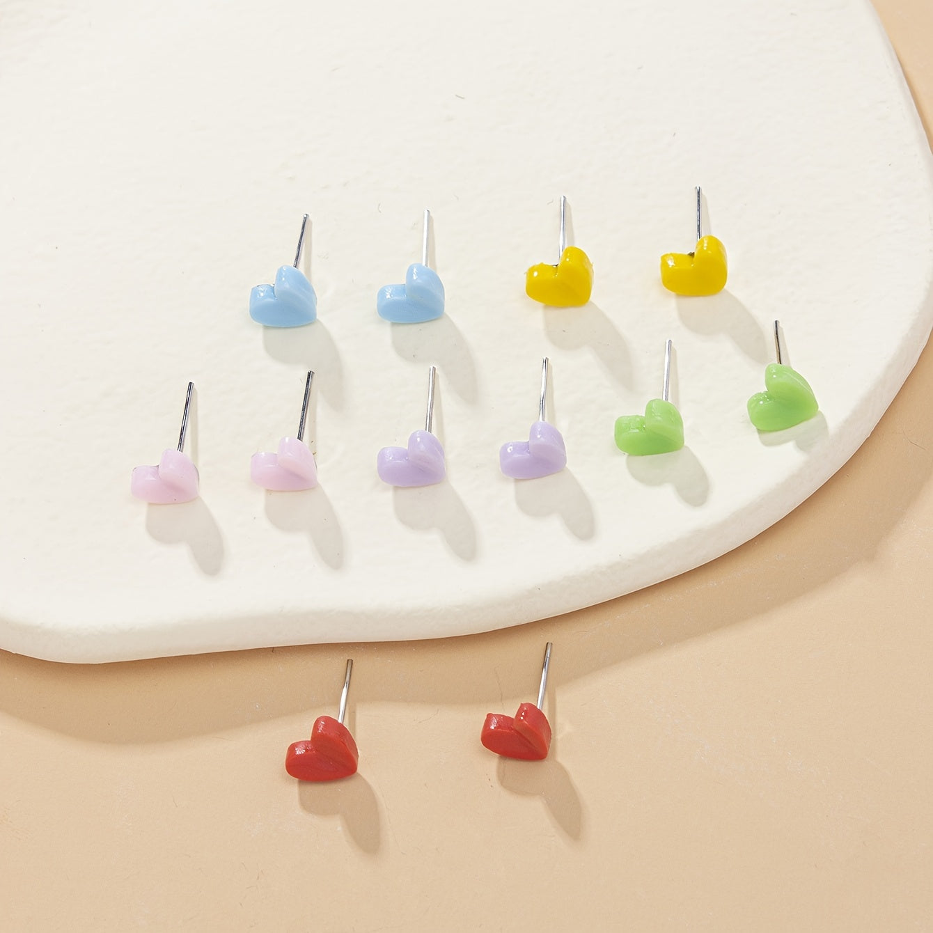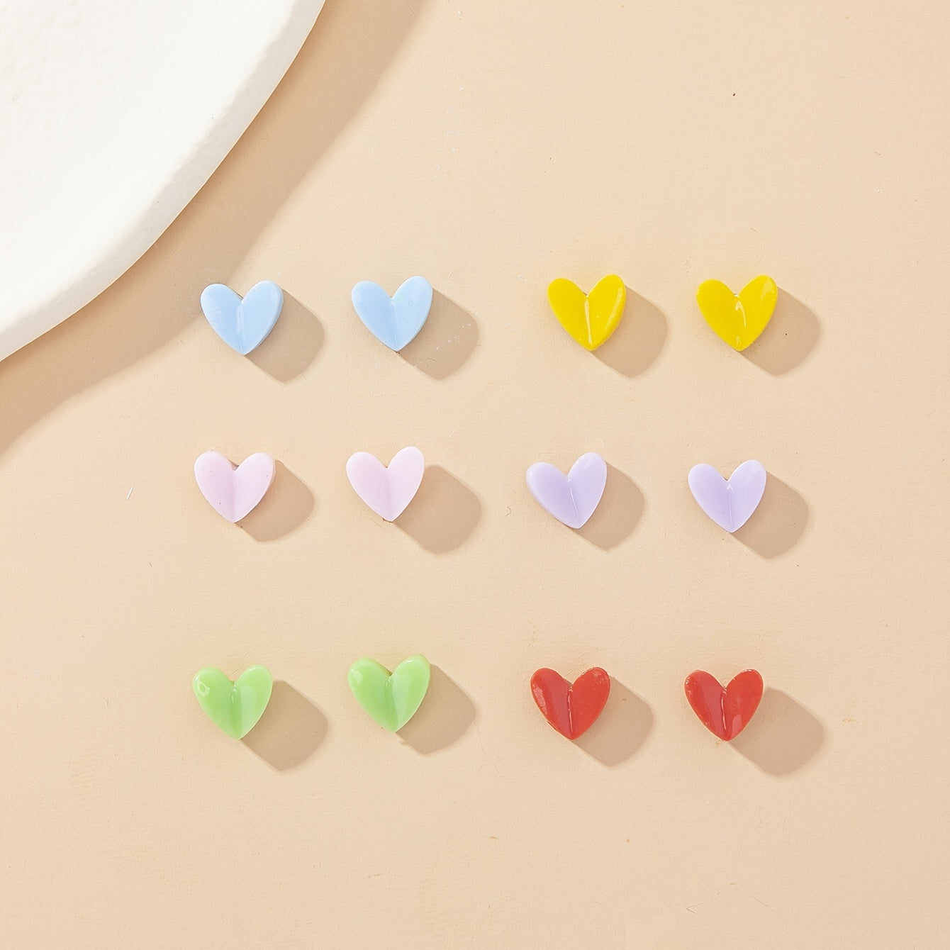 6 Pairs Small Love Stud Earrings Set, Multicolor Resin, Women's Gift Jewelry