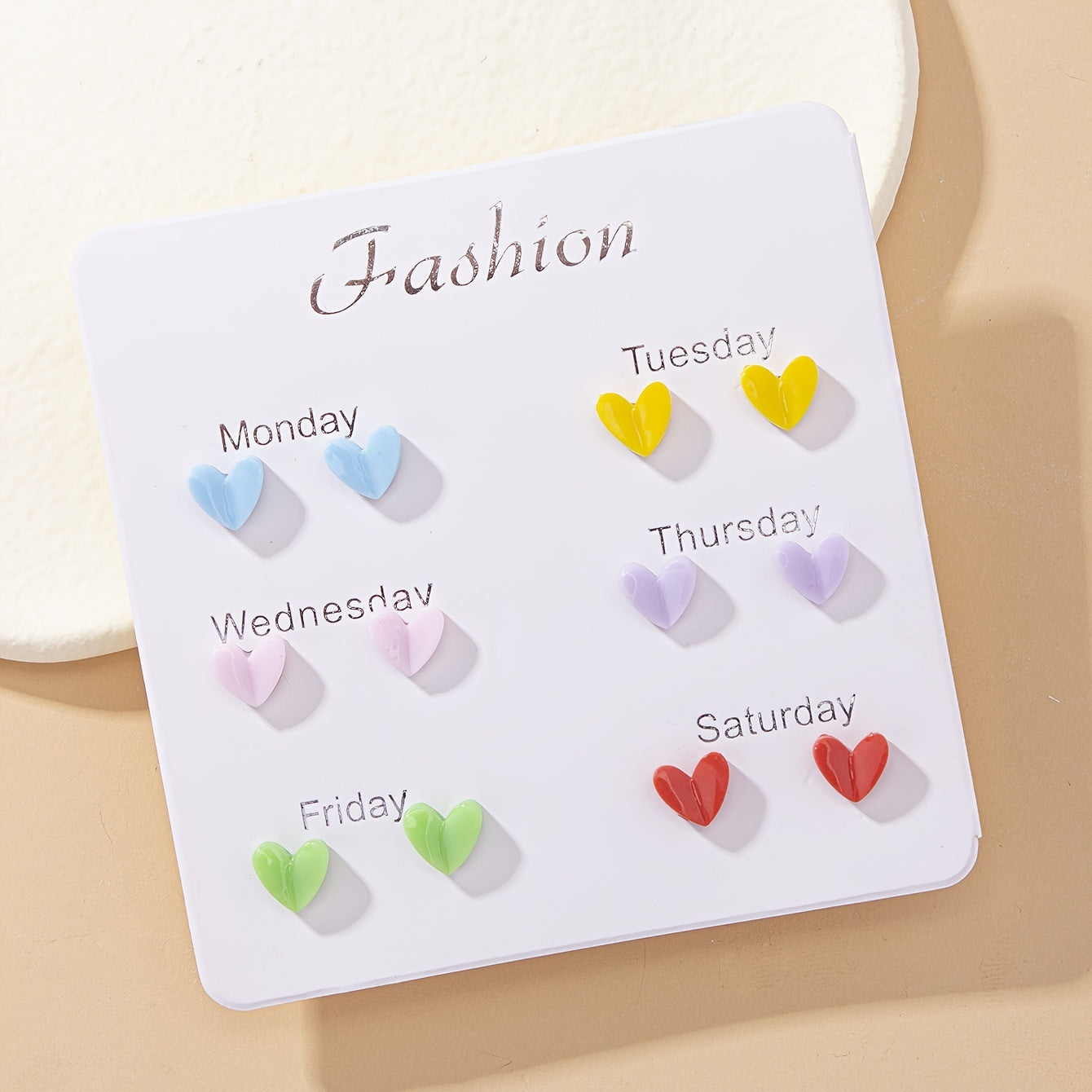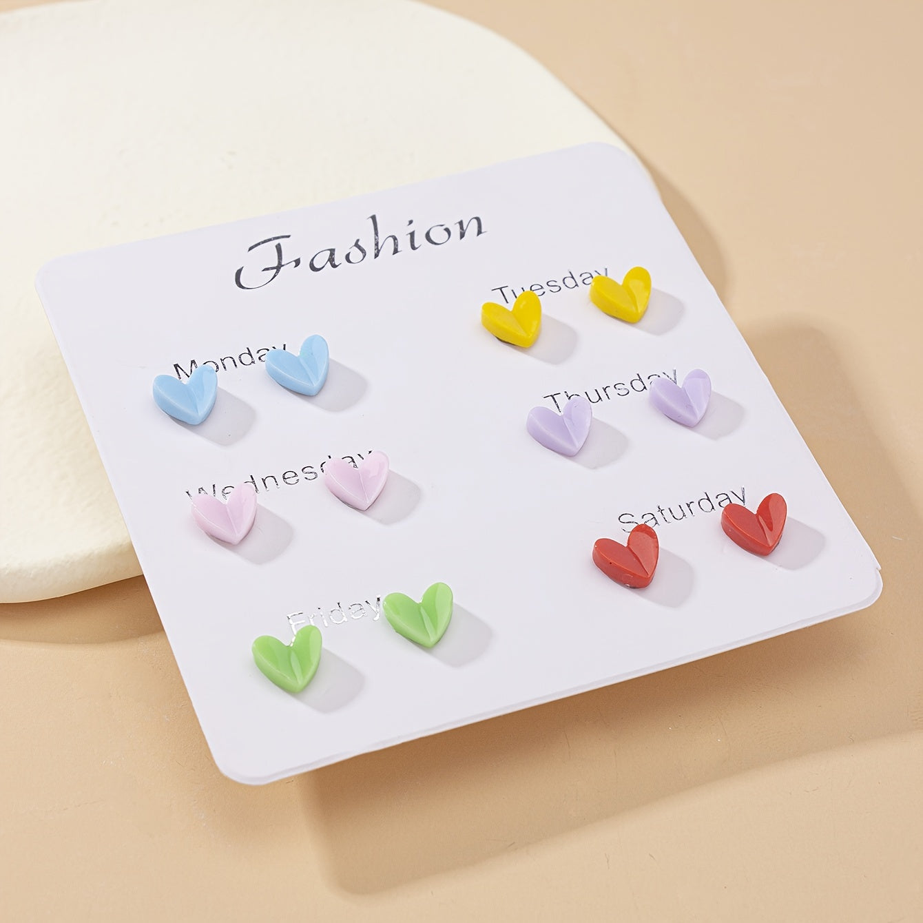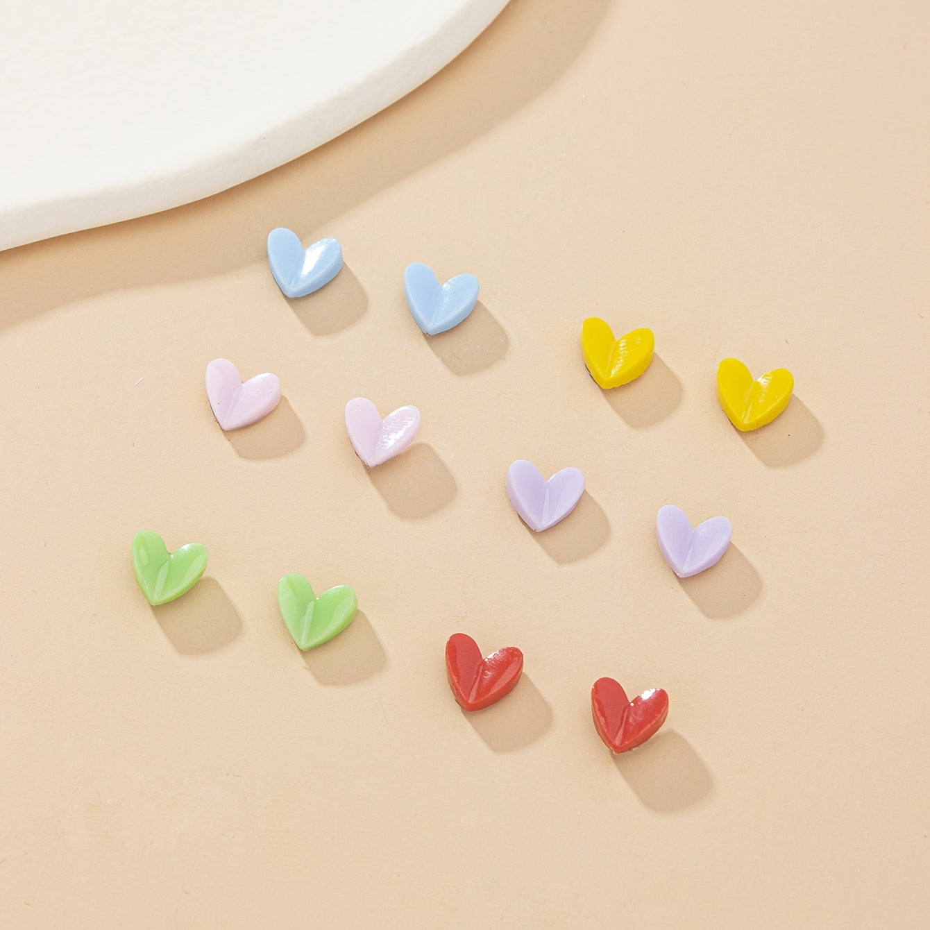 6 Pairs Small Love Stud Earrings Set, Multicolor Resin, Women's Gift Jewelry