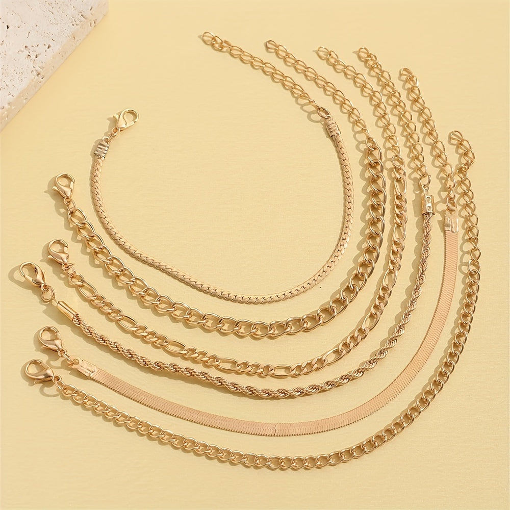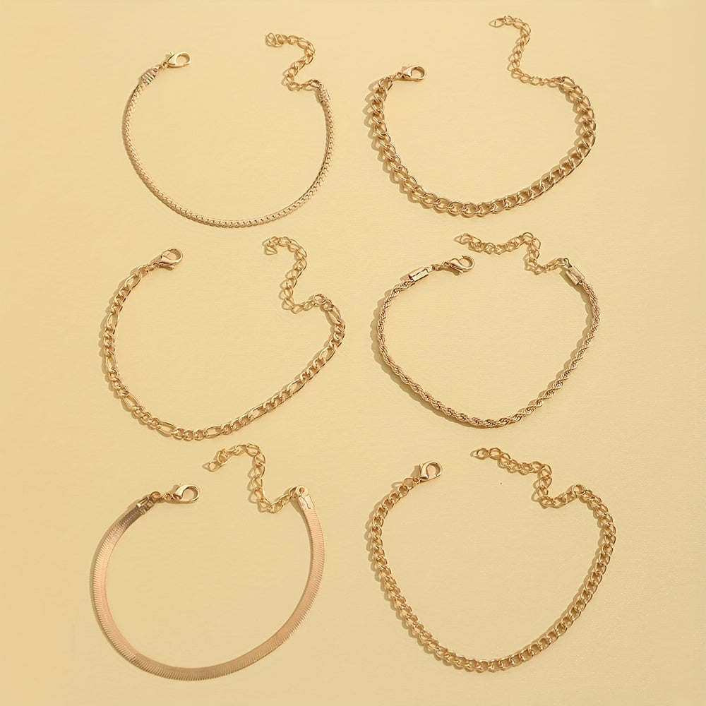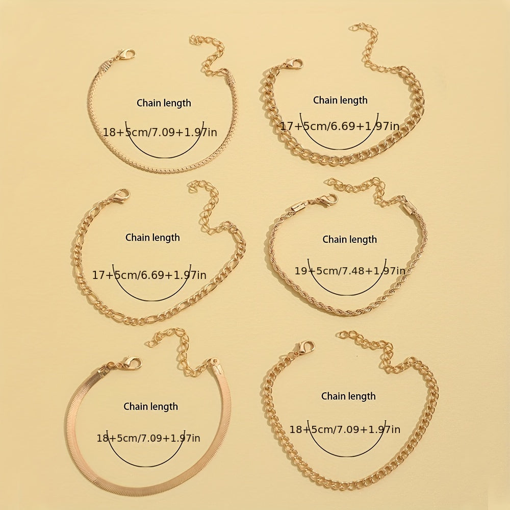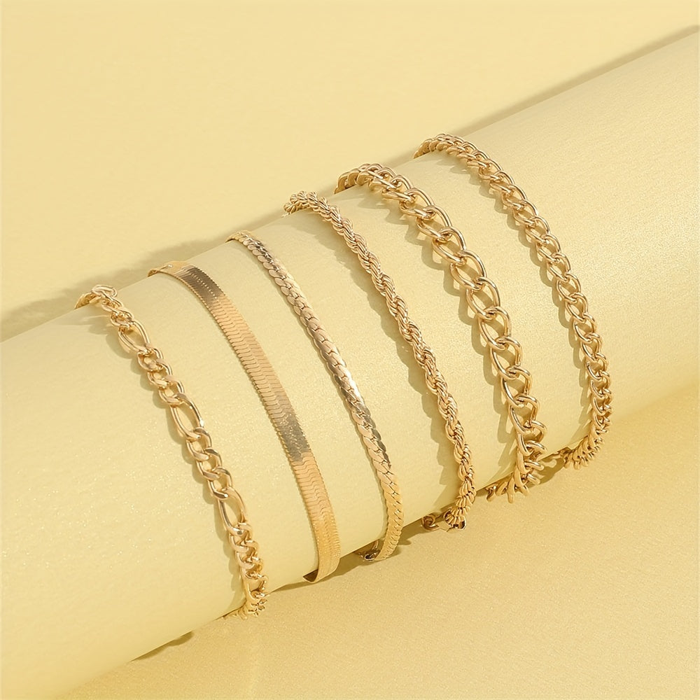 Add a touch of style to your outfit with these 6pcs golden Cuban chain link bracelets. Made of high-quality alloy, these bracelets are perfect for parties and make a great gift for women and girls.