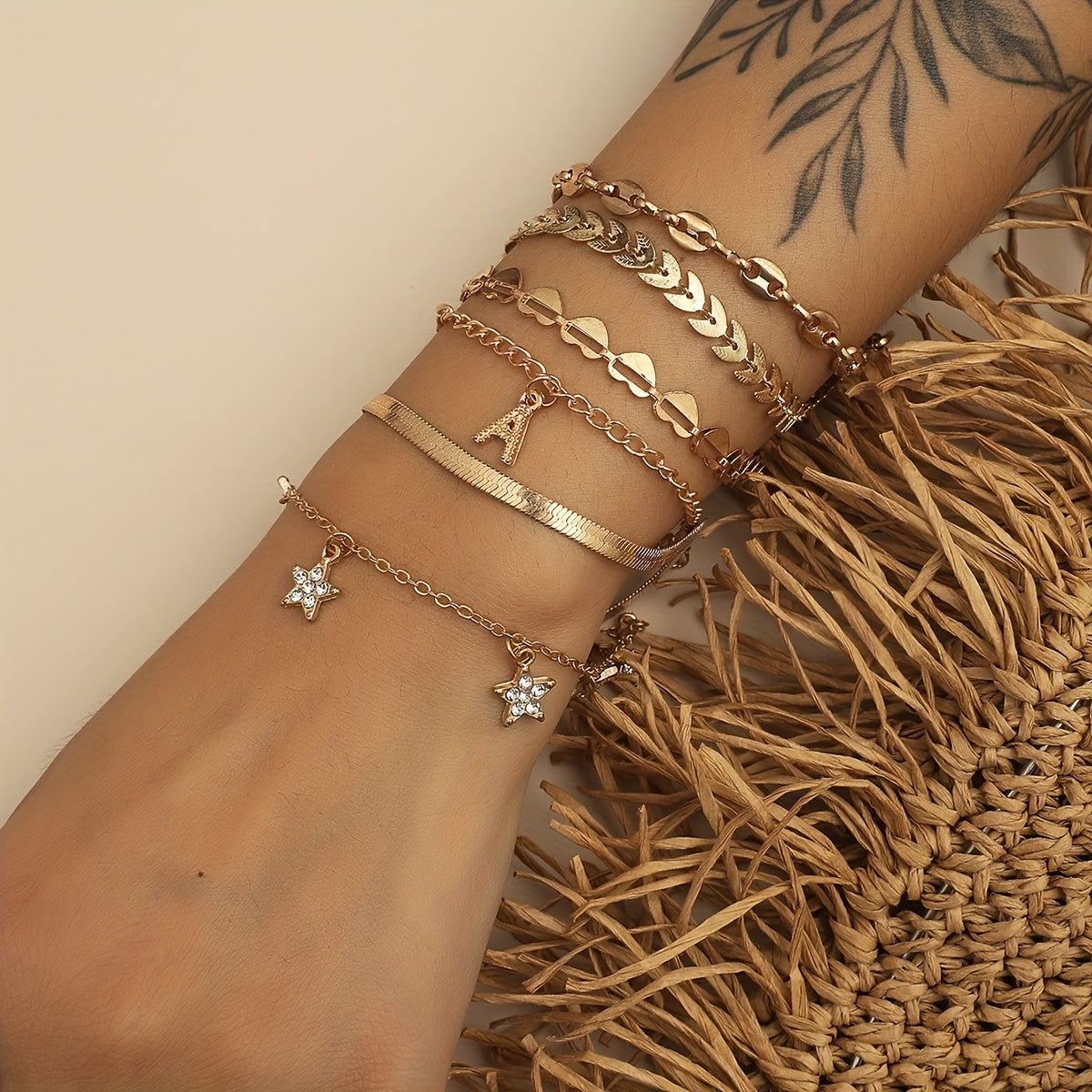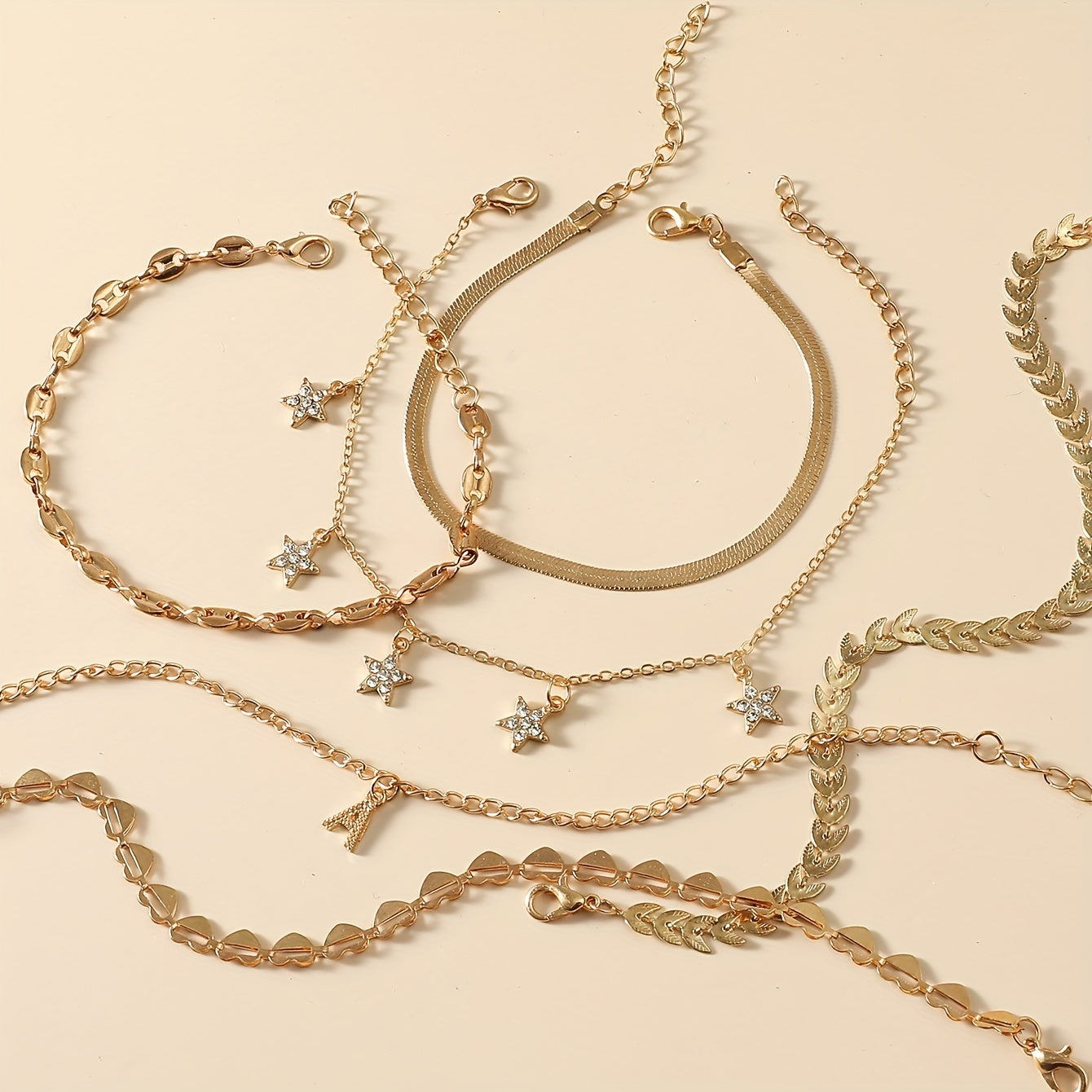 This set of 6 golden star wheat bracelets makes a perfect accessory for the summer. Ideal for gifting to a loved one for the holidays.