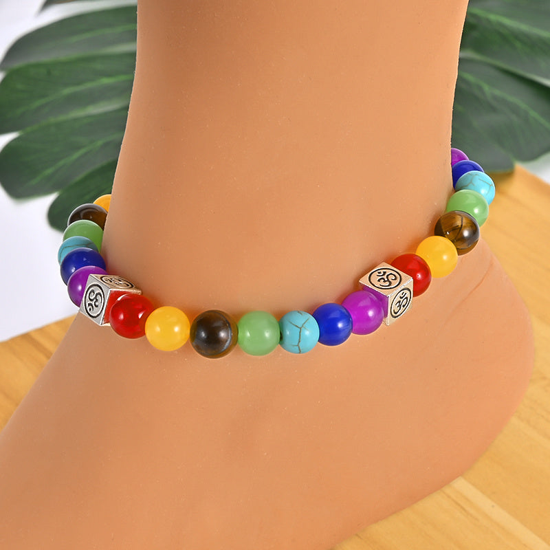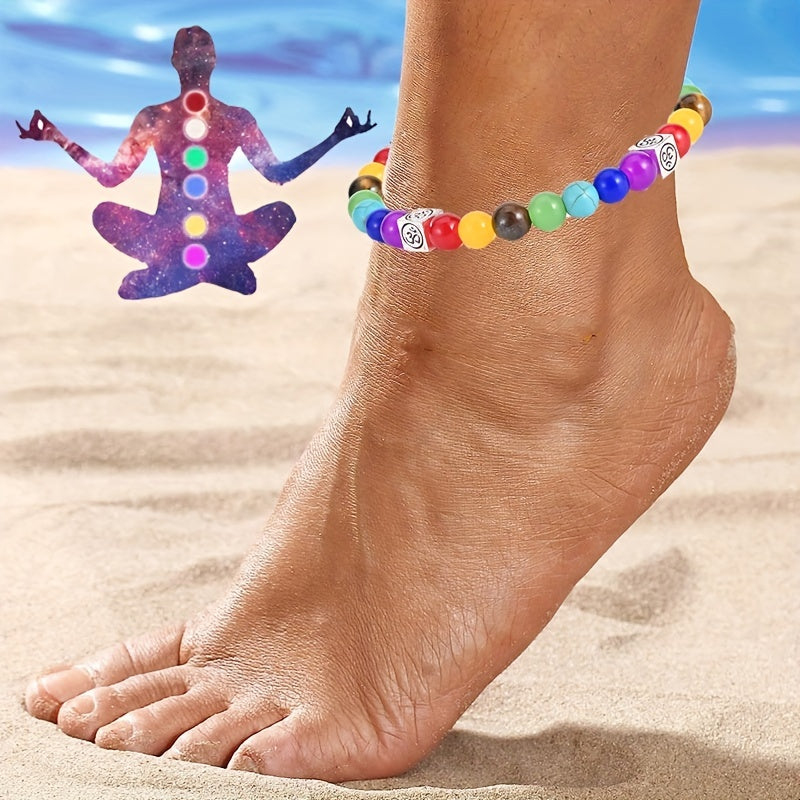 This adjustable ankle bracelet features 7 chakra beads for stress relief and balance. Perfect for yoga enthusiasts and women seeking positive energy.