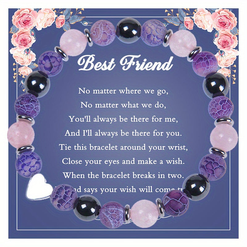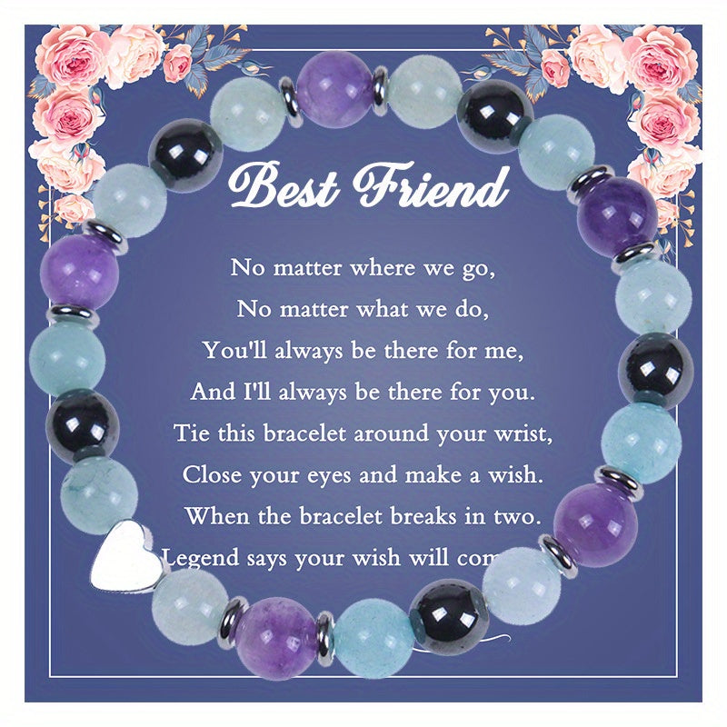 This bracelet features 8mm natural amethyst stone beads, perfect as a friendship gift.