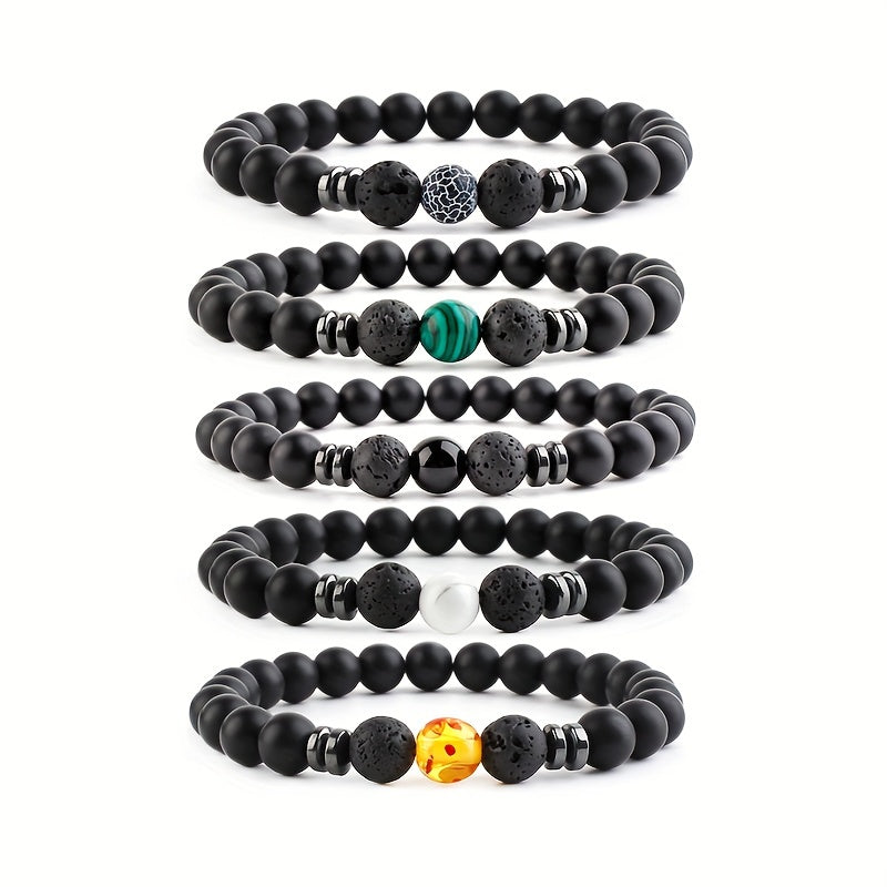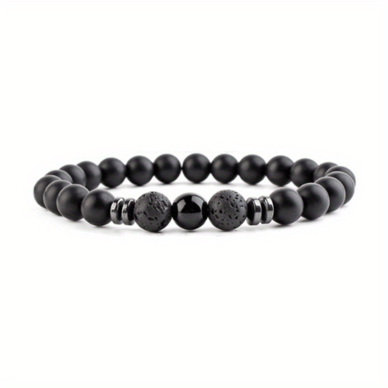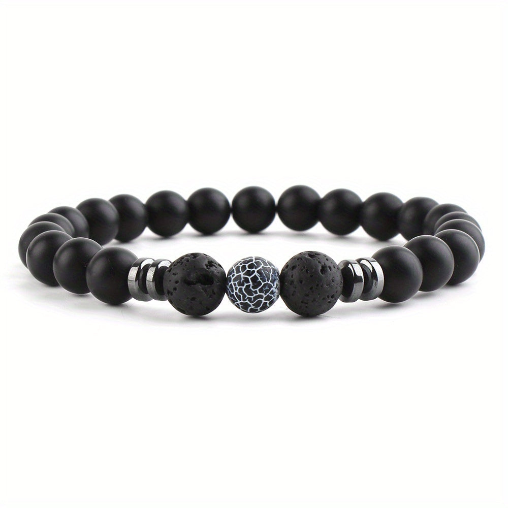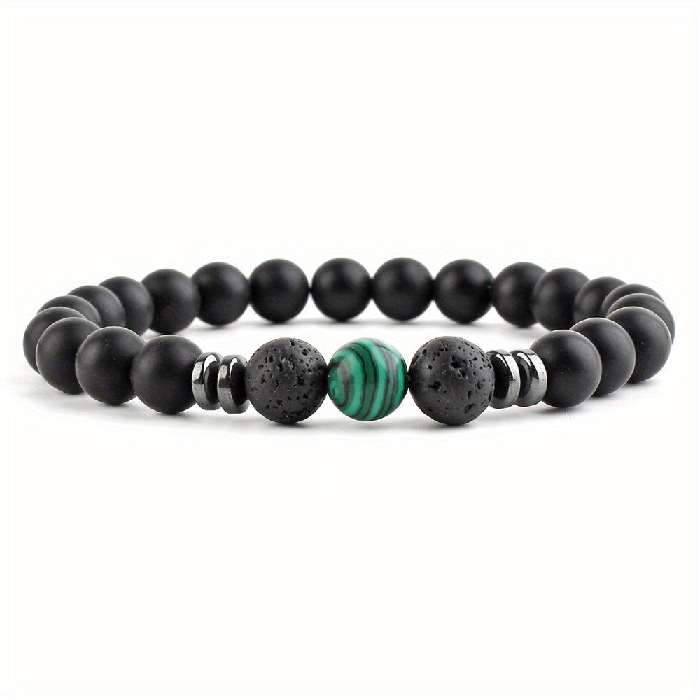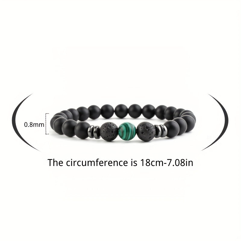 This 8MM faux stone bracelet is a stylish piece of jewelry made with natural stone. It features a combination of turquoise and faux volcanic stone, suitable for both men and women.