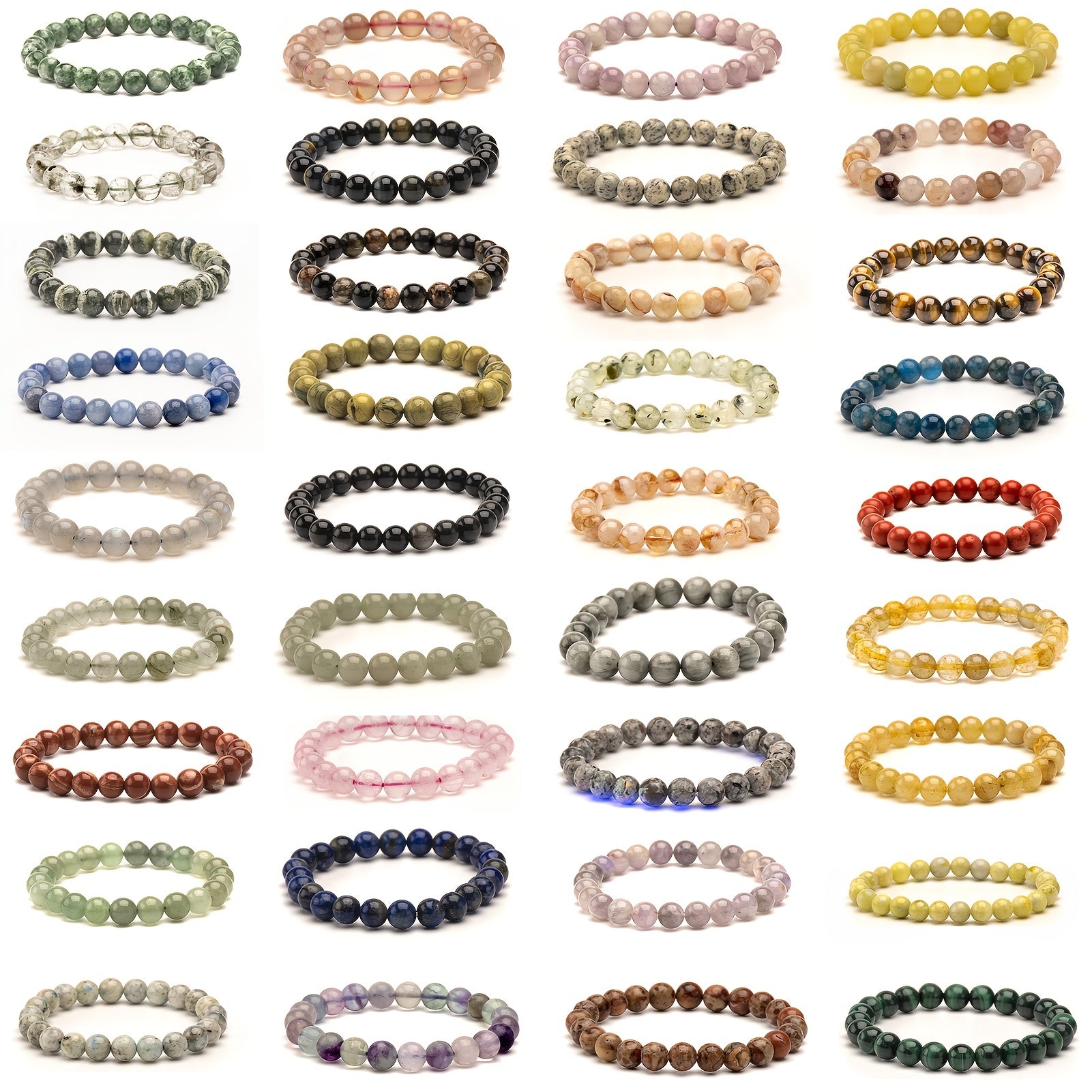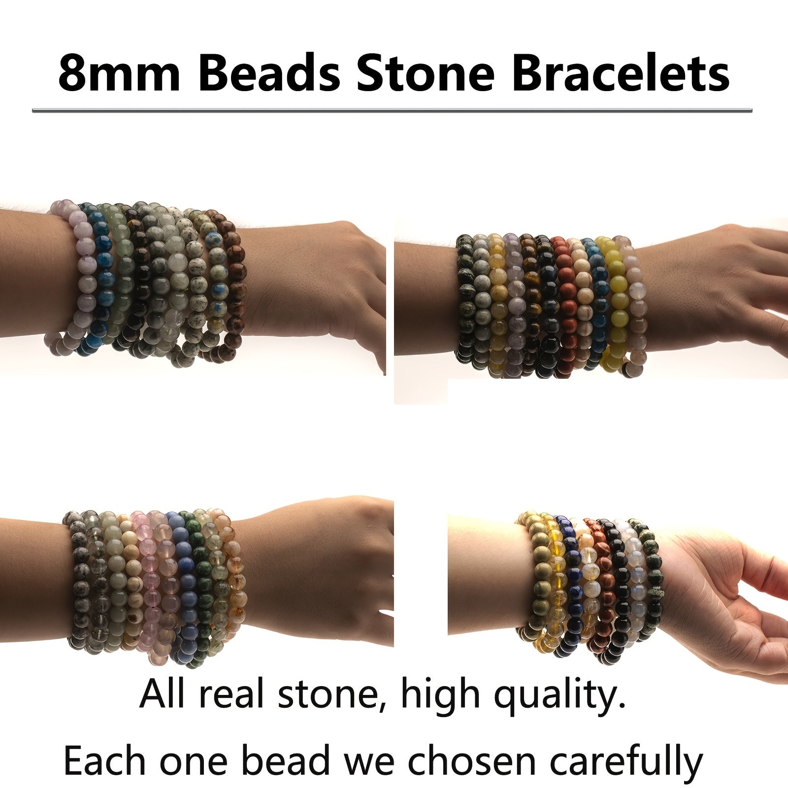 Beautiful 8mm semi-precious gemstones bracelet with healing crystal properties. Elastic stretch design for easy wear. Boost your energy and style with this power stone bracelet.