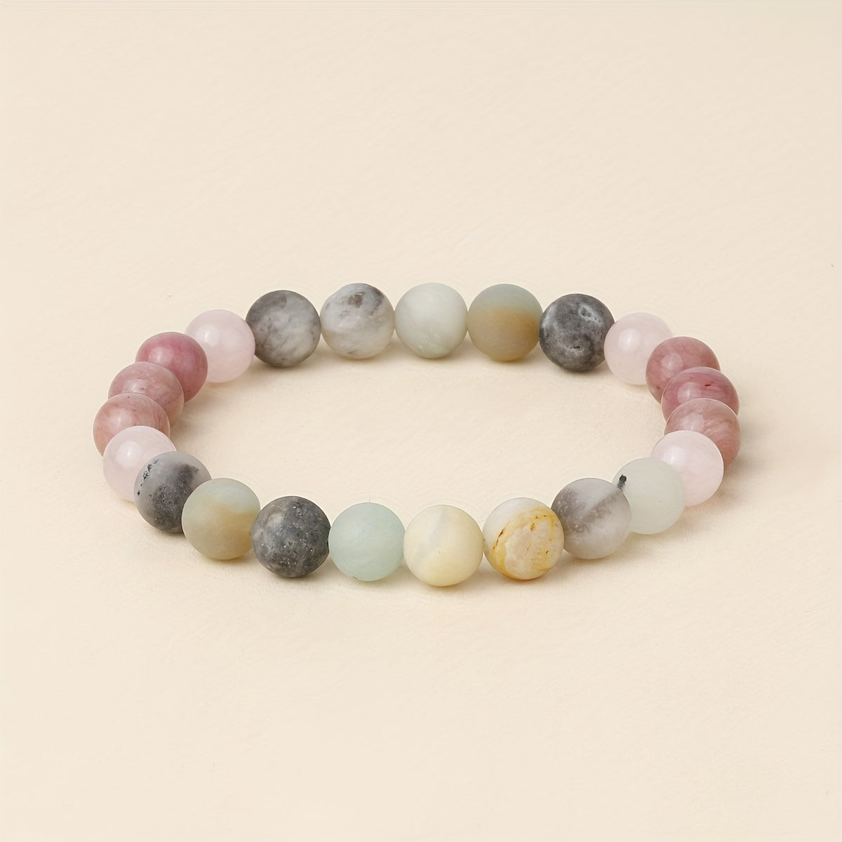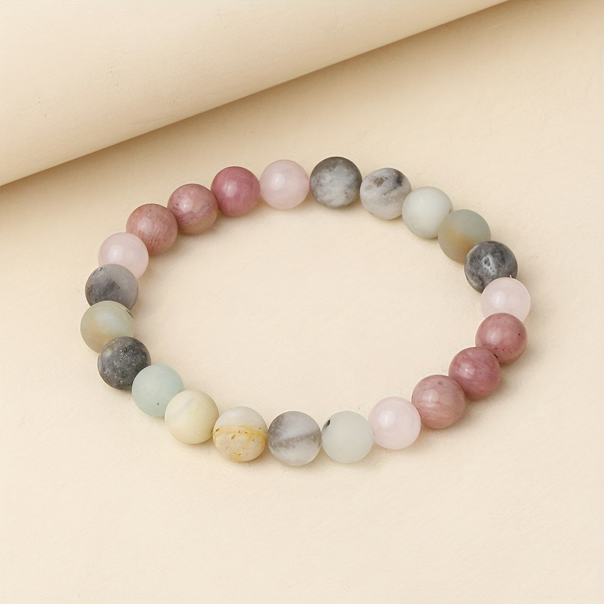 Elegant bracelet made of 8mm natural Rose Quartz and Rhodonite stone beads.
