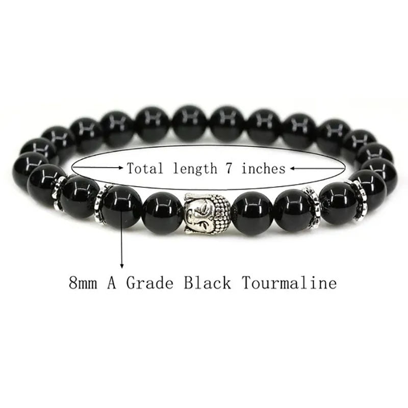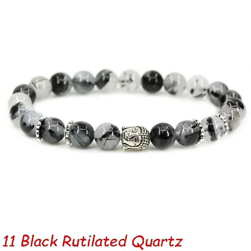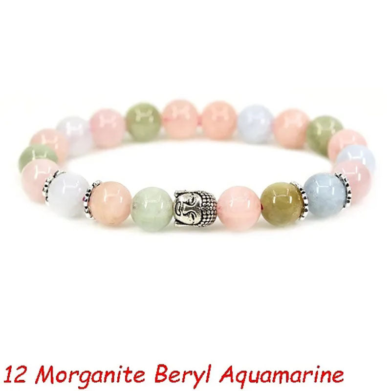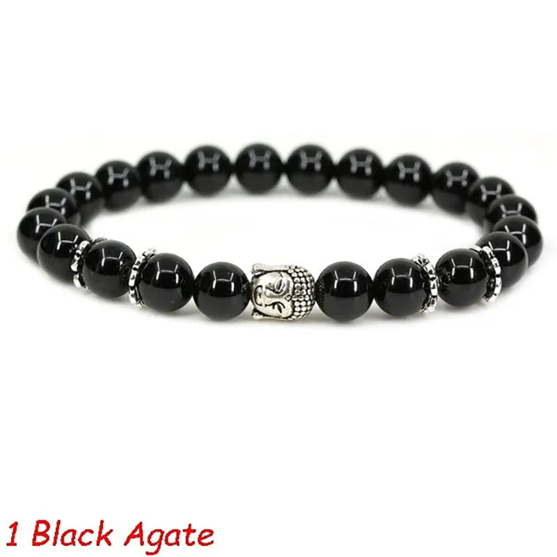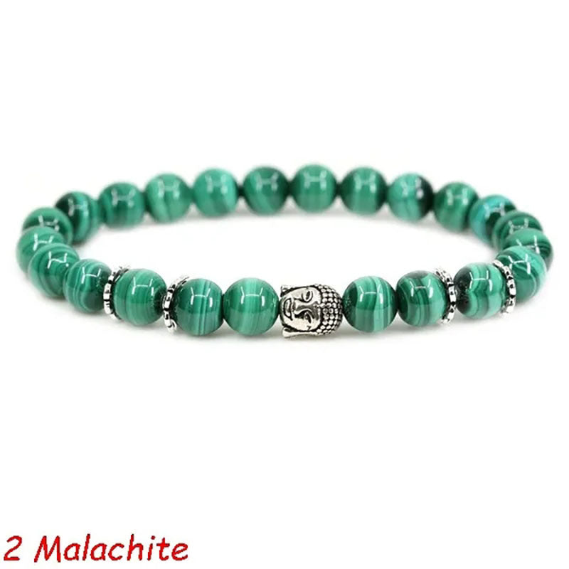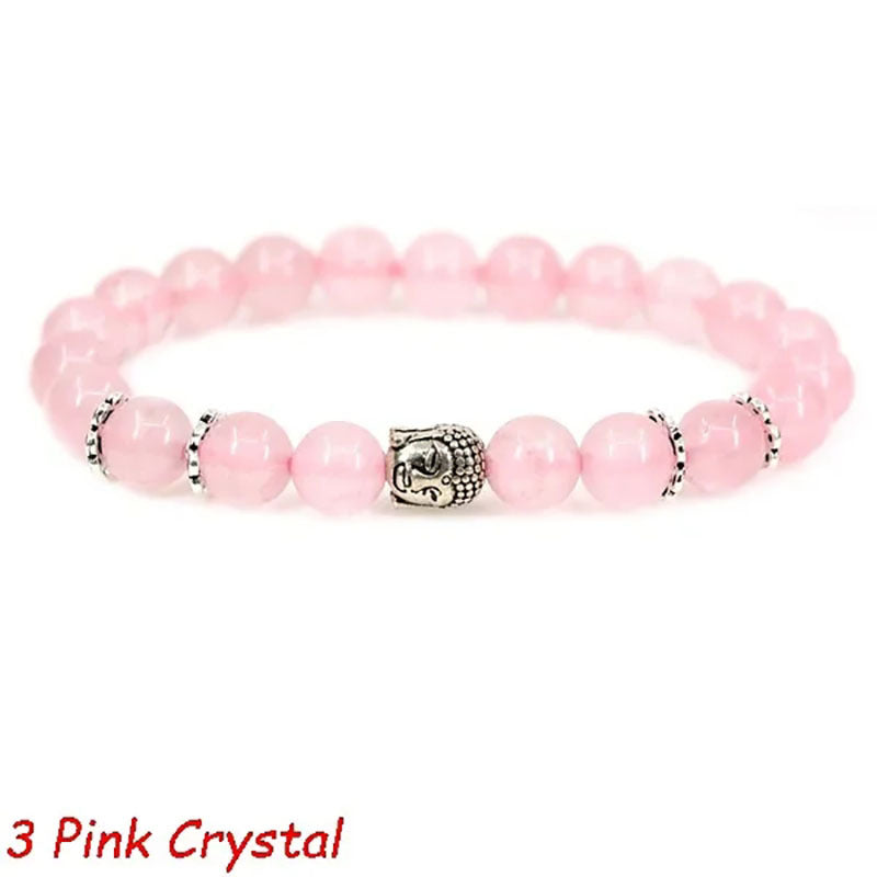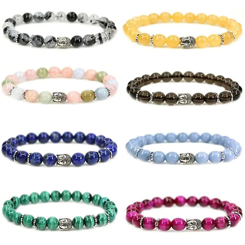 Embrace peace and healing with this beautiful bracelet featuring 8mm round beads made of natural healing stone. The stretch design ensures a comfortable fit. The bracelet is adorned with a Buddha head symbol for spiritual connection.