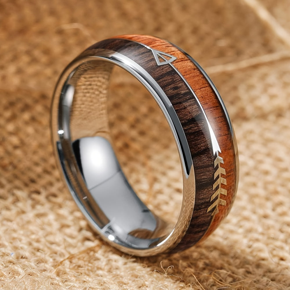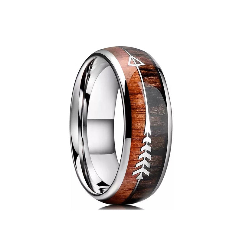 This nature-inspired wedding ring features wood inlay on durable titanium steel. Perfect for Vikings-themed weddings and everyday wear.