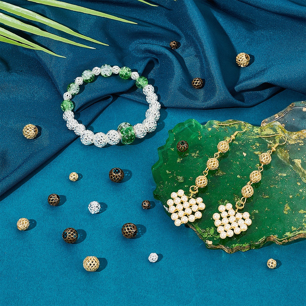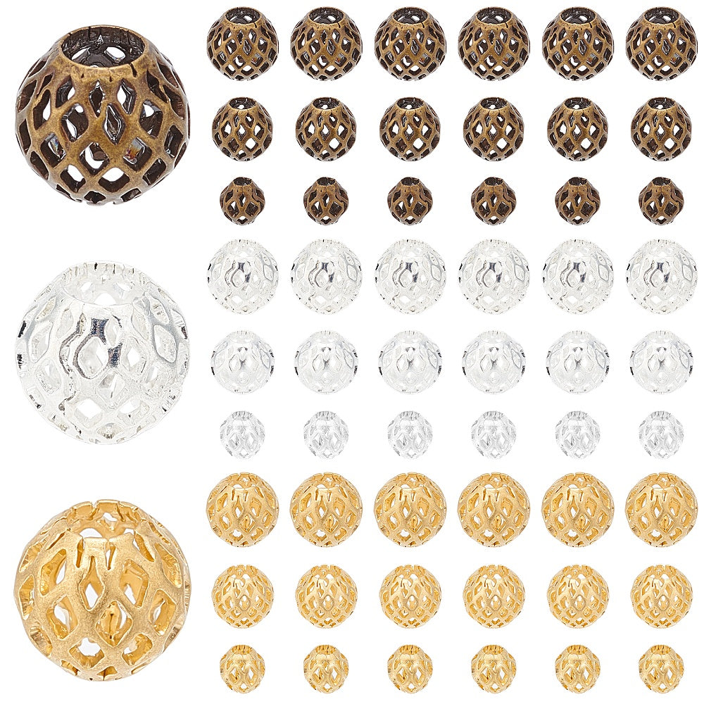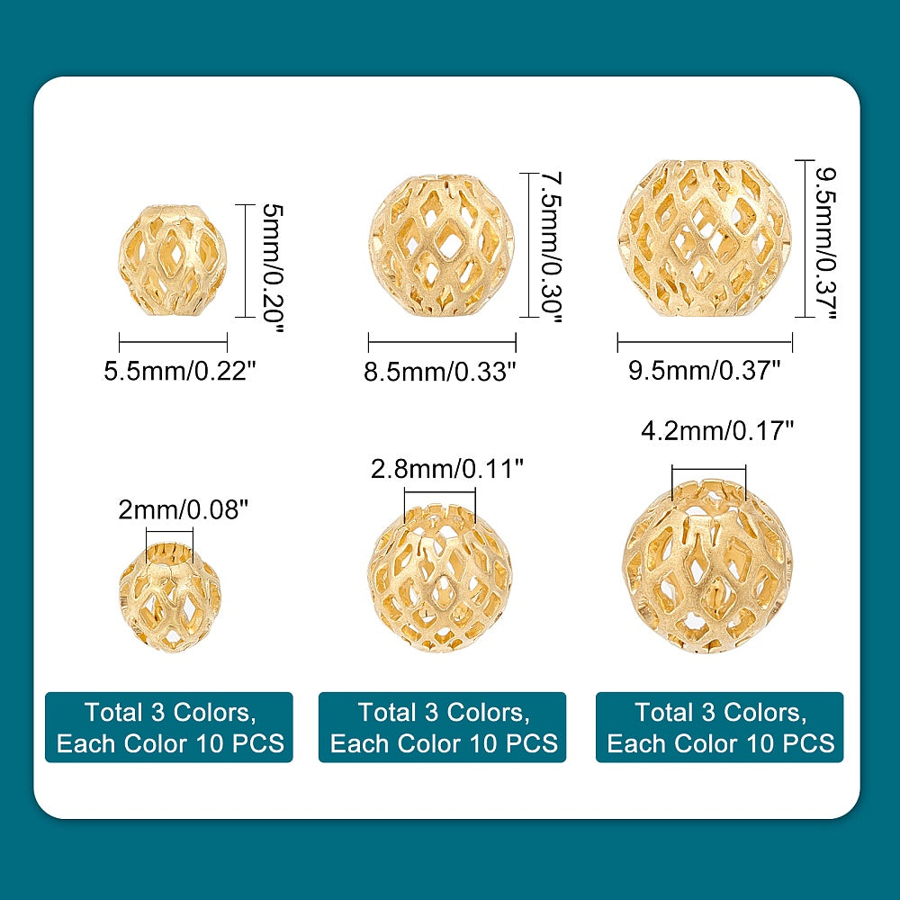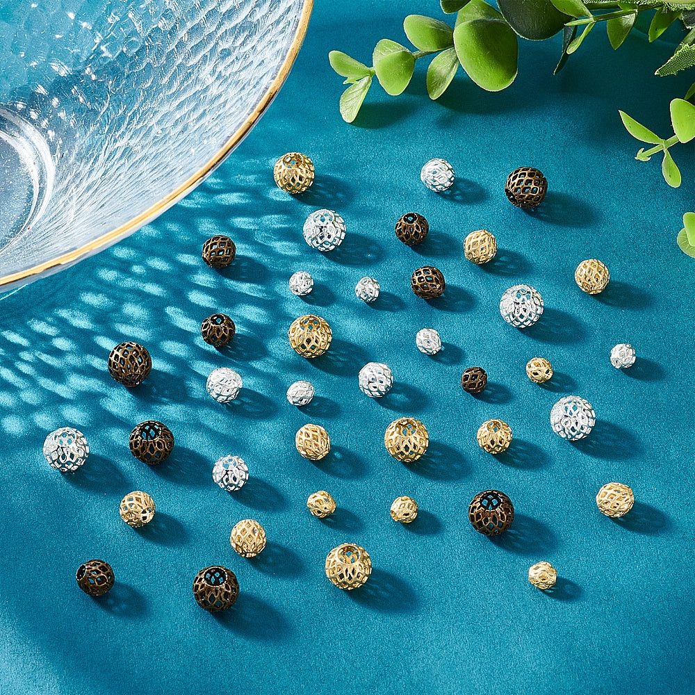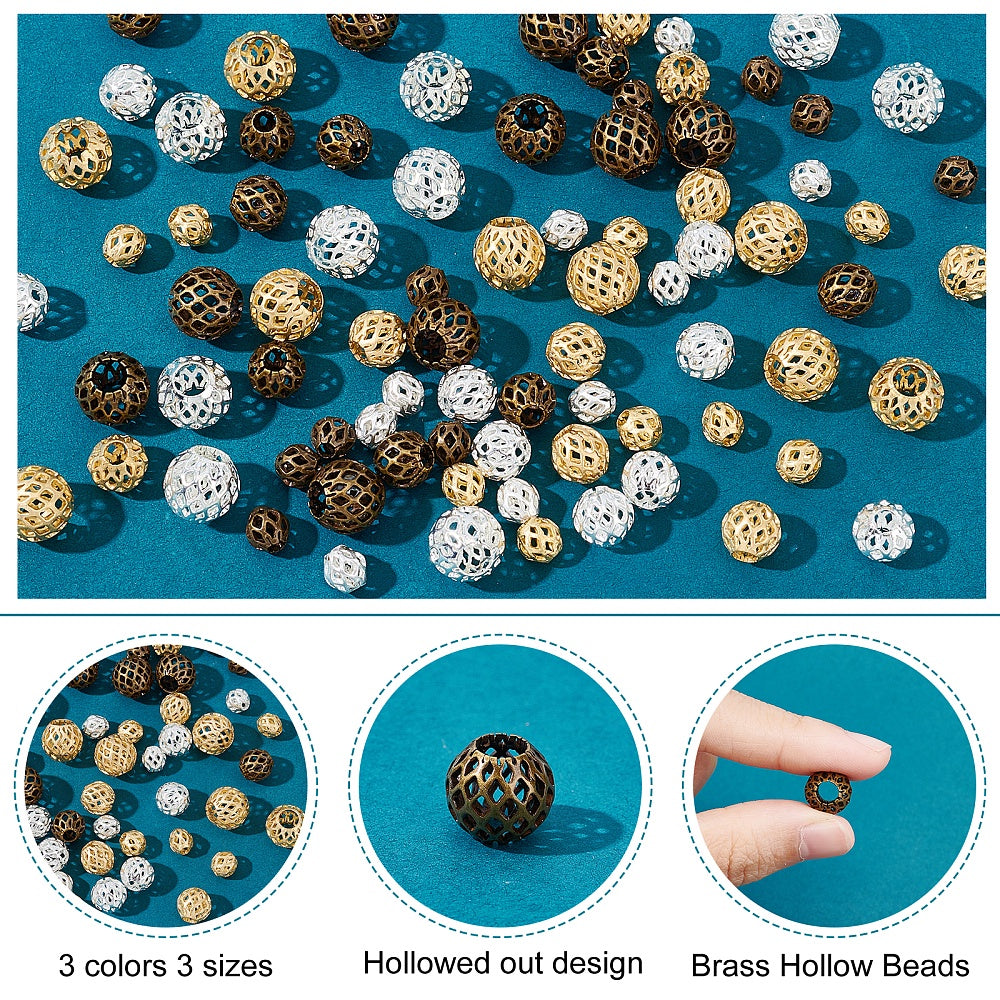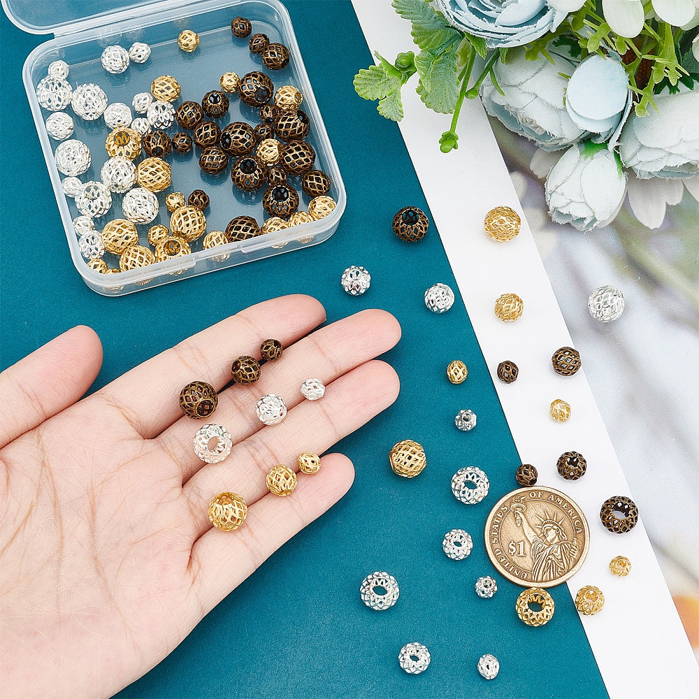 90pcs Round Filigree Spacer Beads 3 Sizes Brass Craft Beads for Jewelry Making