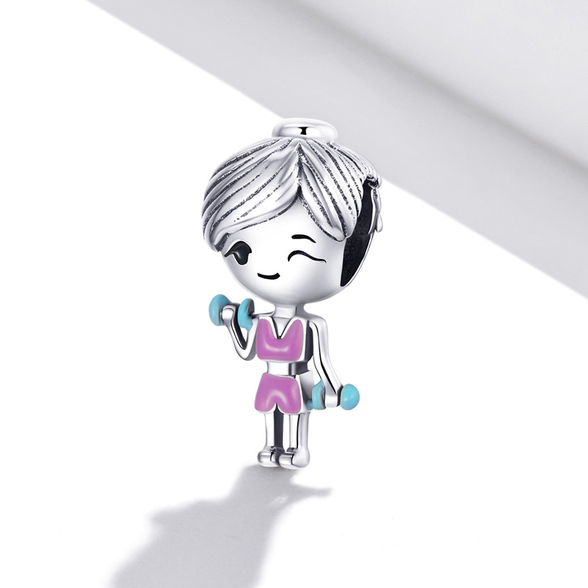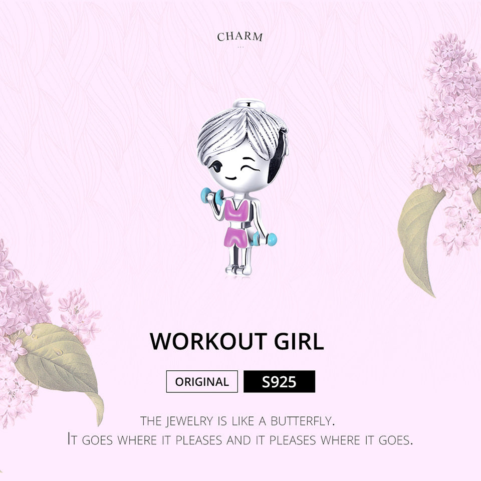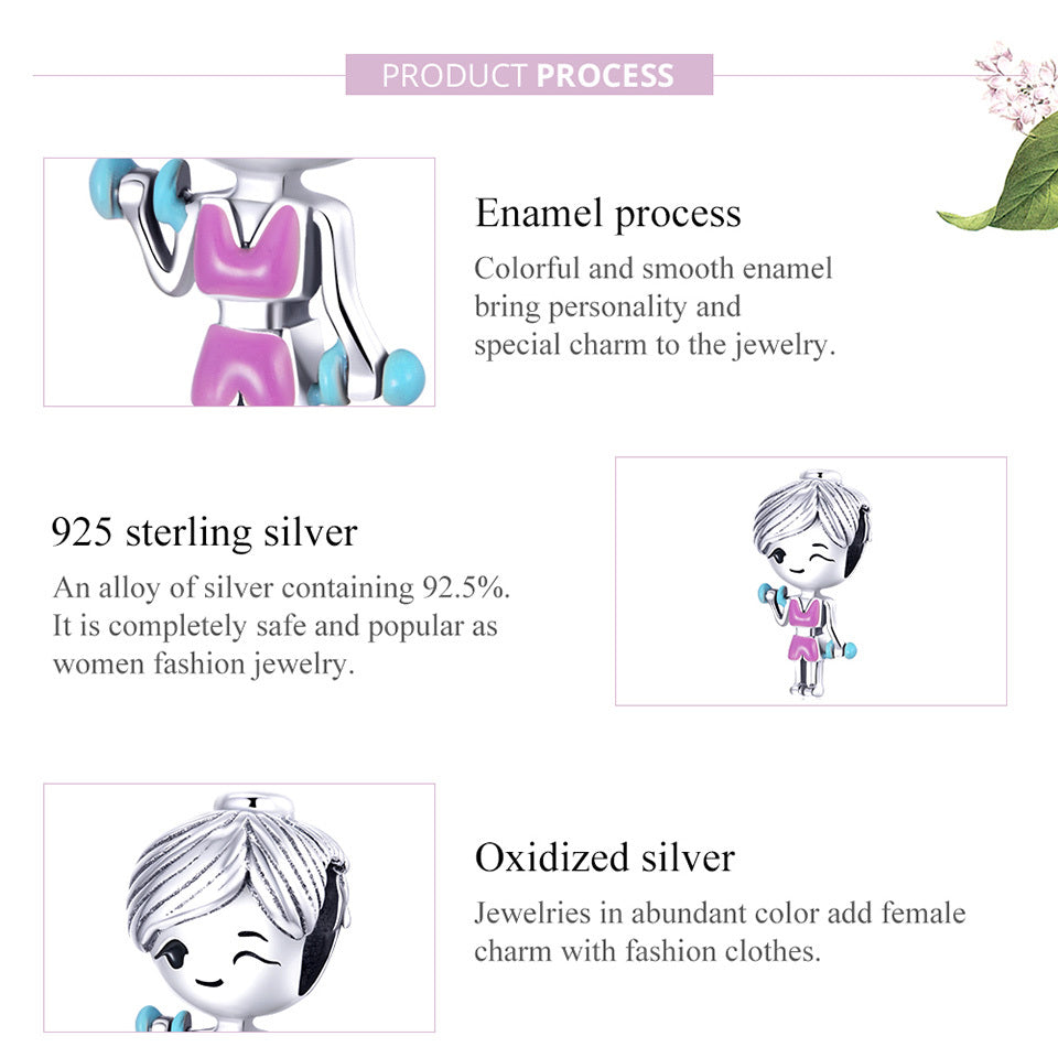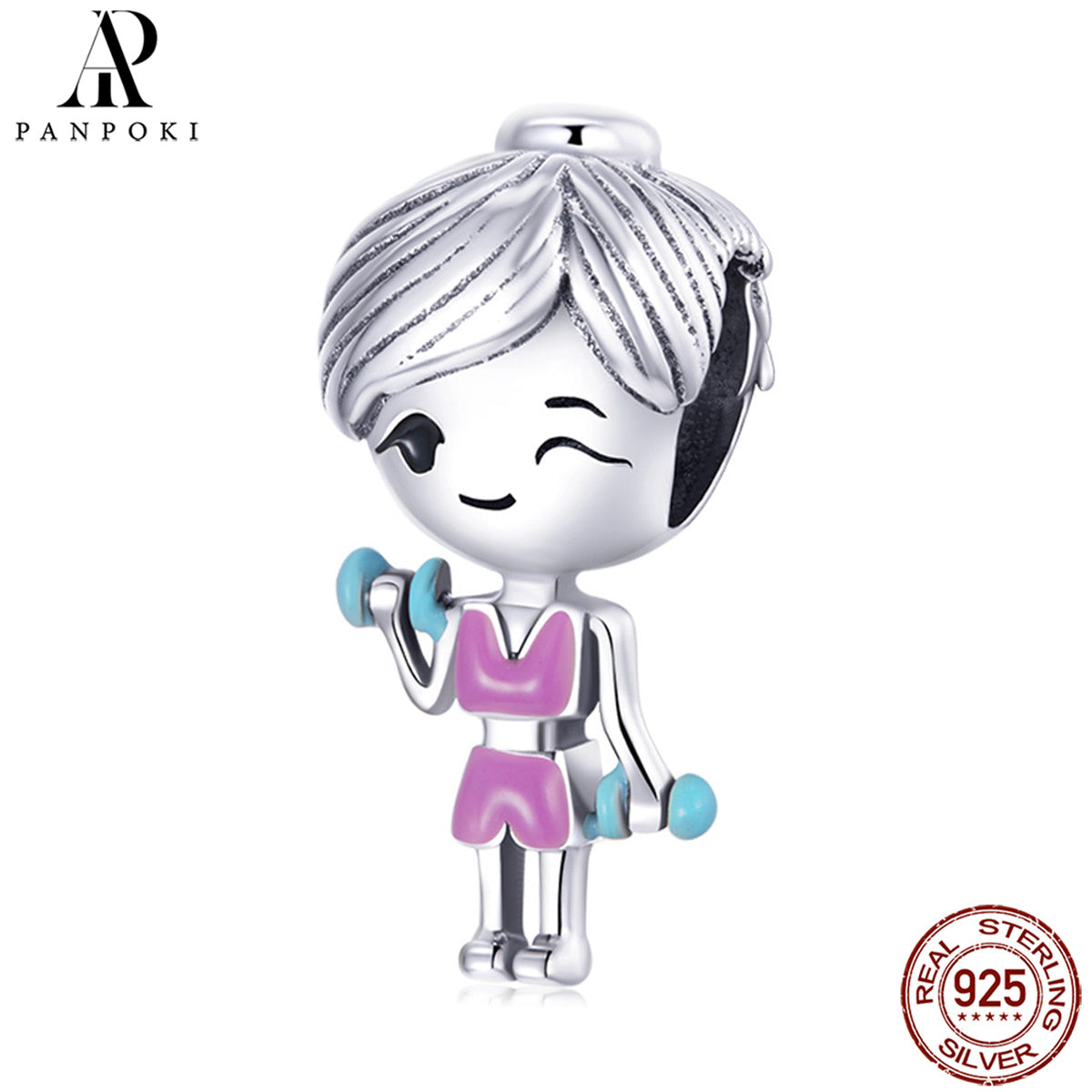 Create unique jewelry with this PANPOKI 925 sterling silver fitness girl beads charms pendant. Perfect for bracelets, necklaces, bangles, and more.