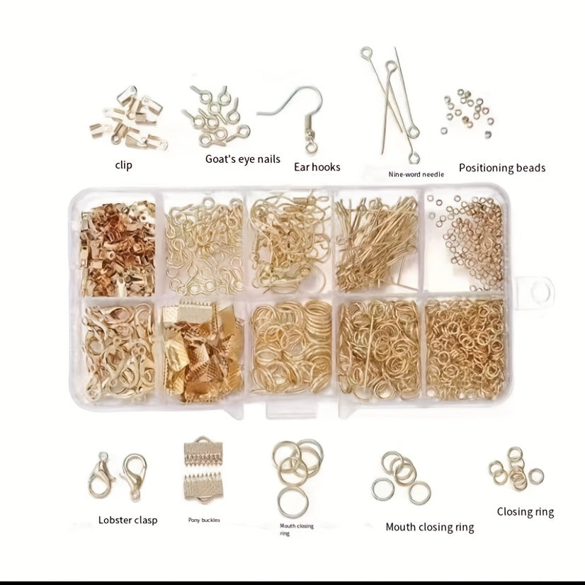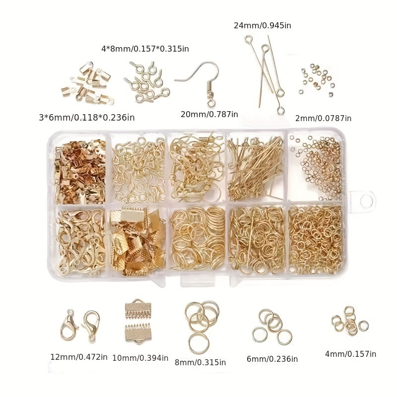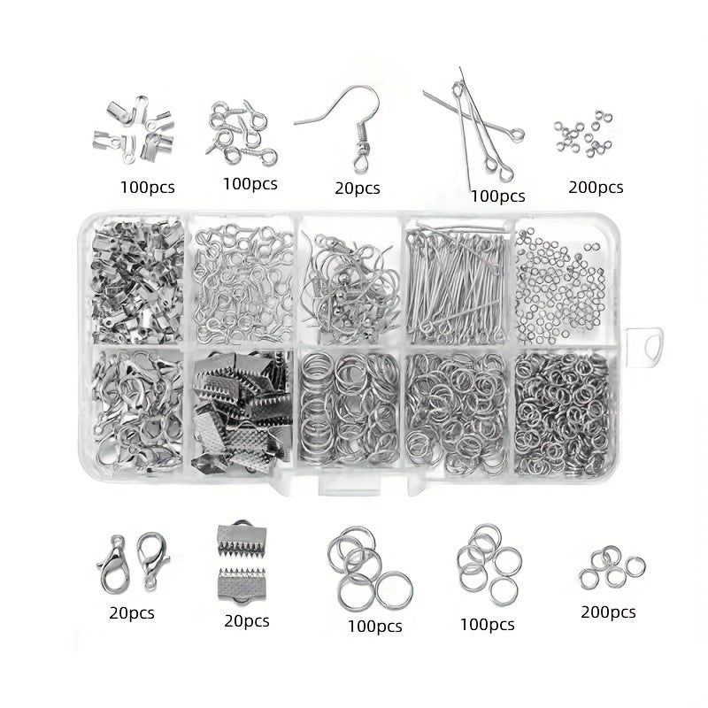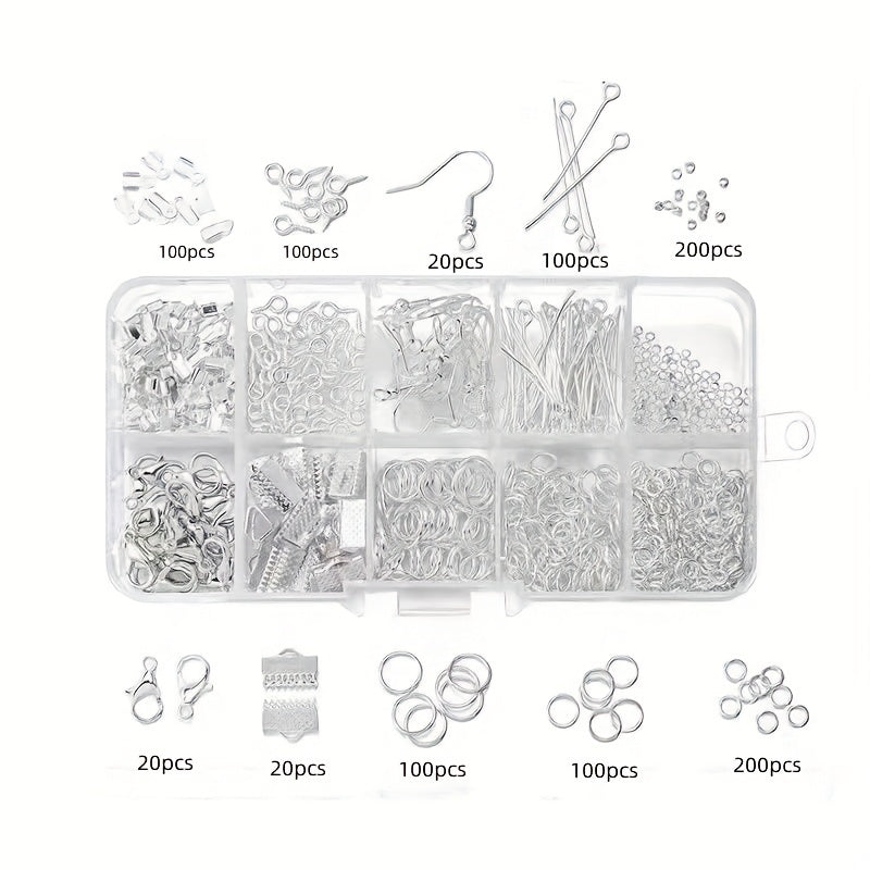 Create beautiful jewelry with this 960pcs set including lobster clasp, positioning beads, and more. Perfect for necklace and earring making.