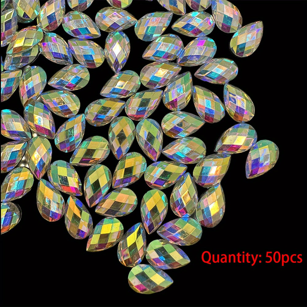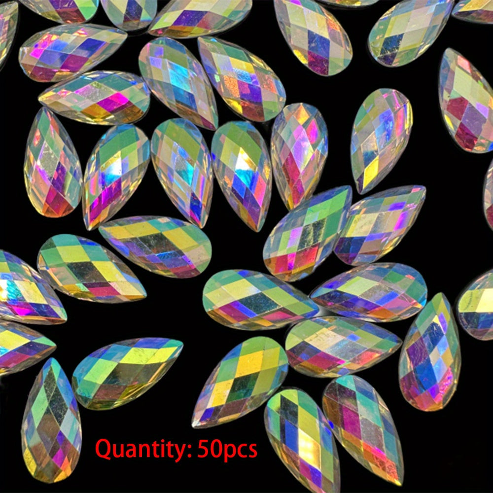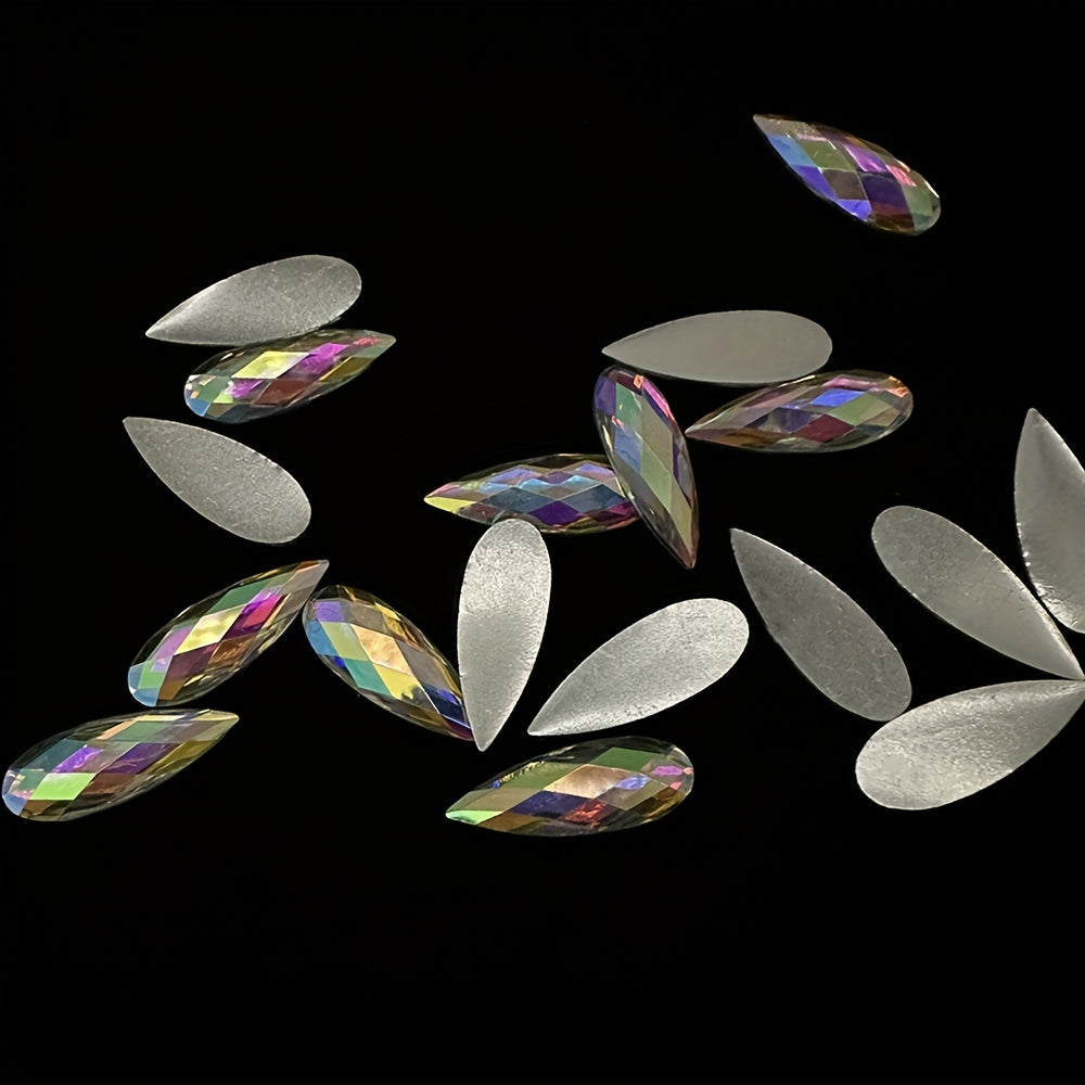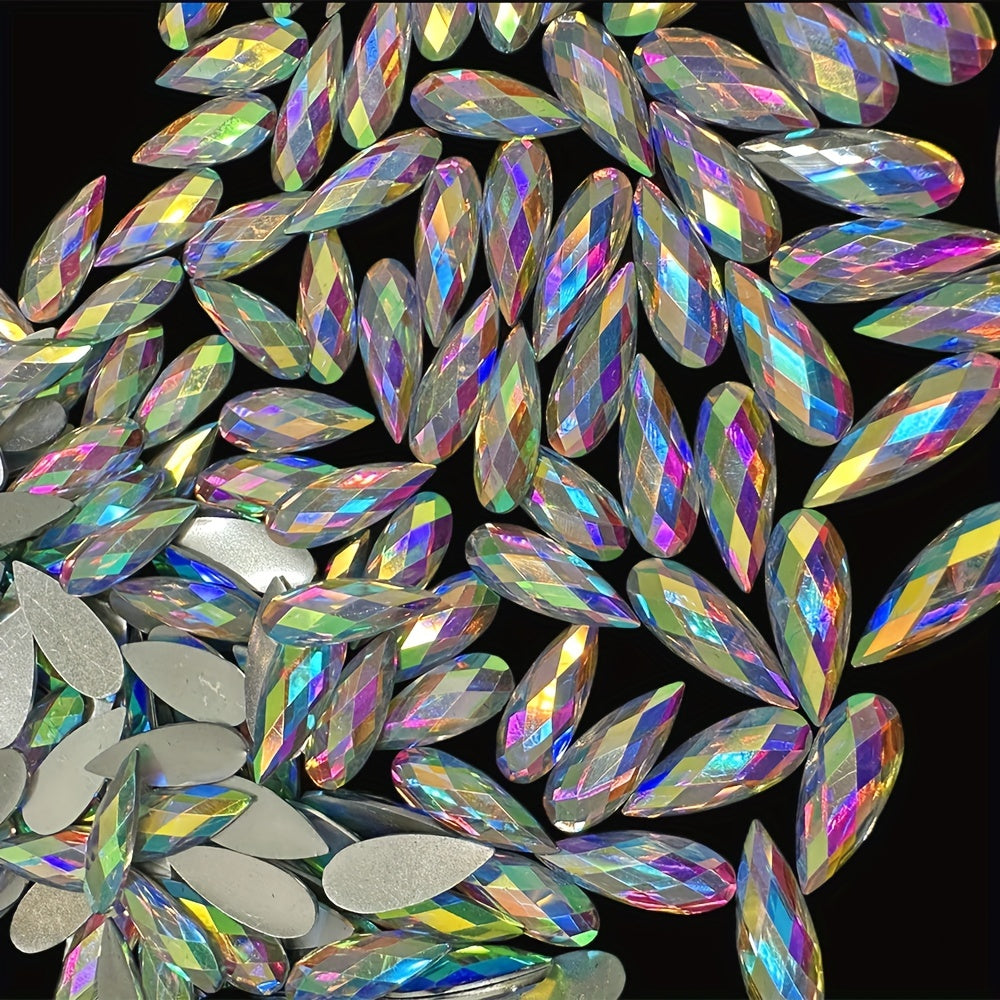 Add a touch of elegance to your crafts with these 32-inch 87-inch teardrop-shaped AB clear resin rhinestones. Perfect for dress decoration, craft projects, hair ornaments, and jewelry making.