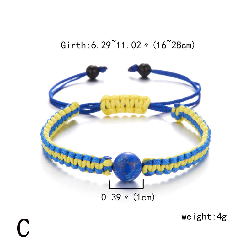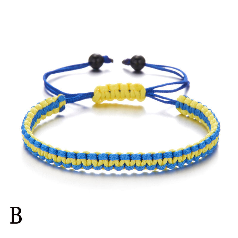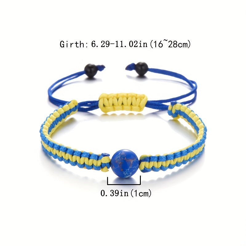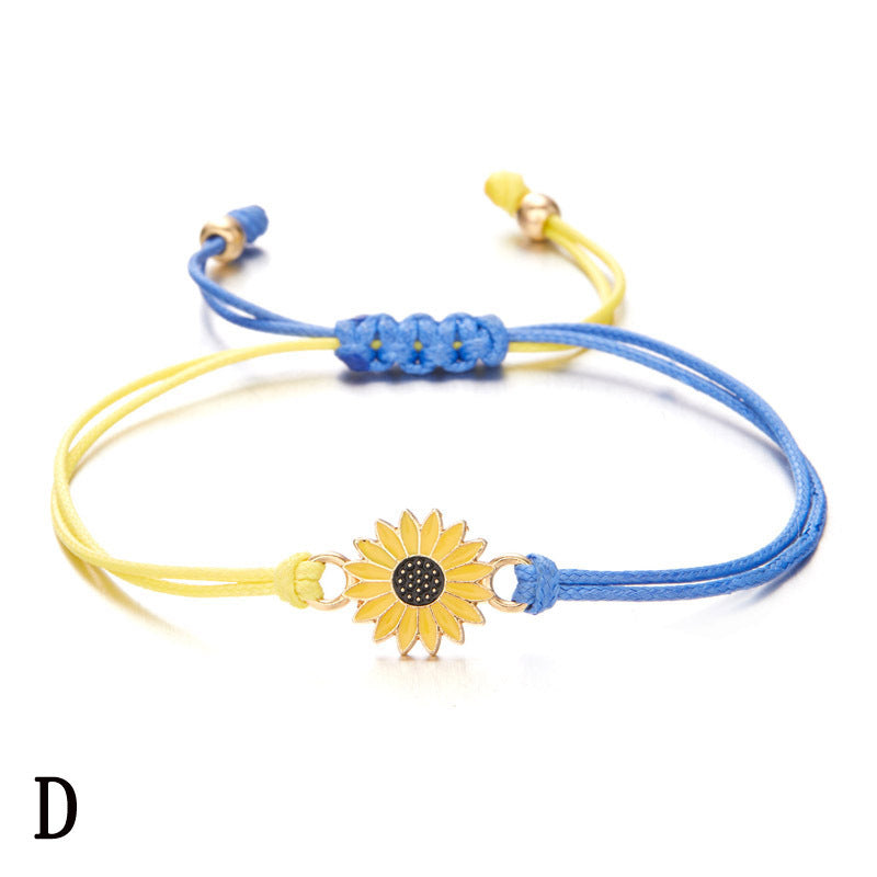 Handwoven bracelet featuring evil eye and sunflower designs. Adjustable to fit various wrist sizes.