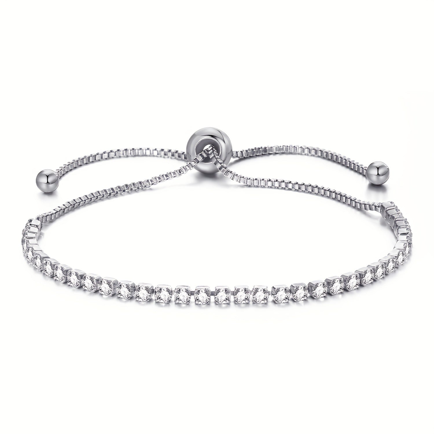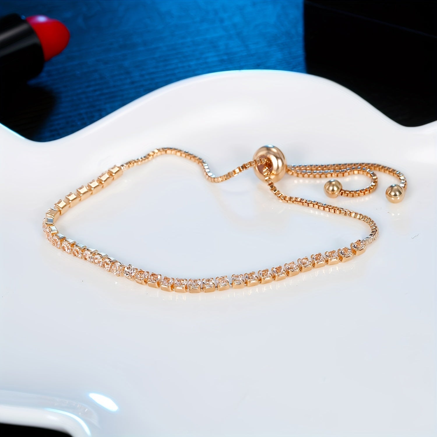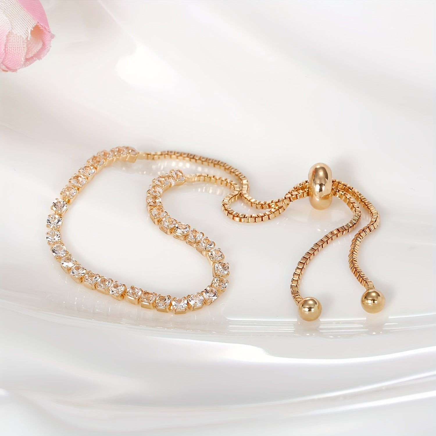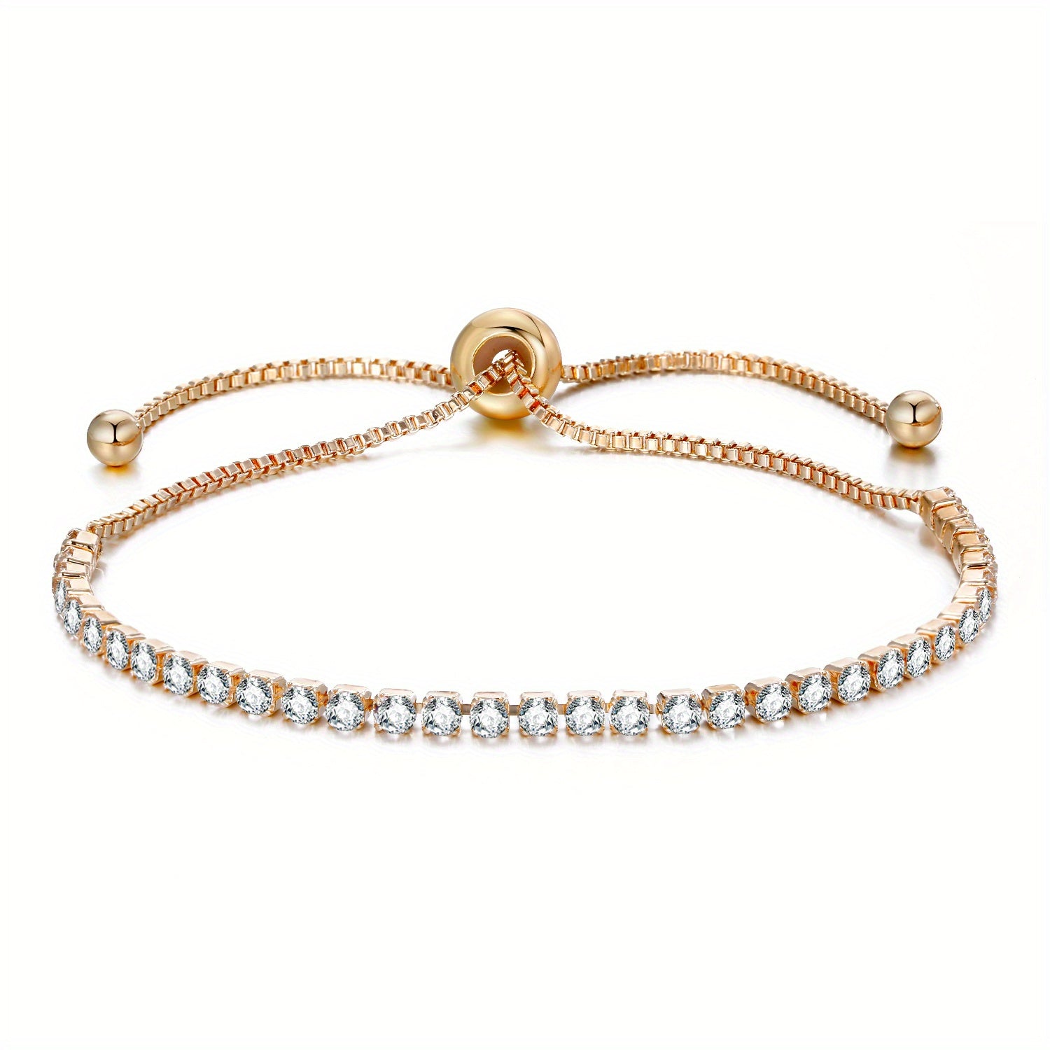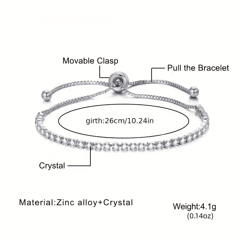 Elevate your style with this stunning adjustable tennis chain bracelet inlaid with sparkling rhinestones. Perfect for women and girls.