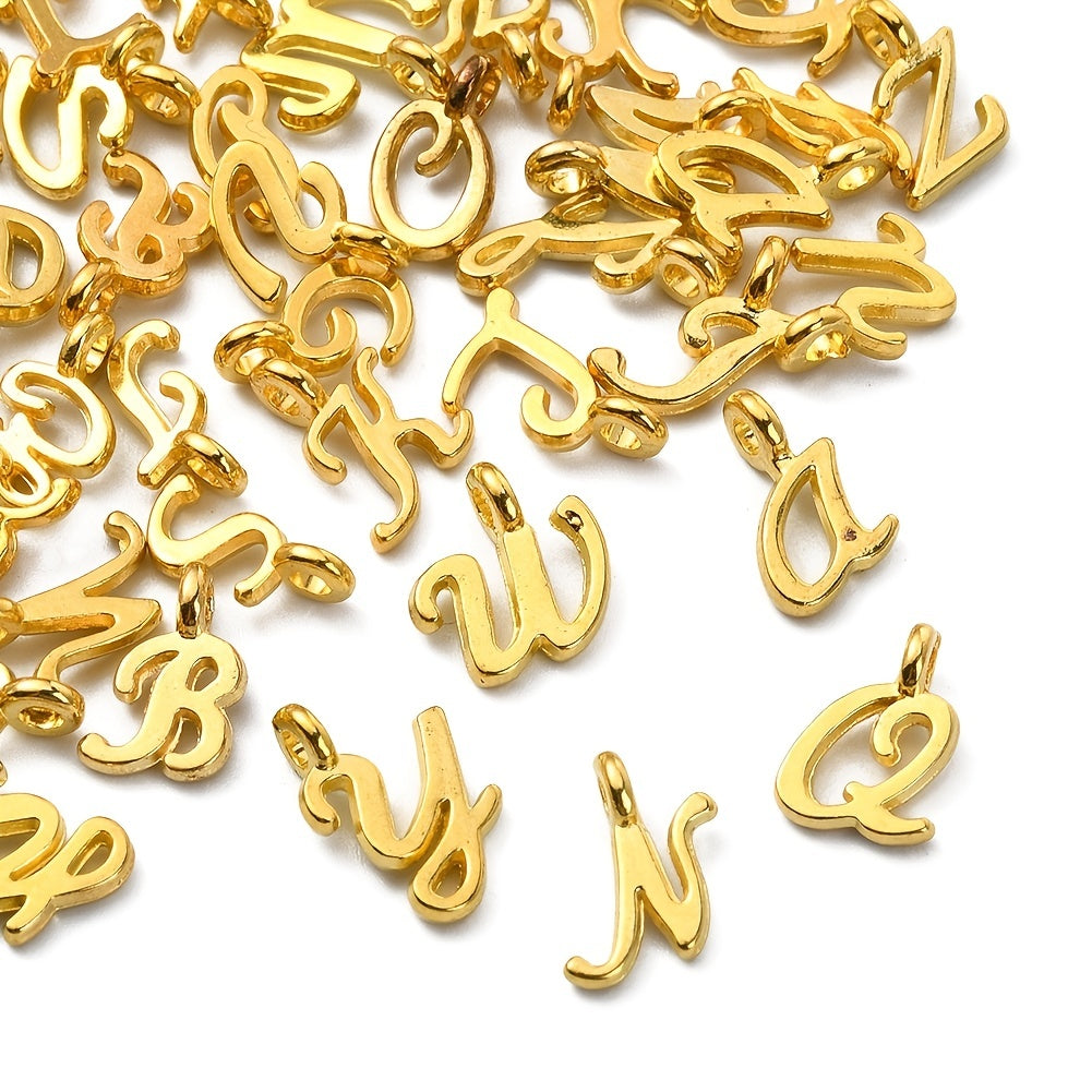 Add a touch of elegance to your DIY jewelry projects with this small pendant. Made of golden alloy, featuring 26 lowercase English letters.