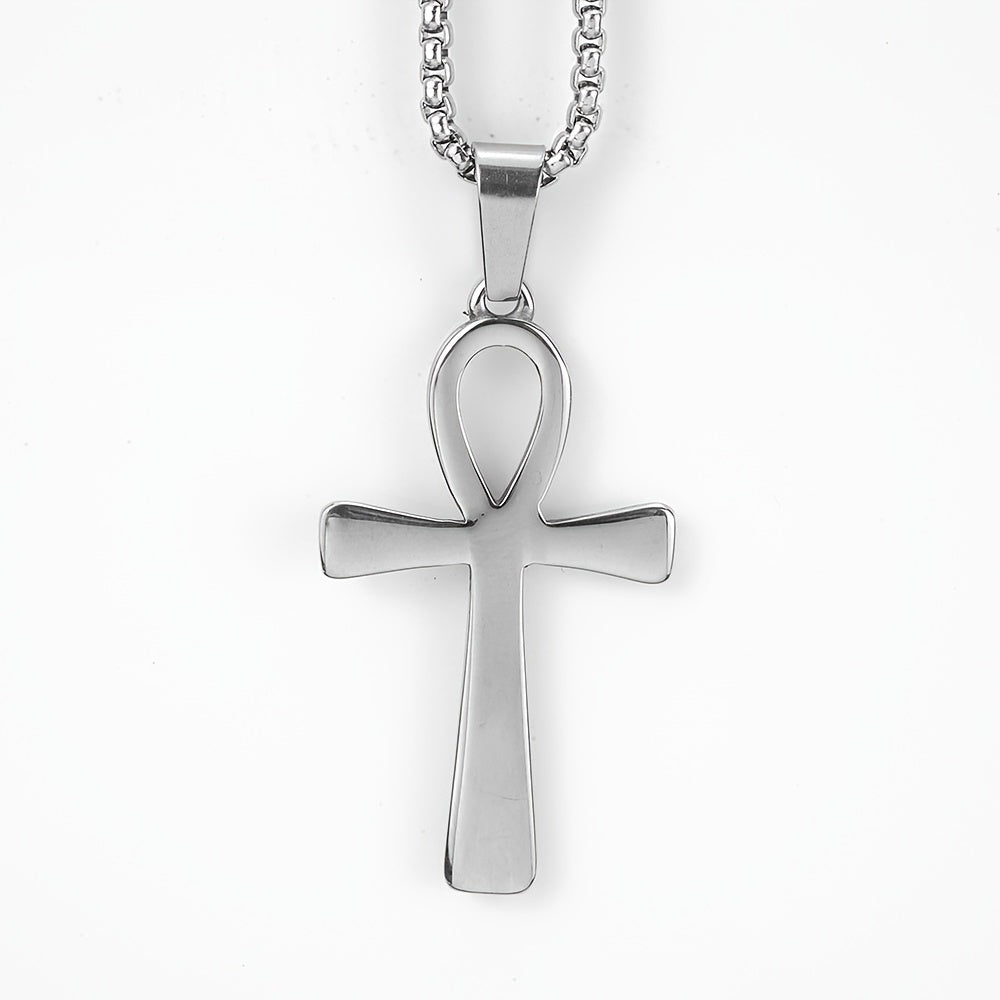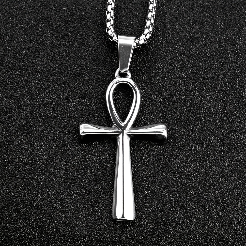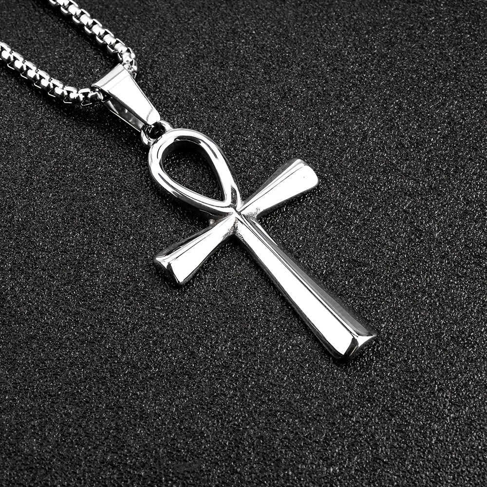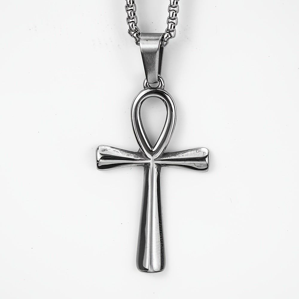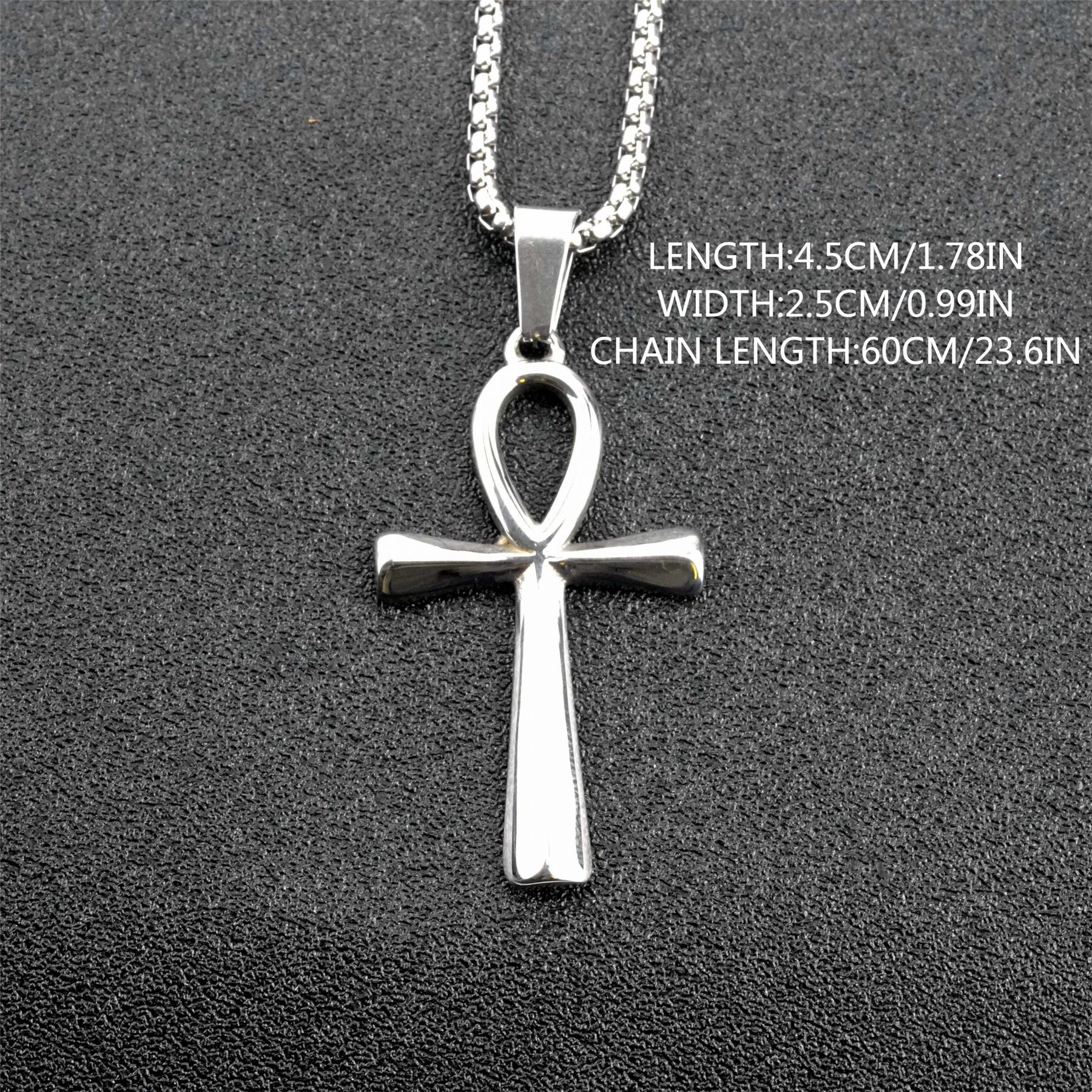 This necklace features an ancient Egyptian life charm pendant cross with a square pearl. Made from titanium steel, it is a great unisex jewelry piece.