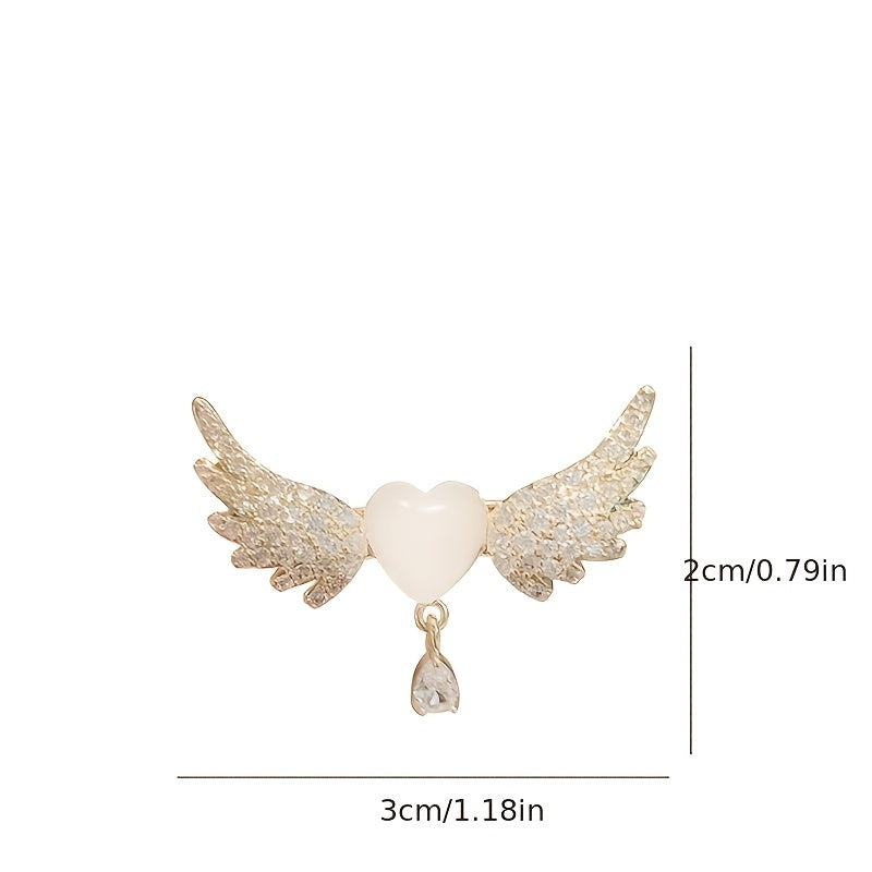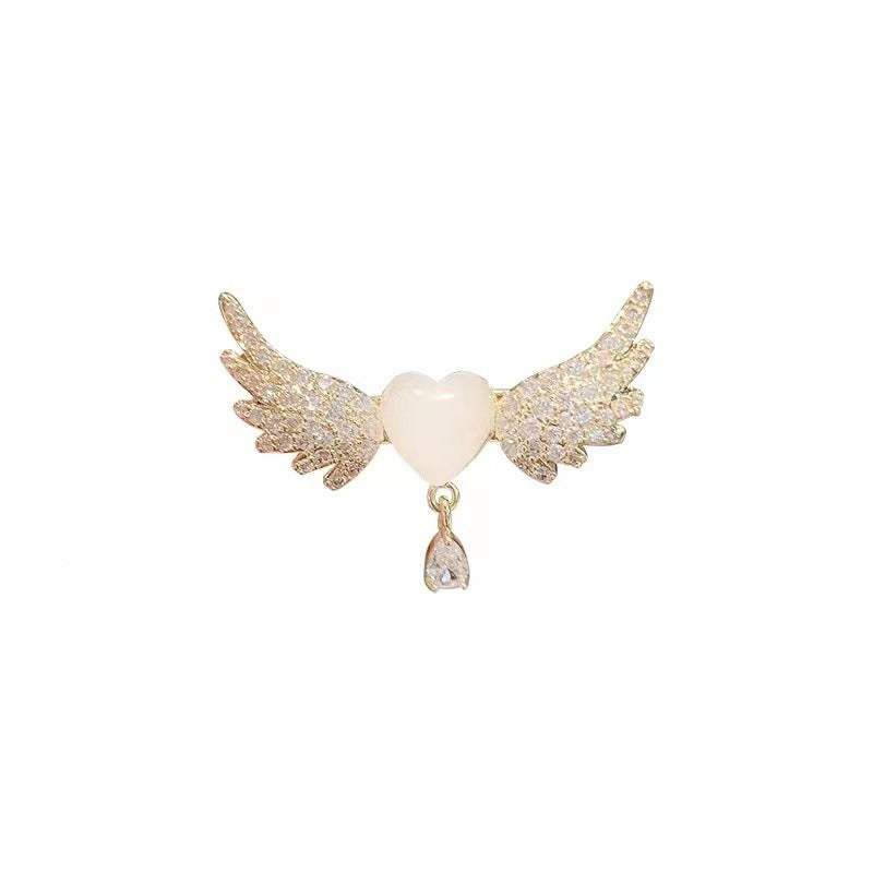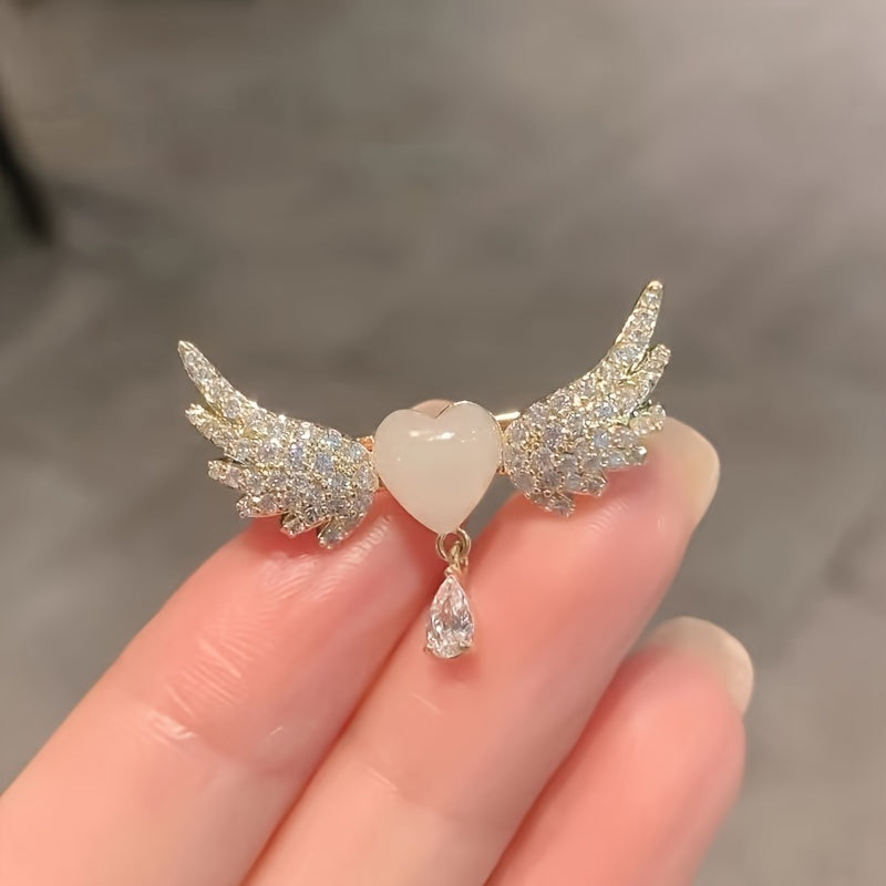 Stylish brooch pin featuring angel wings and a heart design, perfect for daily wear or special occasions.