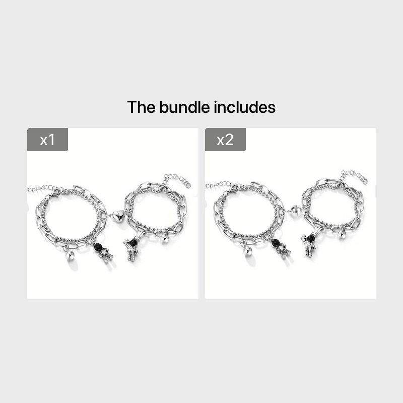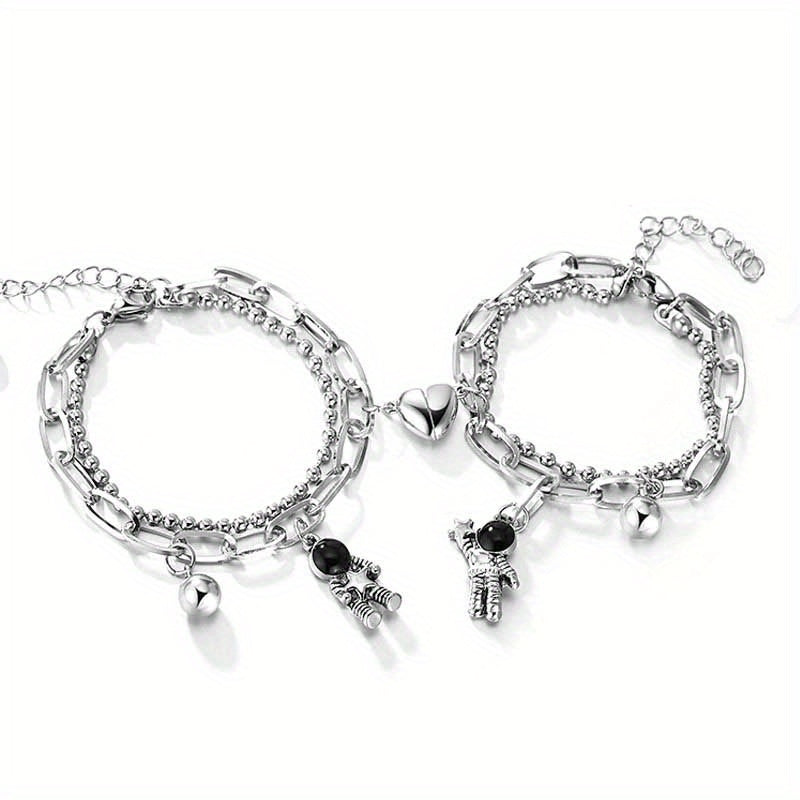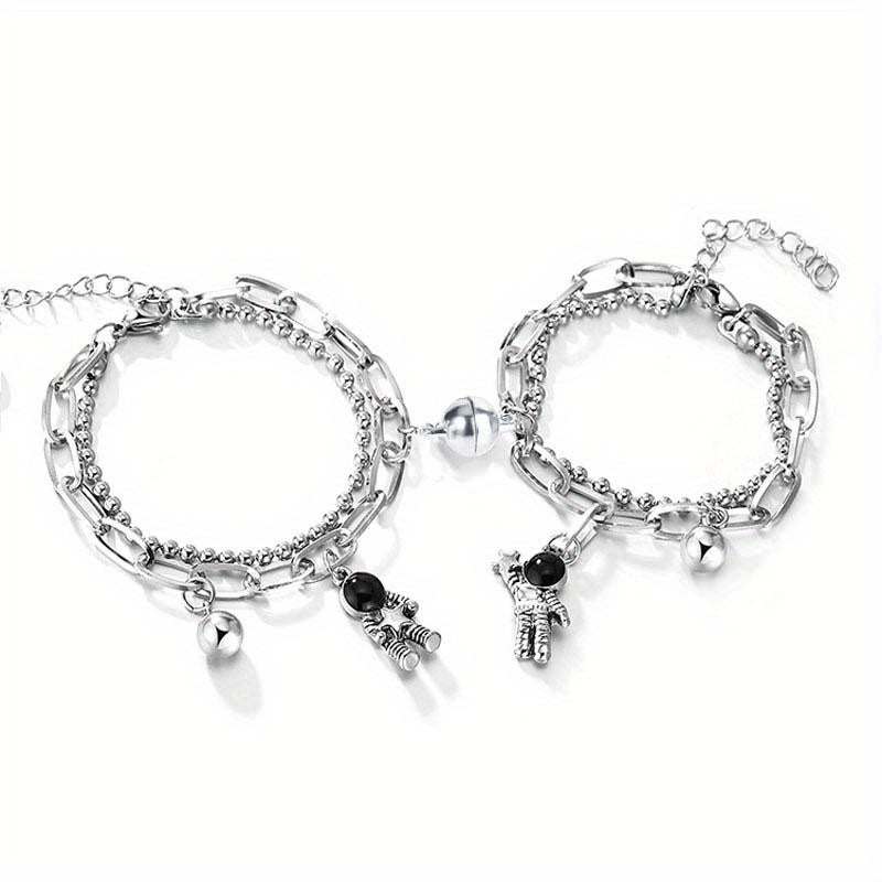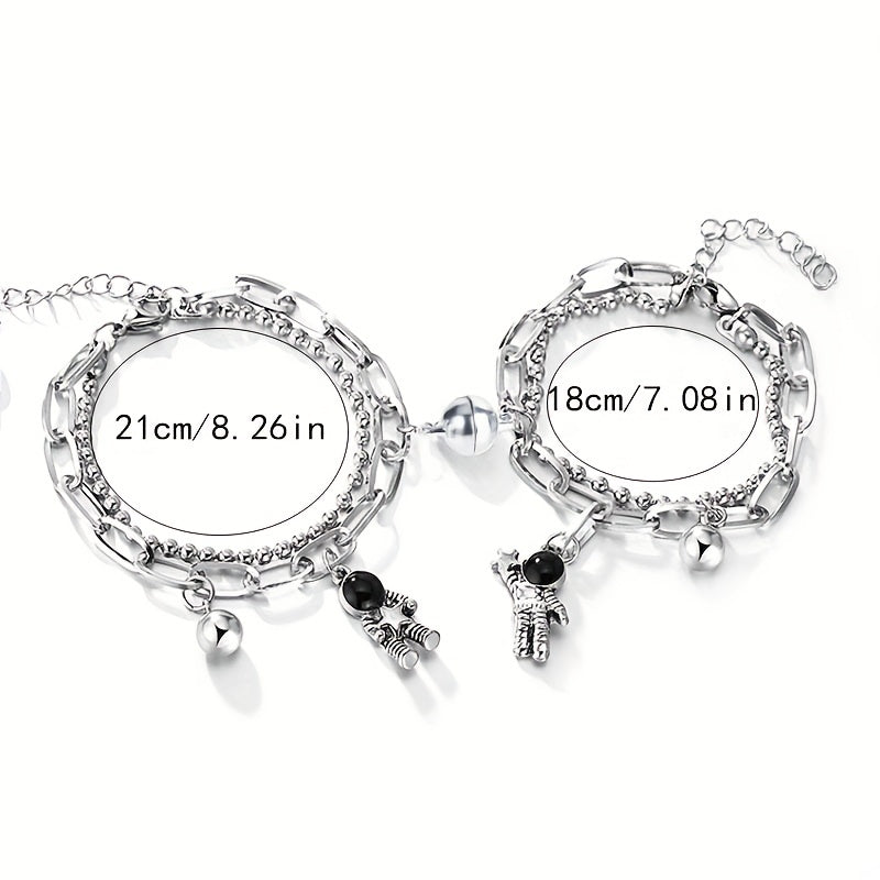 This 2pc set of bracelets features an astronaut and star design, perfect for men and women who love hip hop punk styles. Show off your personality with these unique bracelets.