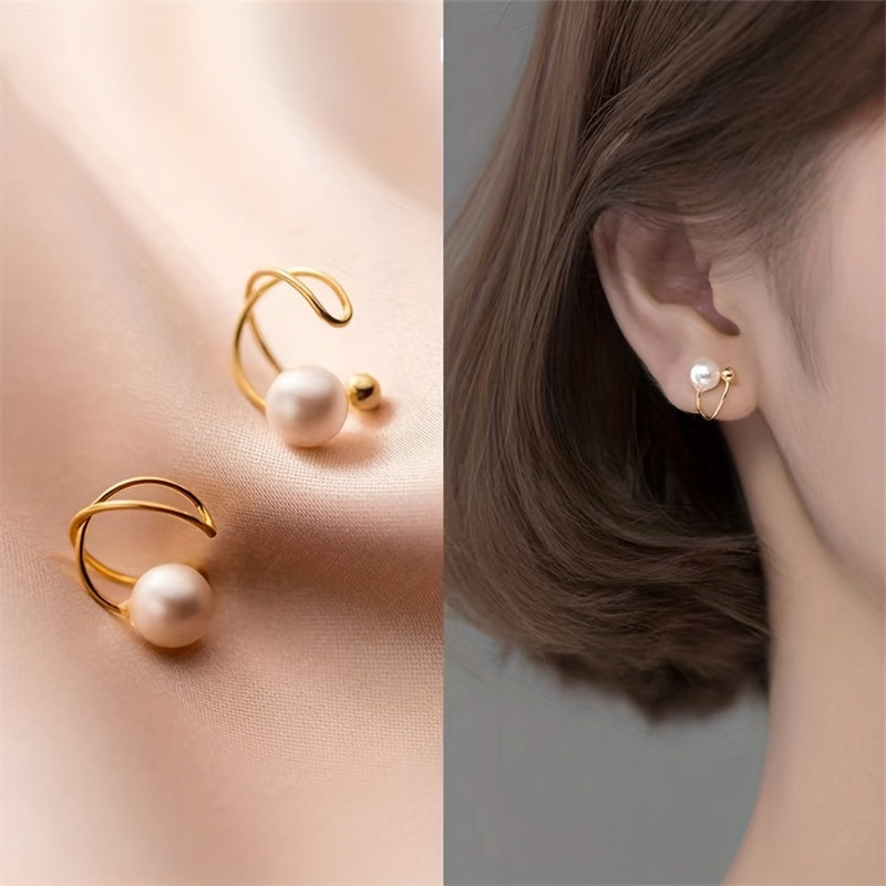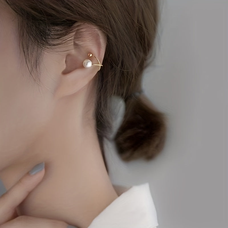 Add a touch of charm to your look with these asymmetrical faux pearl ear clip earrings. Perfect for those without ear piercings, these clips offer a unique and stylish look.