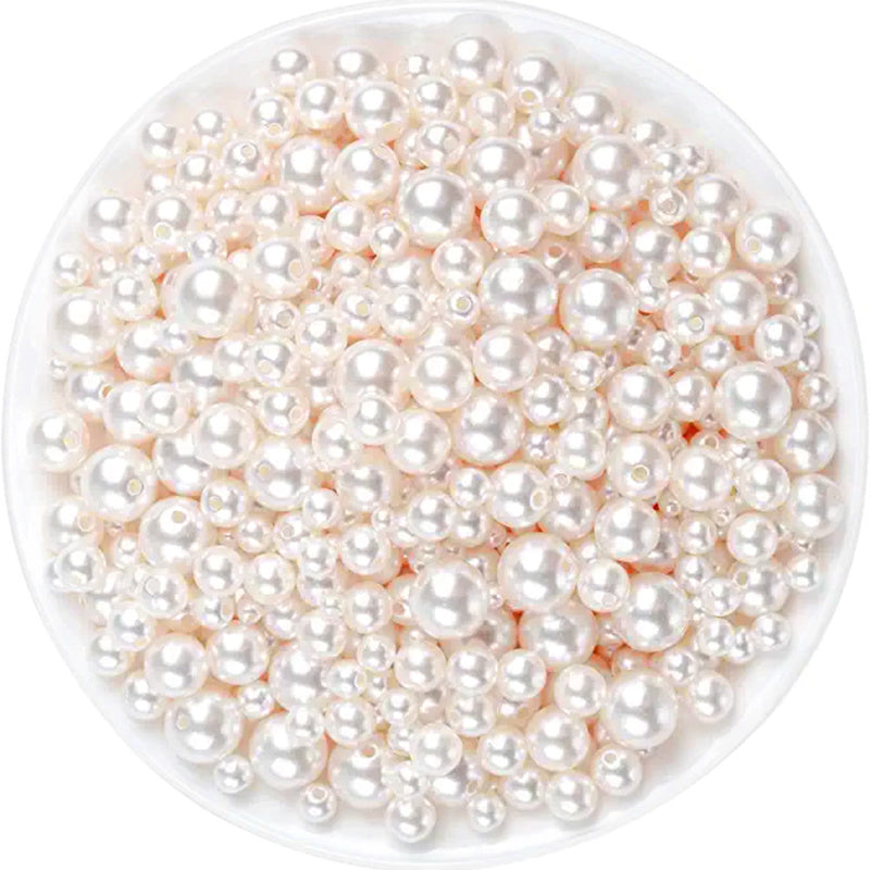 Beige Pearl Beads 3-18mm ABS Loose Spacer Beads for Jewelry Making Sewing