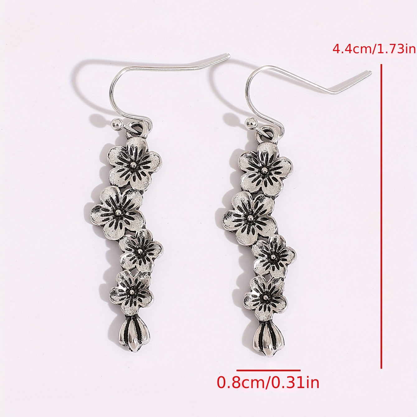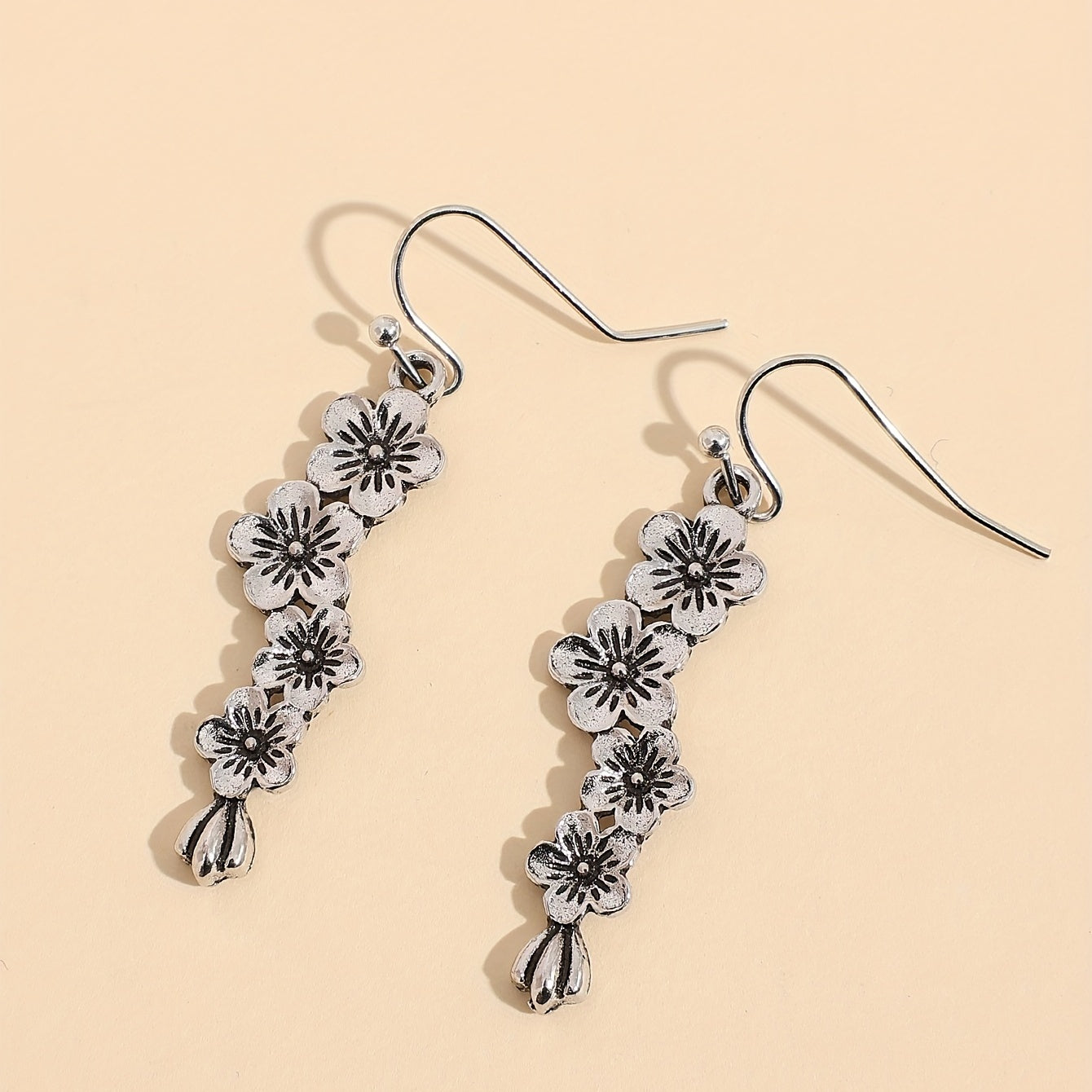 These retro hook earrings feature a delicate plum blossom design for a bohemian look. Made from zinc alloy with a silver plating, they are a perfect gift for women and girls.
