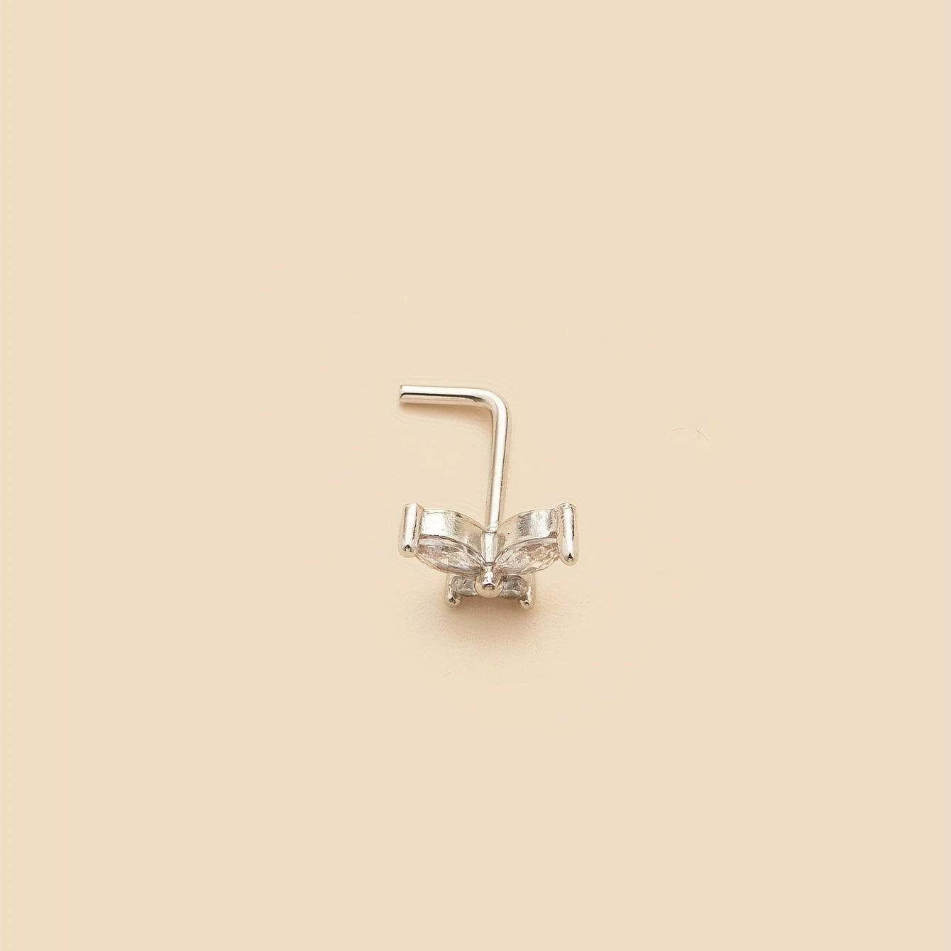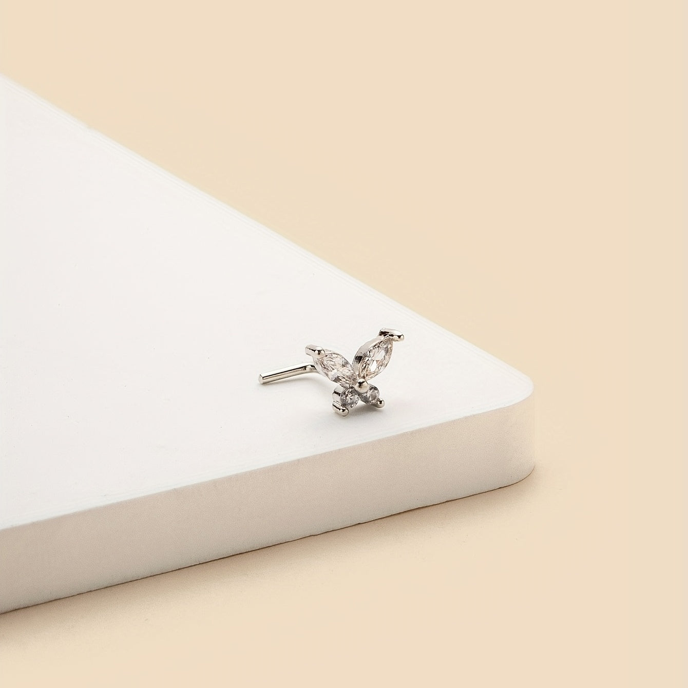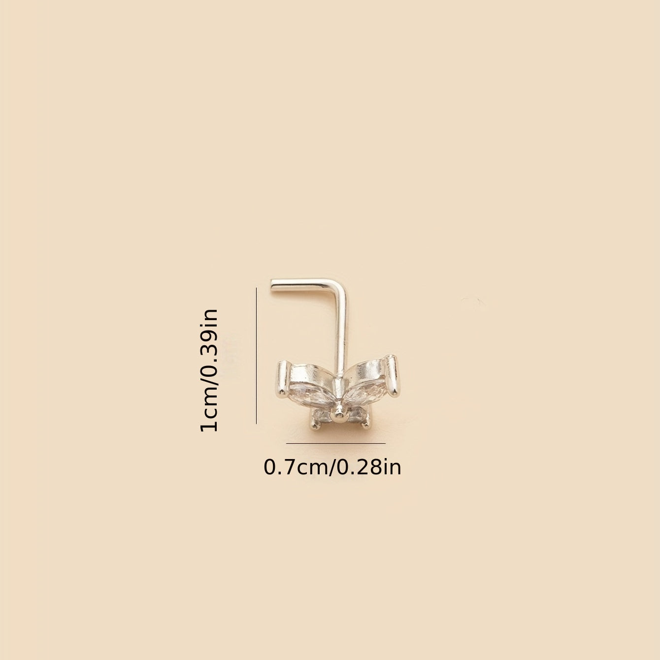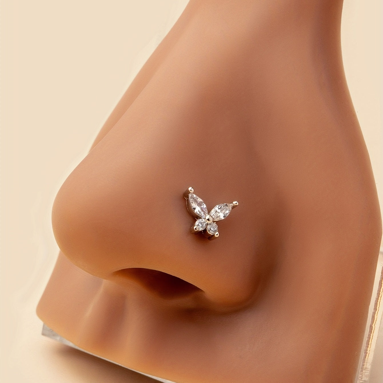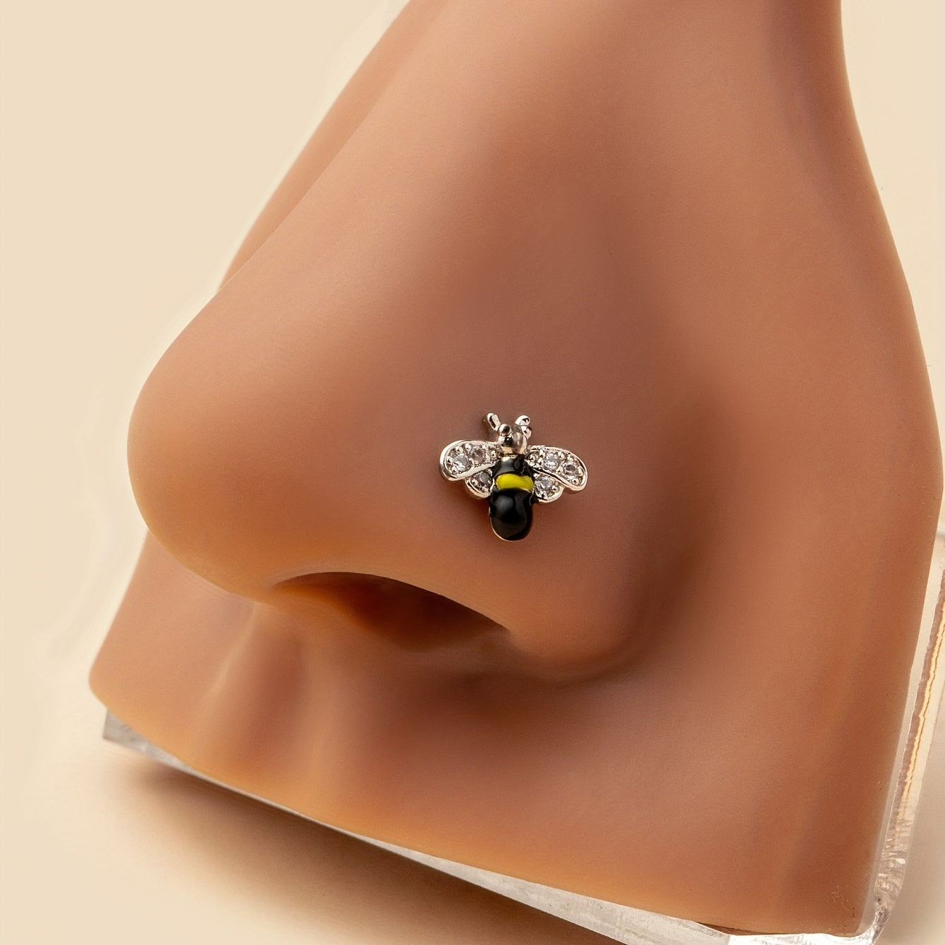 This nose ring features a zircon inlaid design of a butterfly and bee, perfect for animal theme lovers.