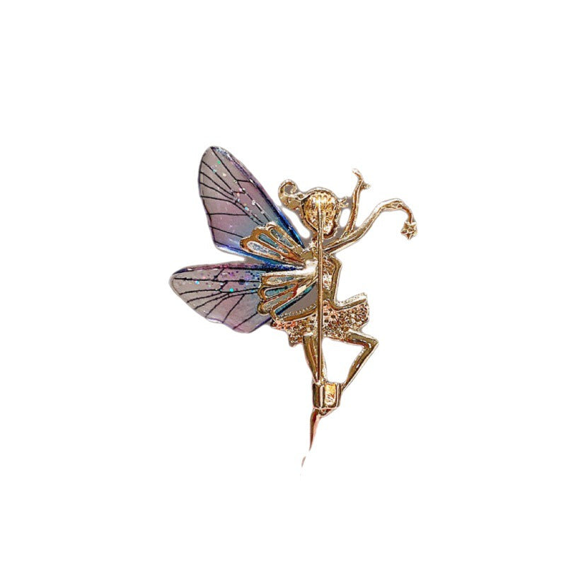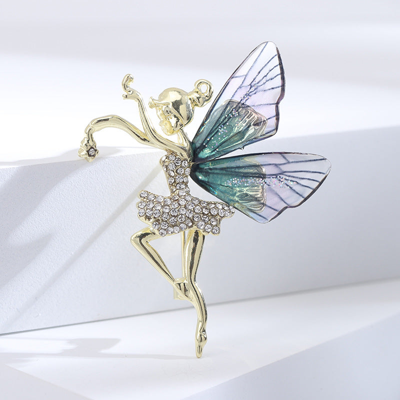 Add a whimsical touch to your outfit with this beautiful butterfly fairy brooch in the shape of a dancing girl. Perfect for adding a touch of magic to your coat or clothing.