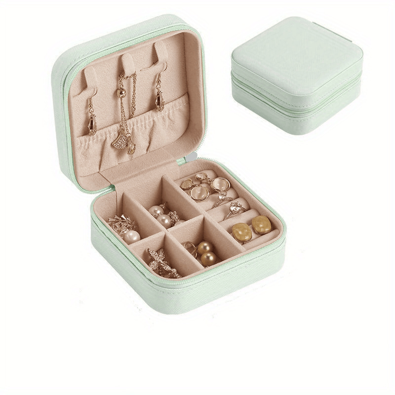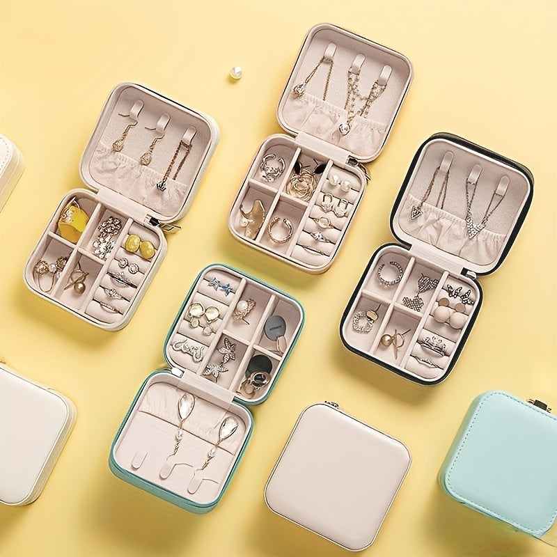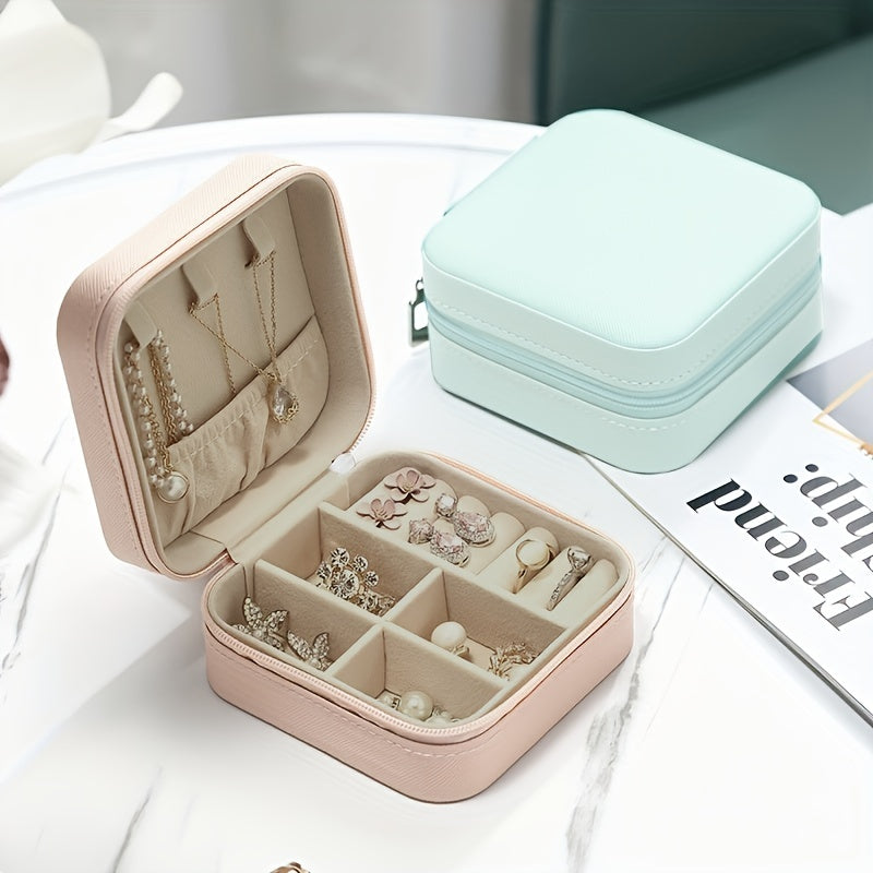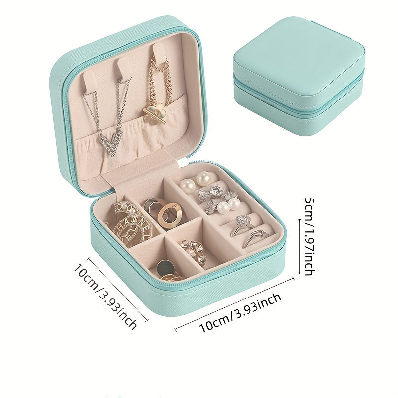 Keep your earrings, necklaces, rings, and bracelets organized in this portable storage box made of faux leather.