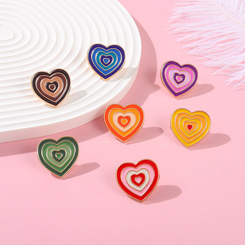 Add a pop of color and love to your outfit with this rainbow gradient peach heart shaped brooch. Perfect for a fun and stylish look!