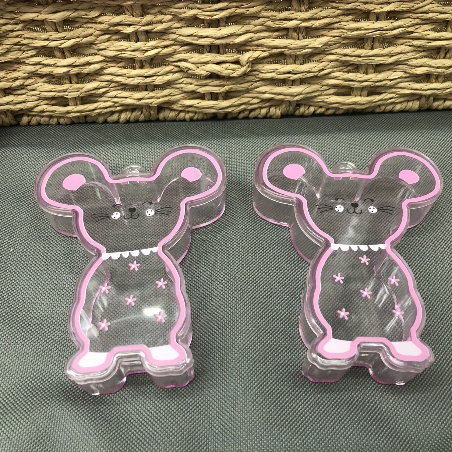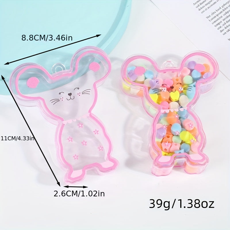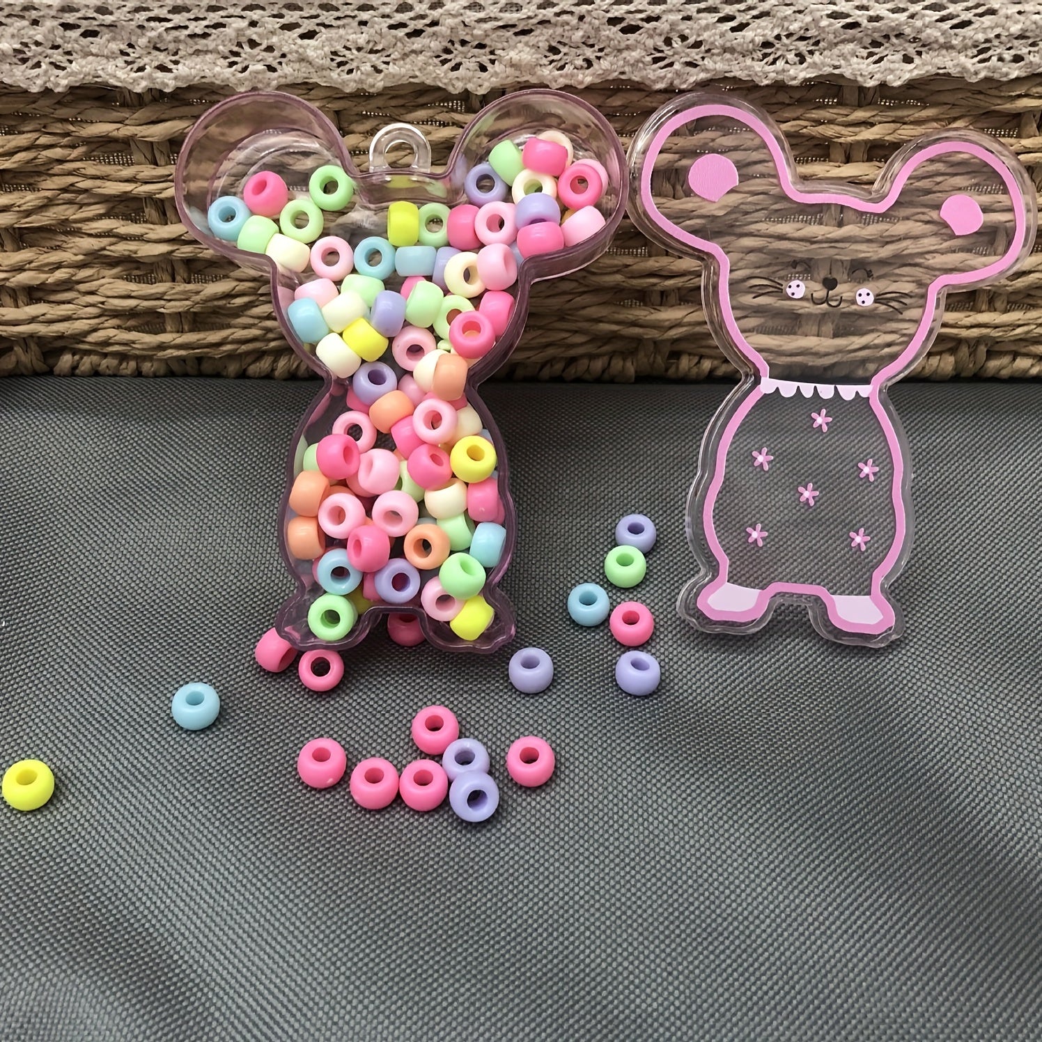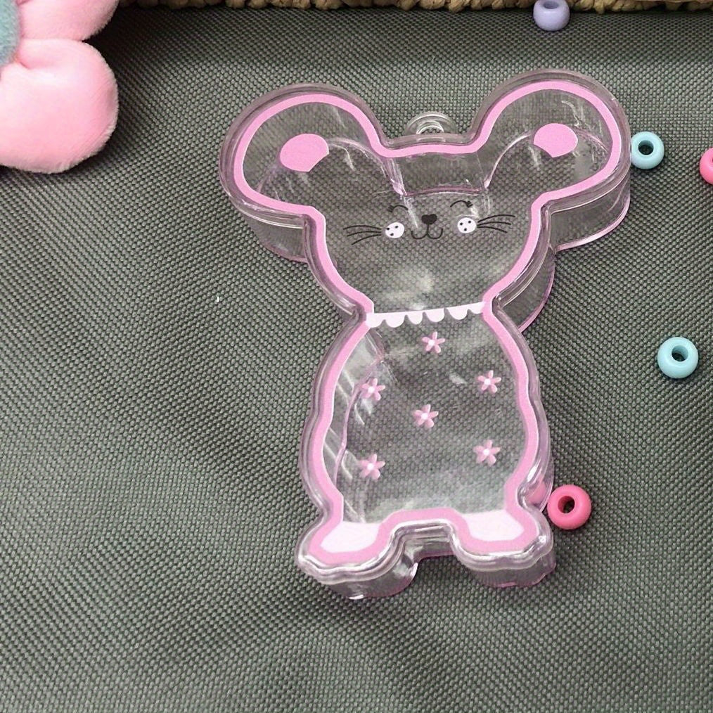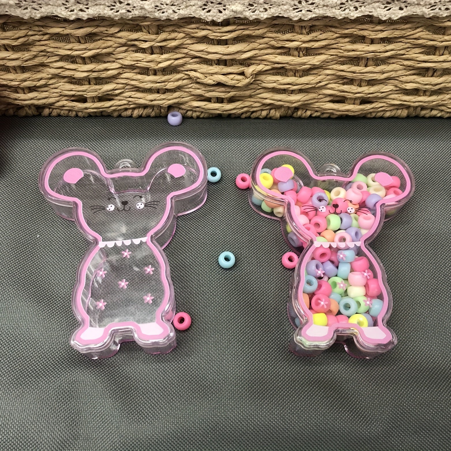 This colorful beaded storage box features a cute cartoon mouse design. Ideal for DIY projects, it is made of transparent plastic in a lovely pink color.