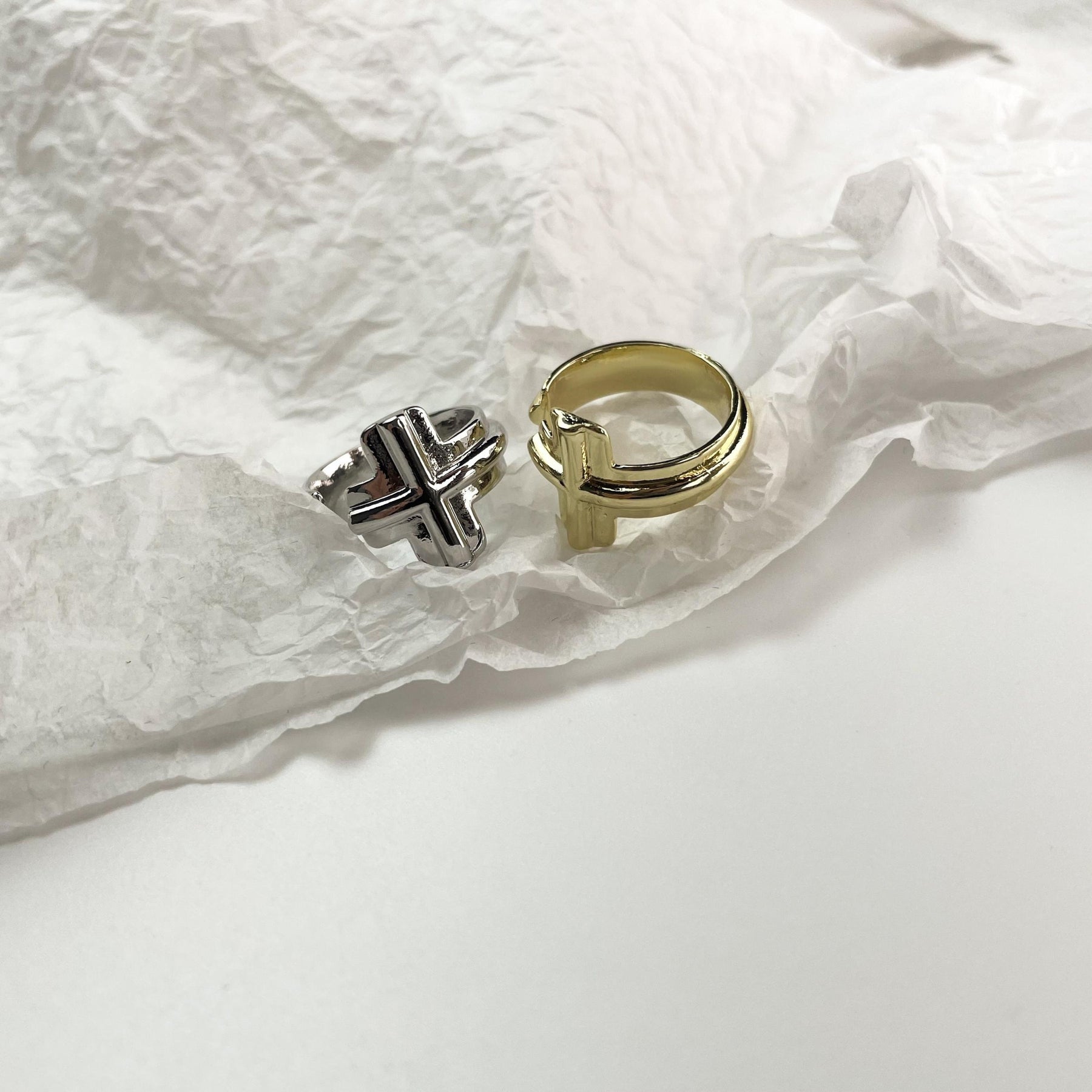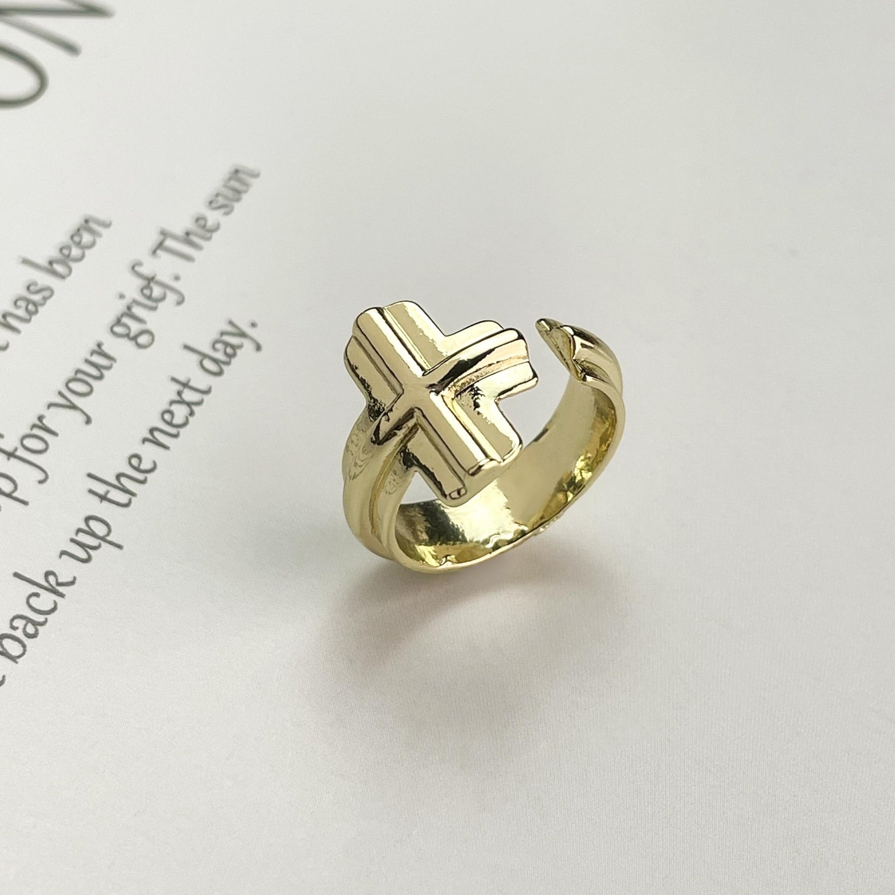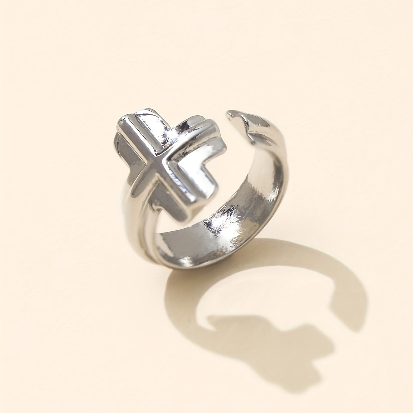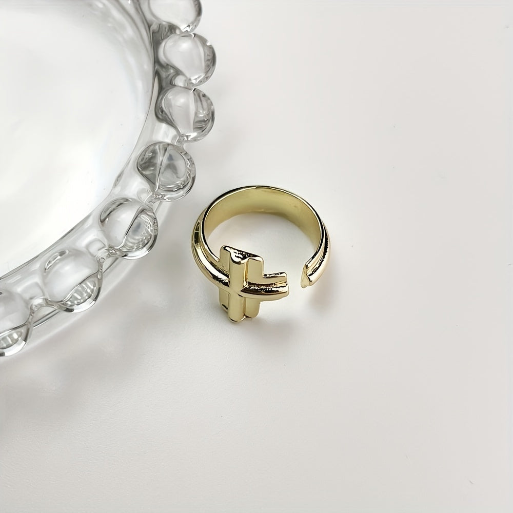 • Stylish cuff ring with cross decor
