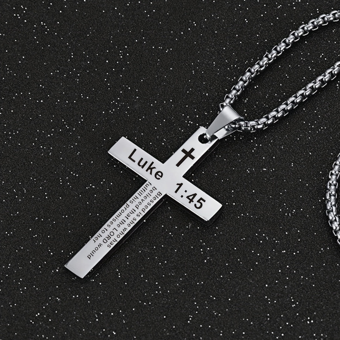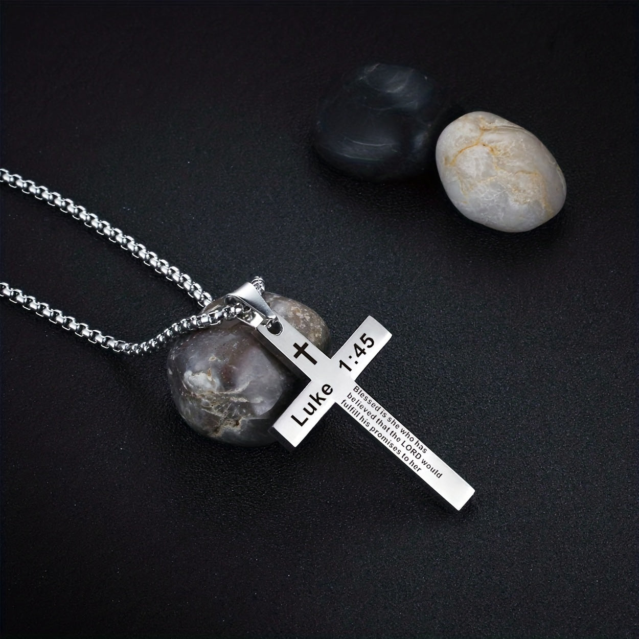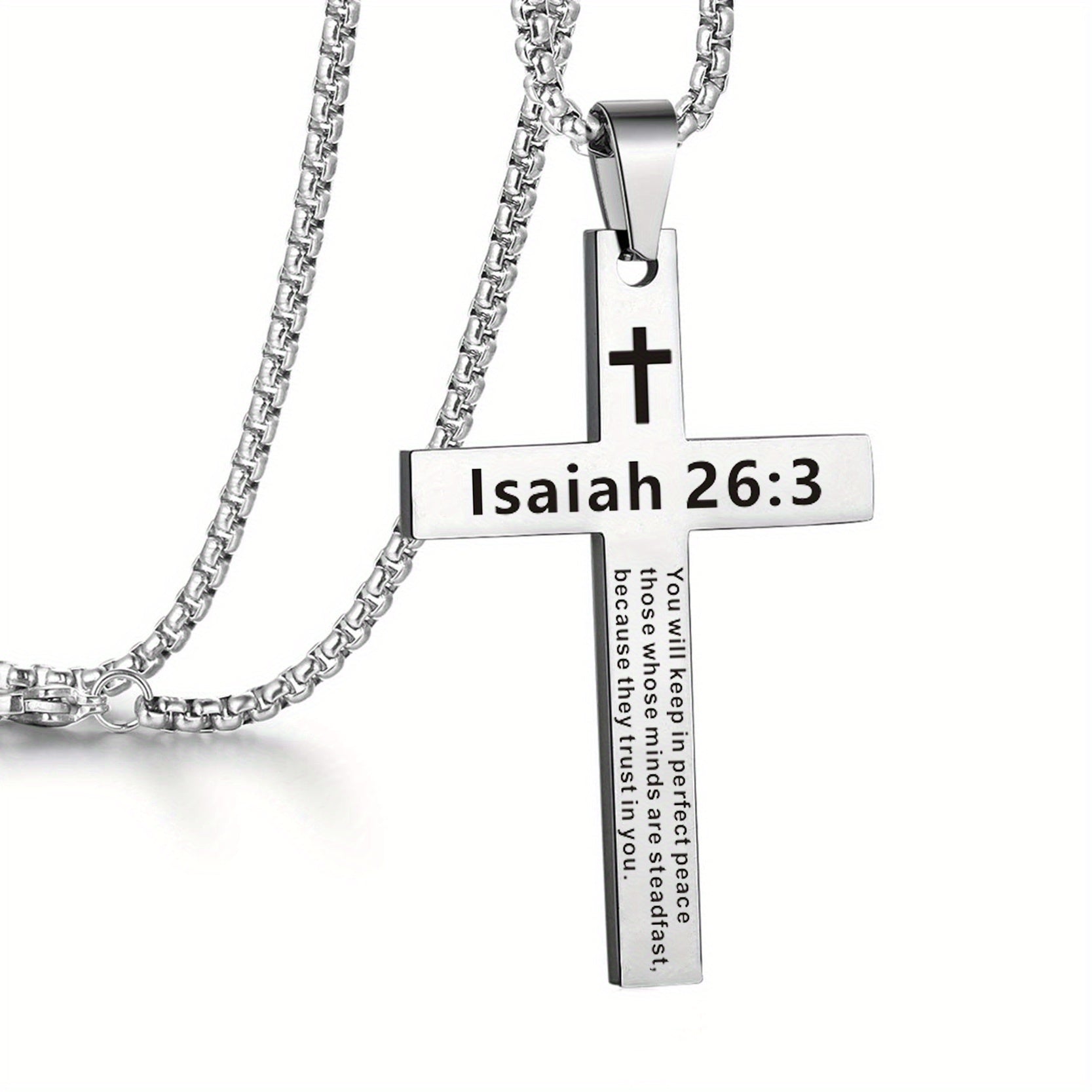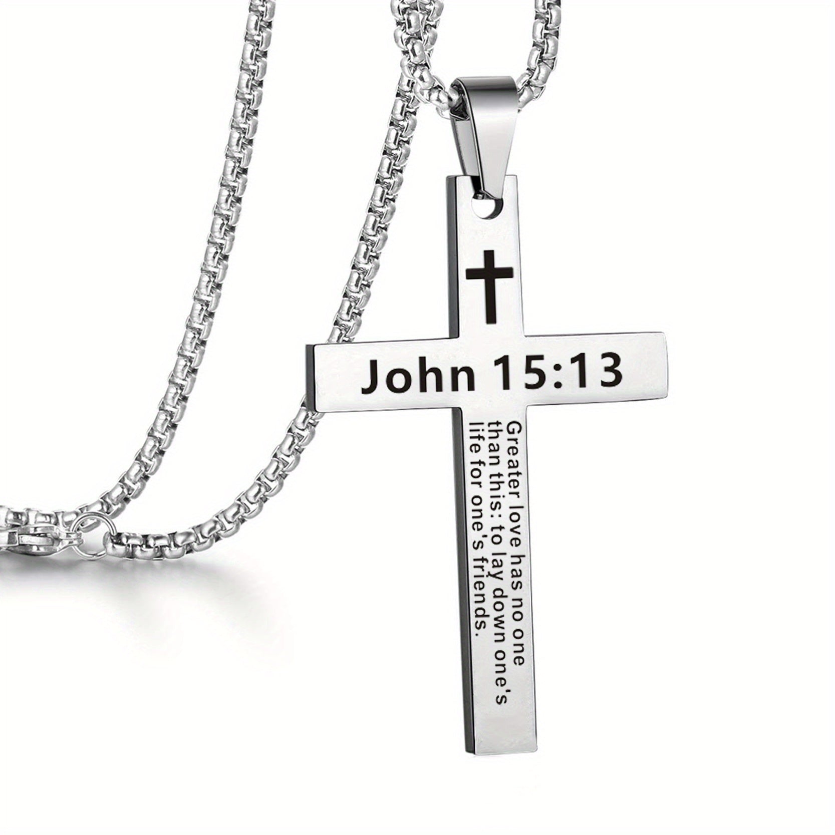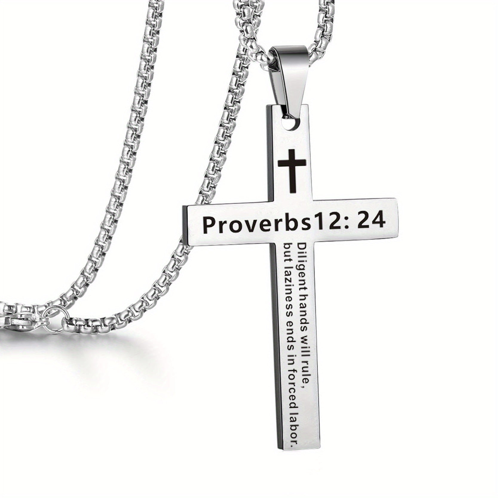 This cross pendant for men is a stylish accessory made from stainless steel. It features a Bible verse design, perfect for parties and special occasions. An ideal gift for Thanksgiving, Christmas, birthdays, or any festive event.