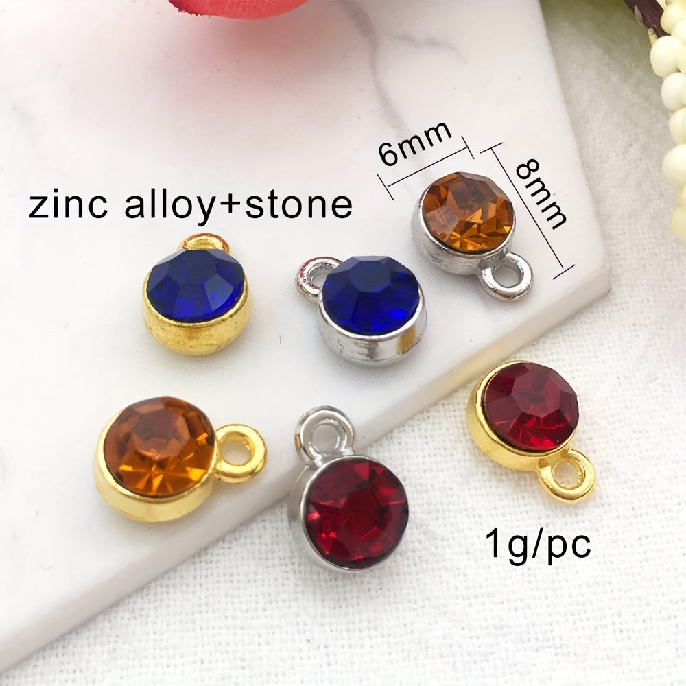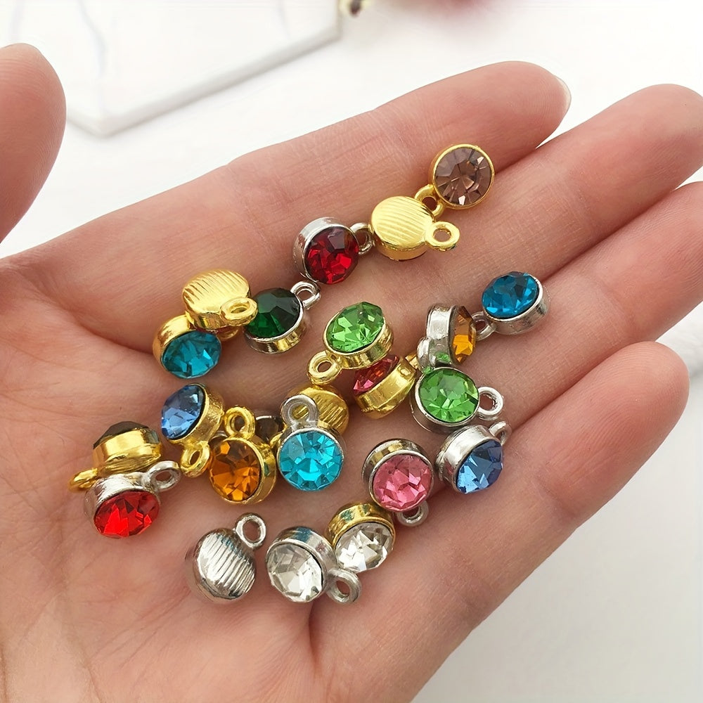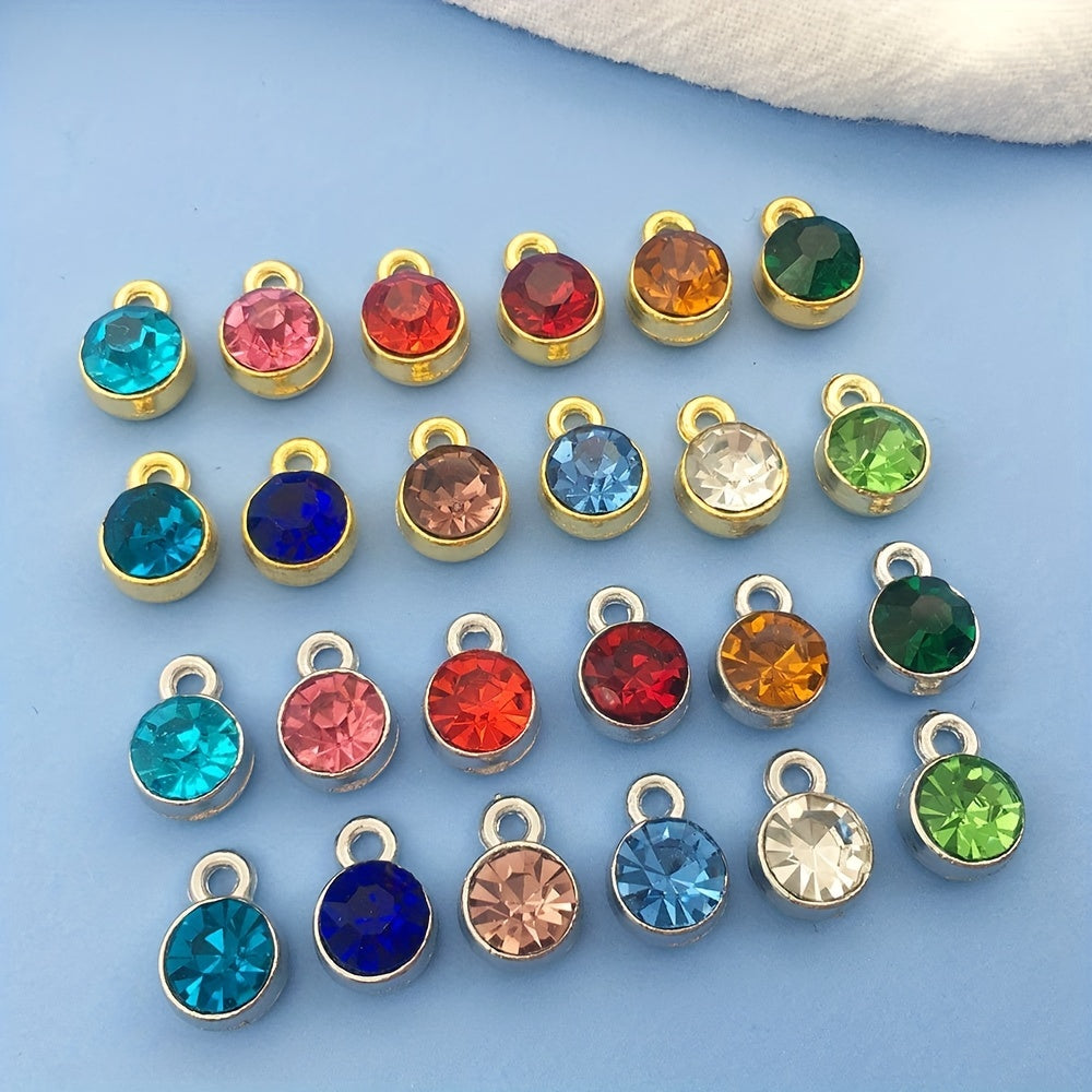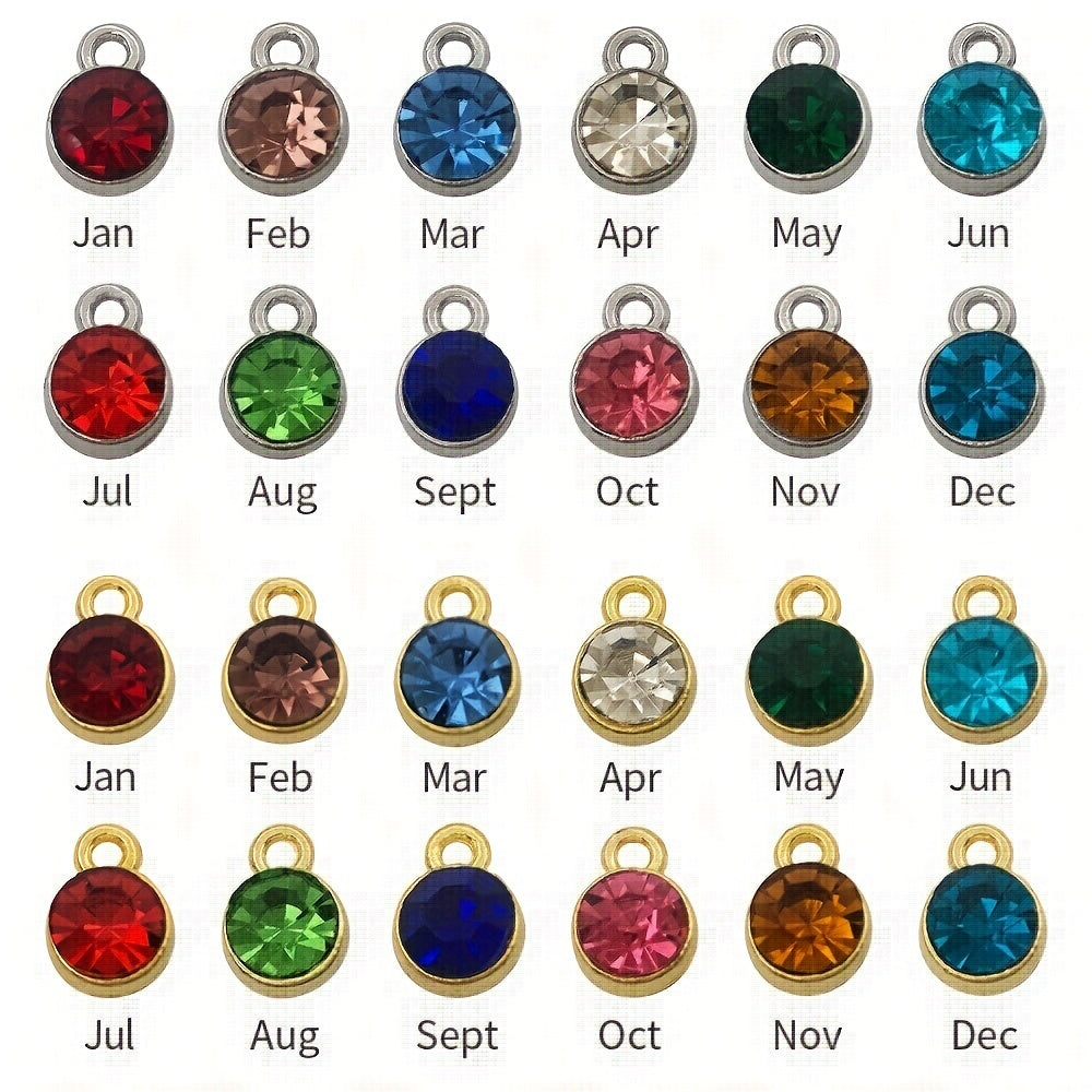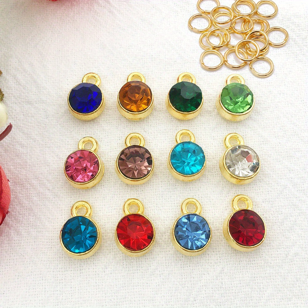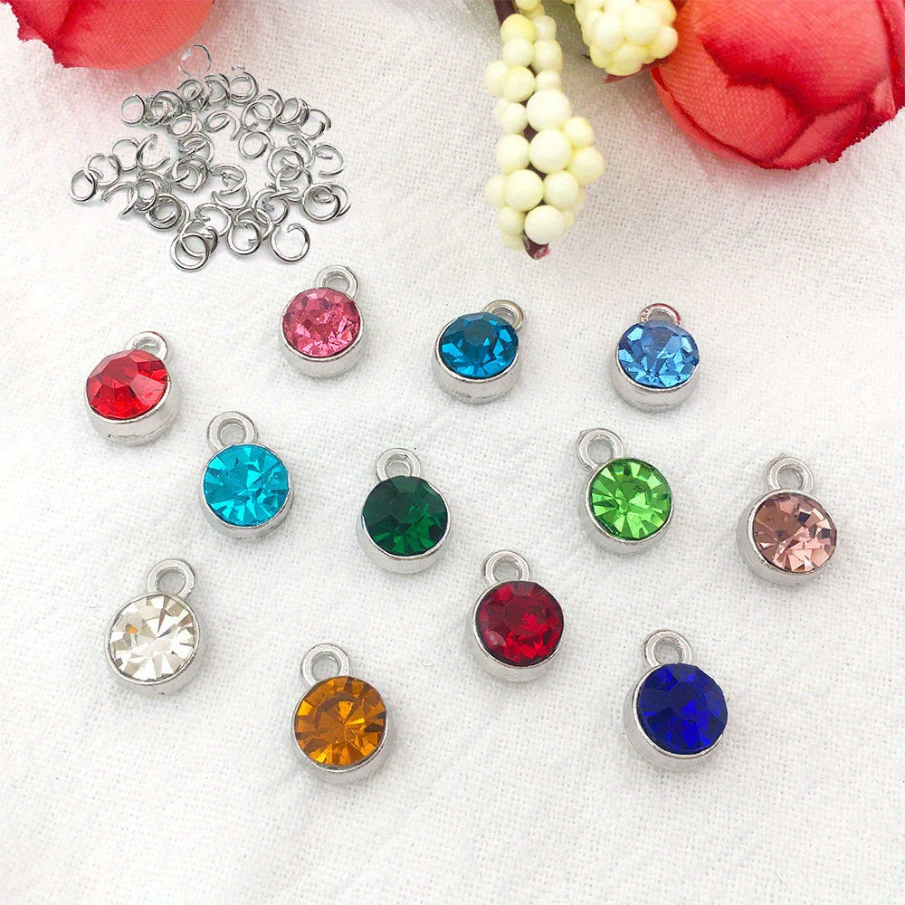 Round crystal birthstones with open jump rings for necklace, bracelet, earring making. Dangle these pendants in 12 colors to add a touch of elegance.