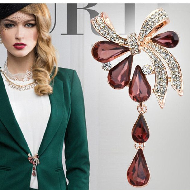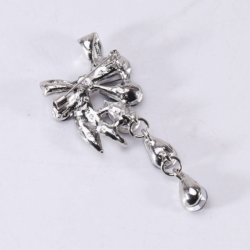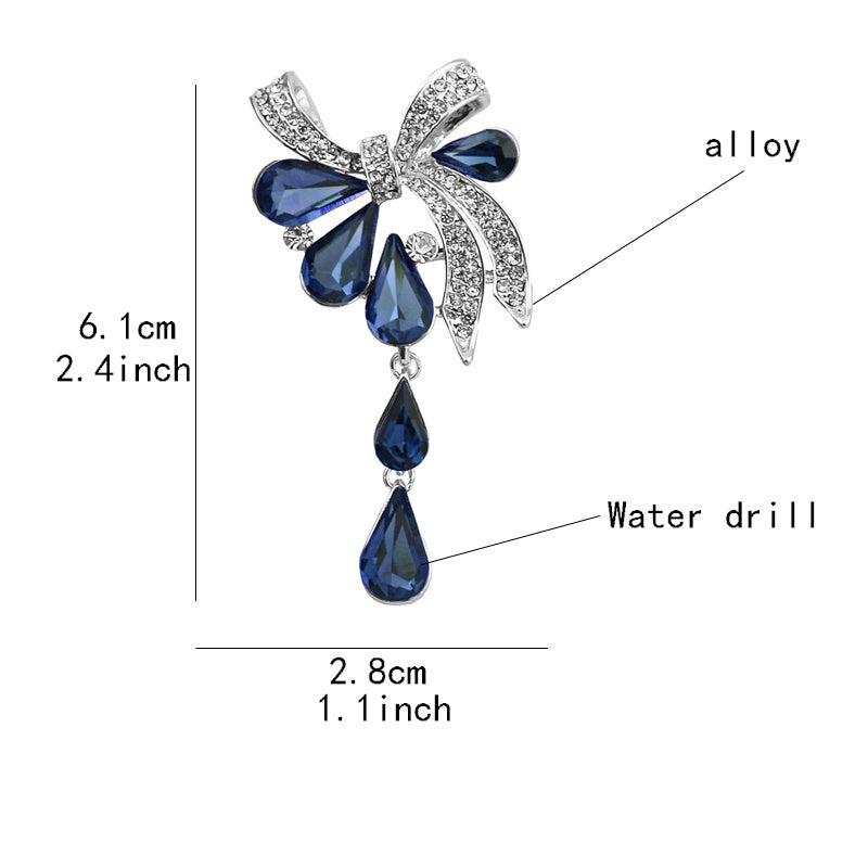 Add a touch of elegance to your outfit with this stunning crystal drop brooch featuring a bowknot design. Perfect for parties, weddings, or any special occasion.