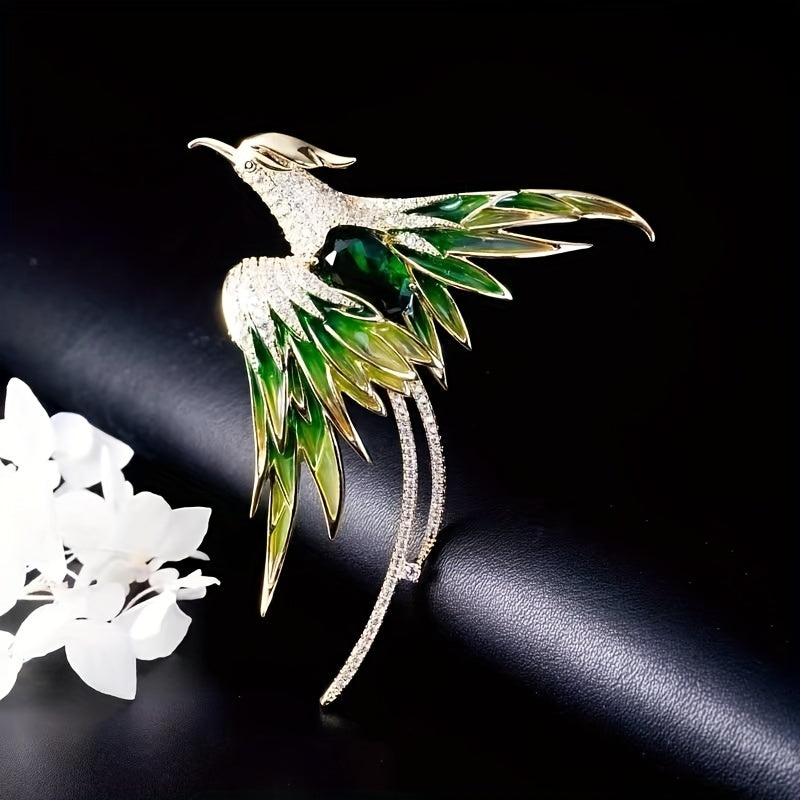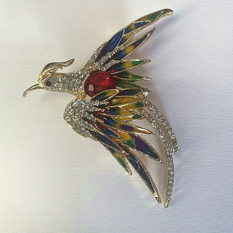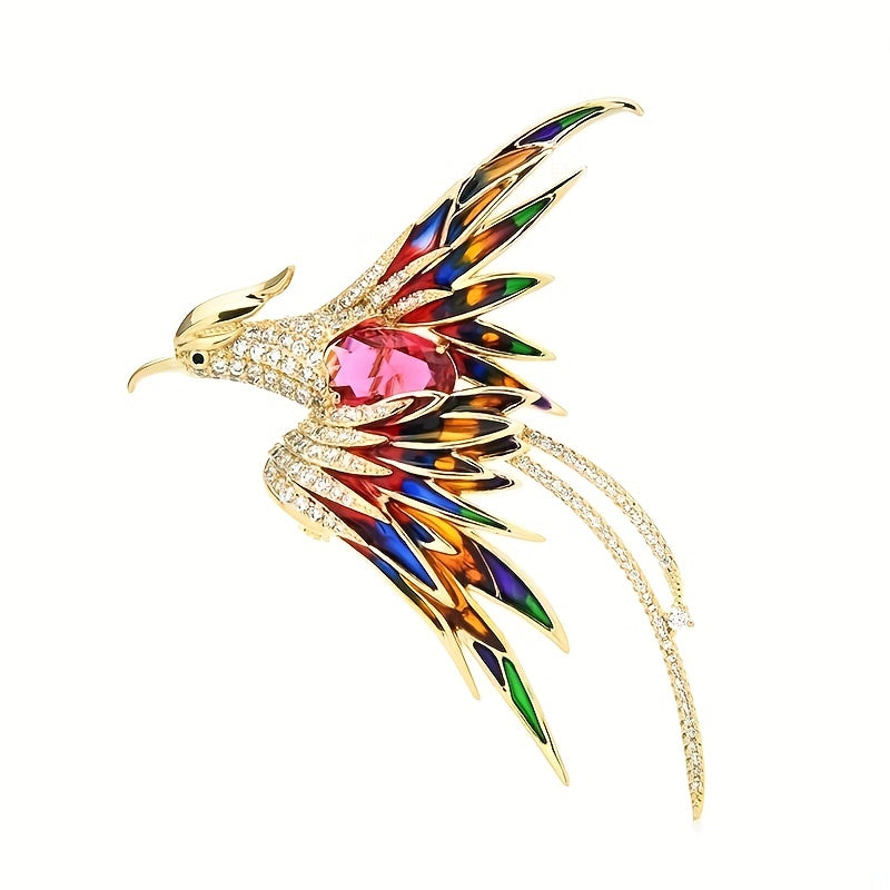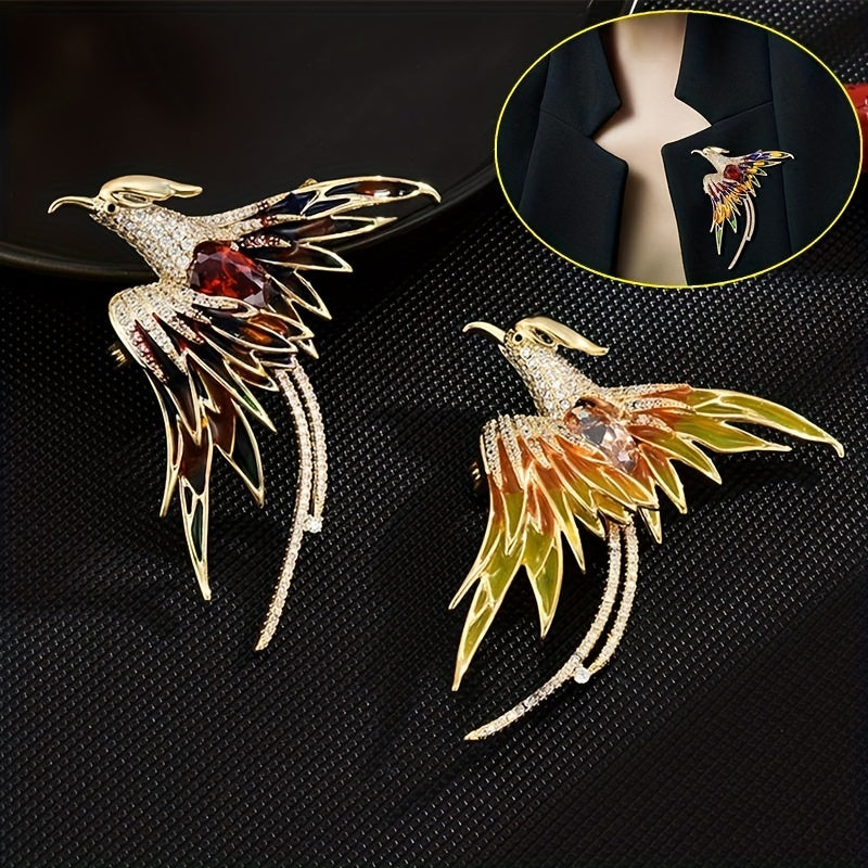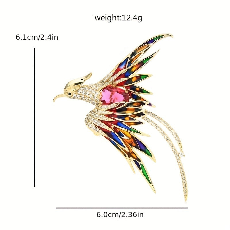 Add a touch of elegance to your outfit with this stunning Crystal Phoenix Rhinestone Brooch. Featuring a majestic phoenix design adorned with sparkling rhinestones, this enamel brooch will elevate your style.