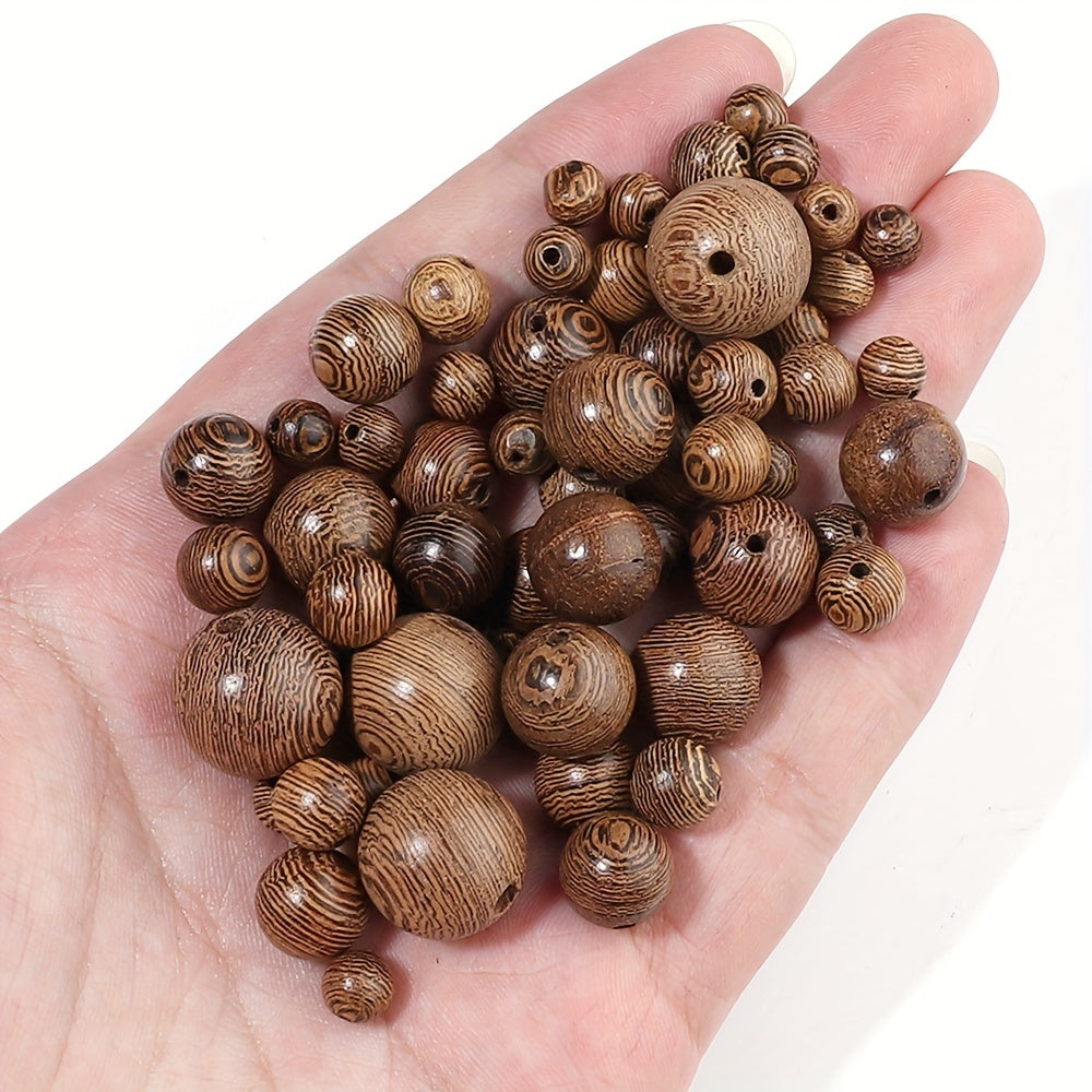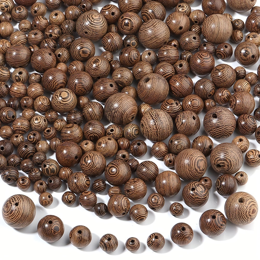 These dark brown wooden beads are perfect for bracelets and jewelry making. They are undyed, natural stripe round wood beads.