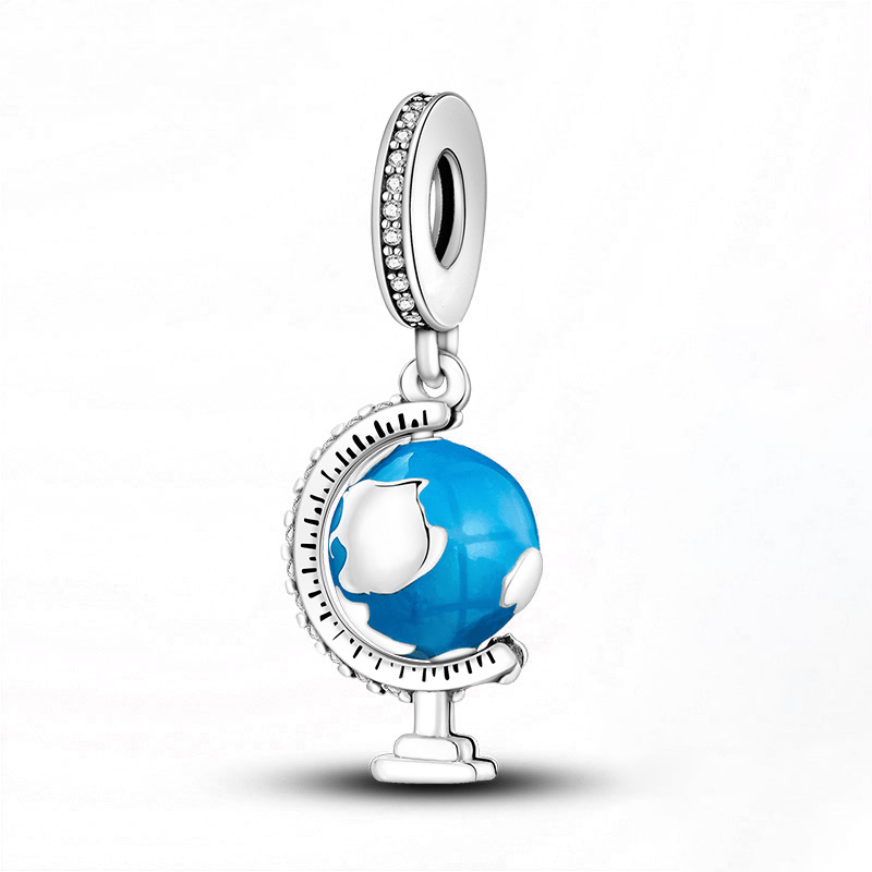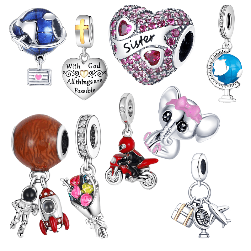 This crystal beaded bracelet accessory features a charming design with astronaut, flowers, motorcycle, and globe silver charms. Perfect for DIY women's bracelet or necklace.
