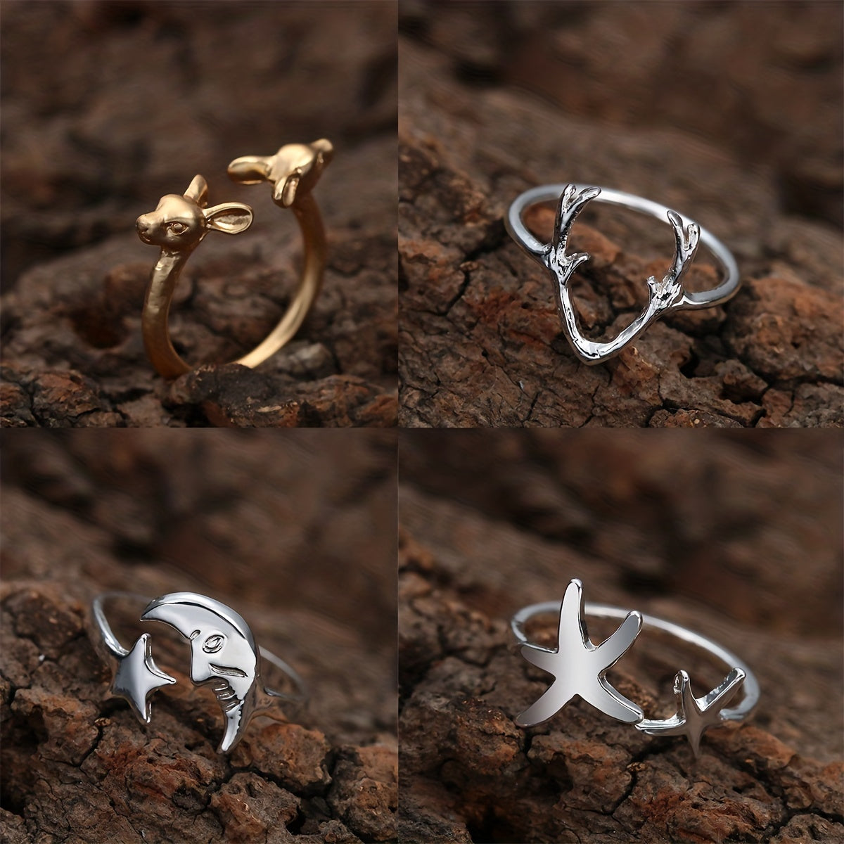 This unique Deer Head Ring with Moon and Stars design is perfect for Christmas, couples, or wedding gifts. Surprise your loved ones with this stunning and meaningful ring.