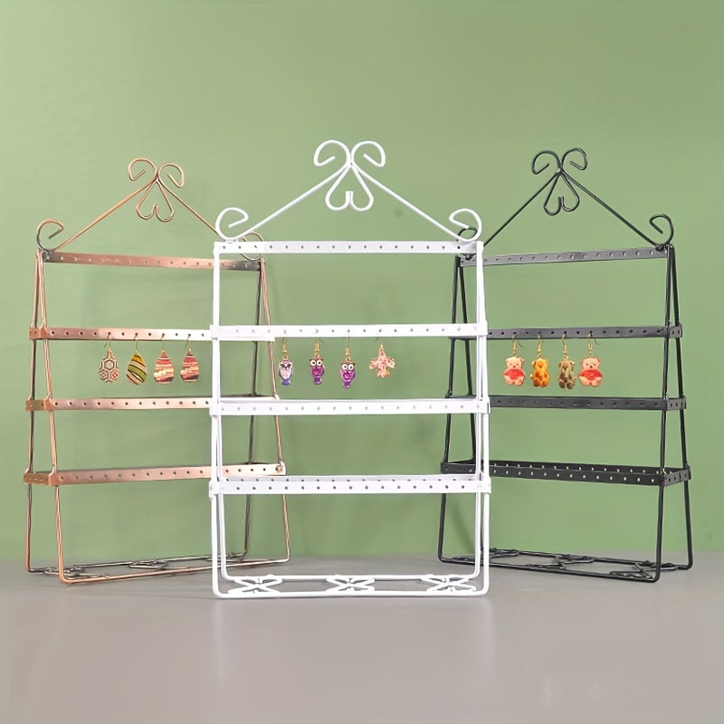 Keep your metal earrings organized with this earring stand that can hold up to 56 pairs. Perfect for displaying and storing your earring accessories.