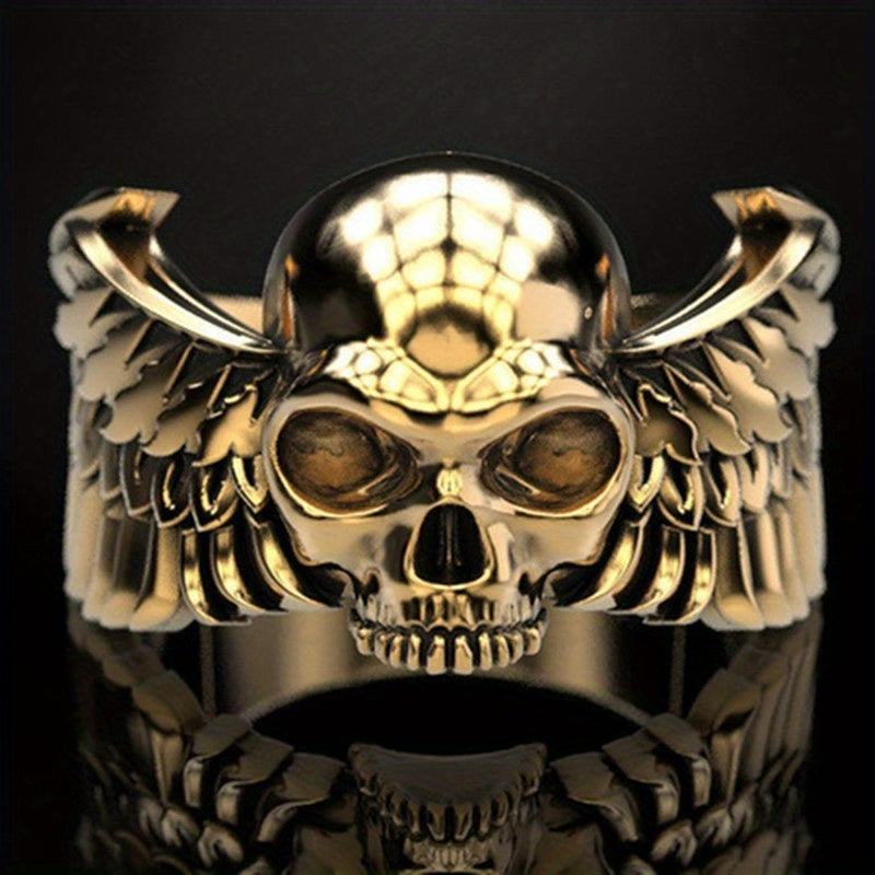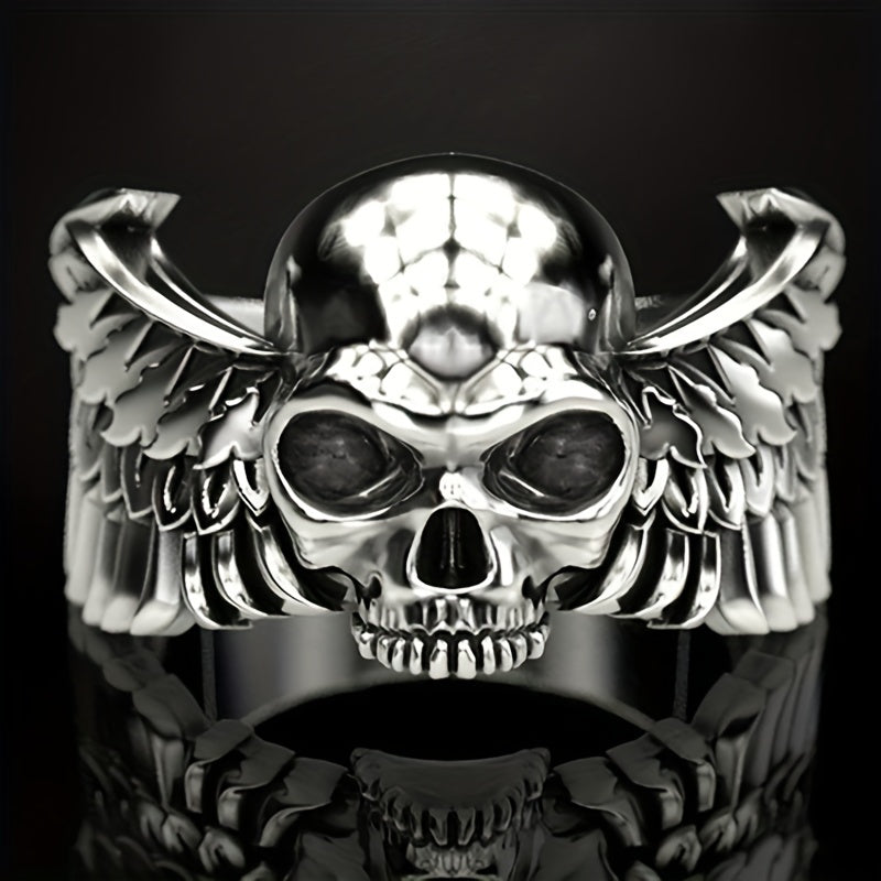 This Devil's Wing Skull Ring is a bold statement piece for men who love punk and hip hop styles. Made from high-quality materials, it features intricate design details.