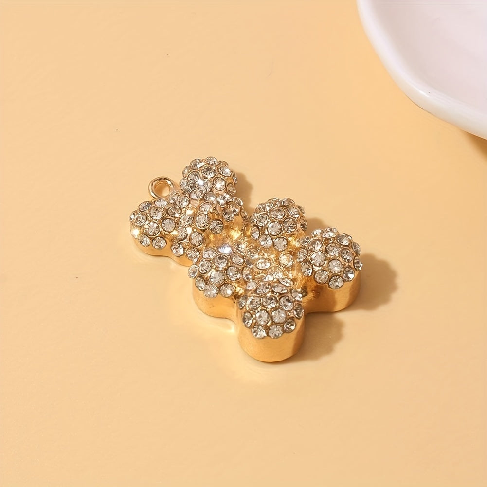 Add a touch of glamour to your clothing with this exquisite bear-shaped ornament. Made of golden alloy and adorned with artificial diamonds, this accessory is sure to sparkle and shine.