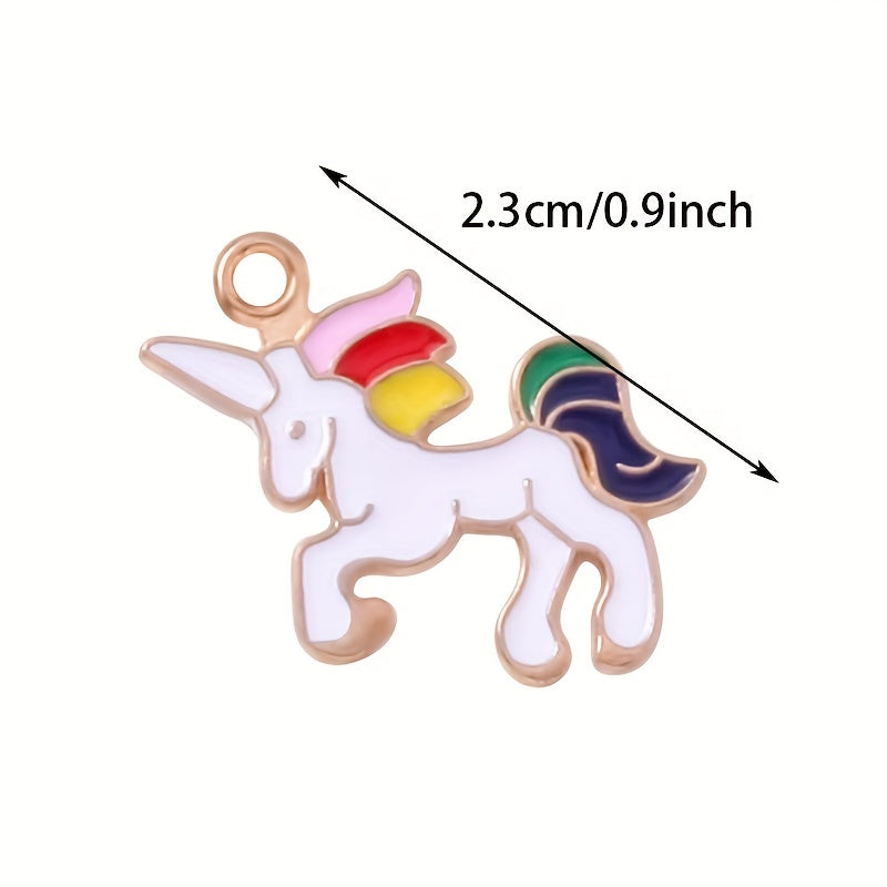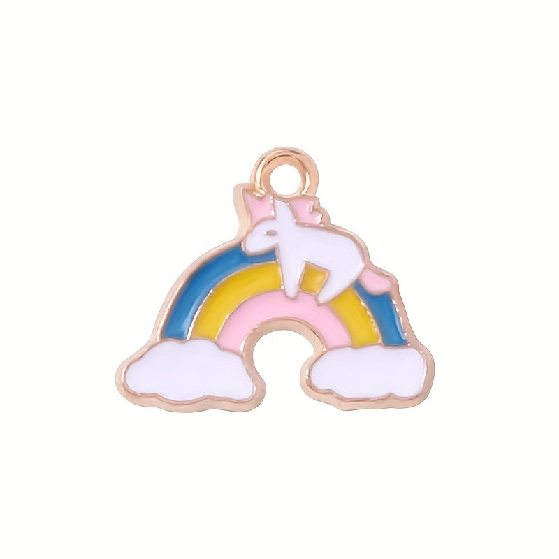 Explore the magical world of unicorns with this DIY alloy accessories set featuring rainbow-themed designs. Create your own unique jewelry pieces or accessories with these charming unicorn rainbow elements.