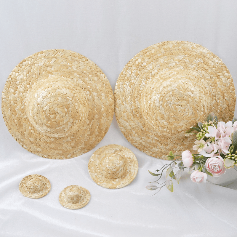 Adorn your dolls with this handwoven straw hat, perfect for DIY jewelry and craft projects. Give your dolls a chic and stylish look with this mini straw hat.