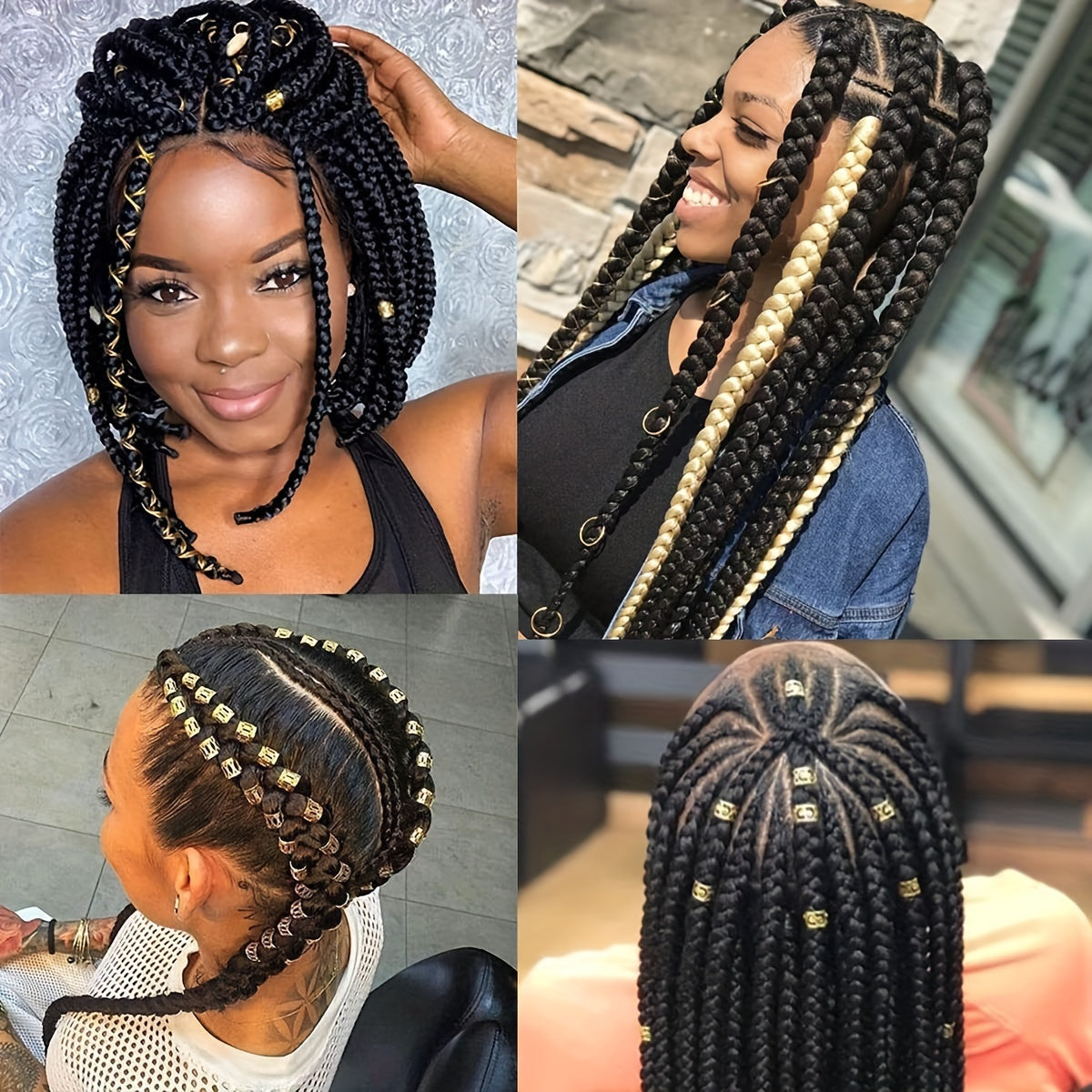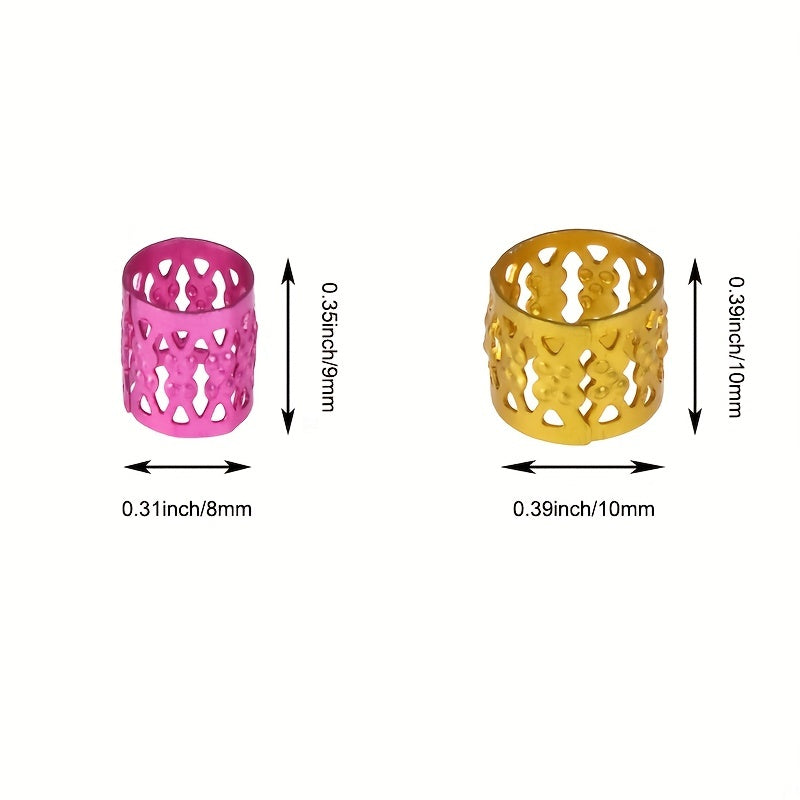 Add a touch of style to your dreadlocks or braids with these metal cuffs. Perfect for creating unique hairstyles.