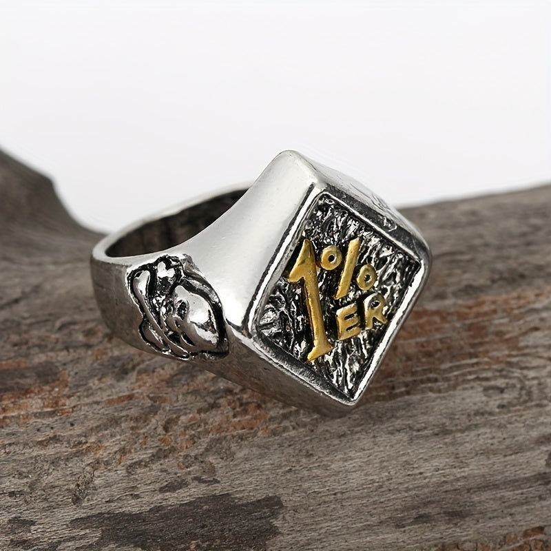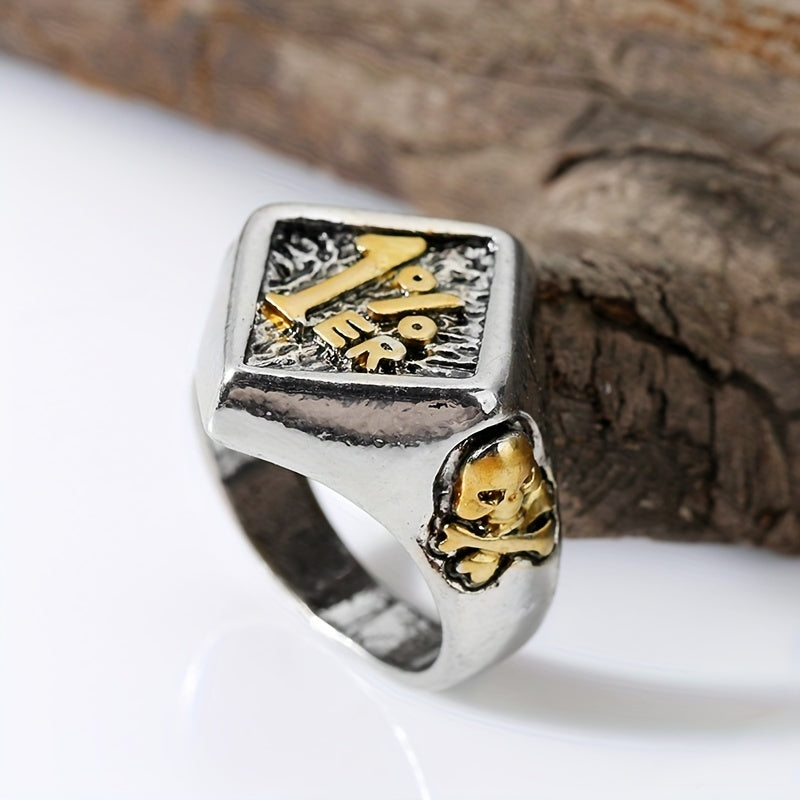 Stylish and edgy biker ring featuring a skull design. Made of high-quality materials in silvery and golden tones. Perfect for men who love motorbikes and unique accessories.