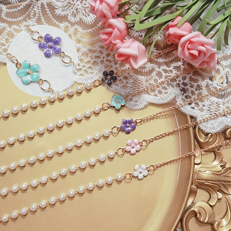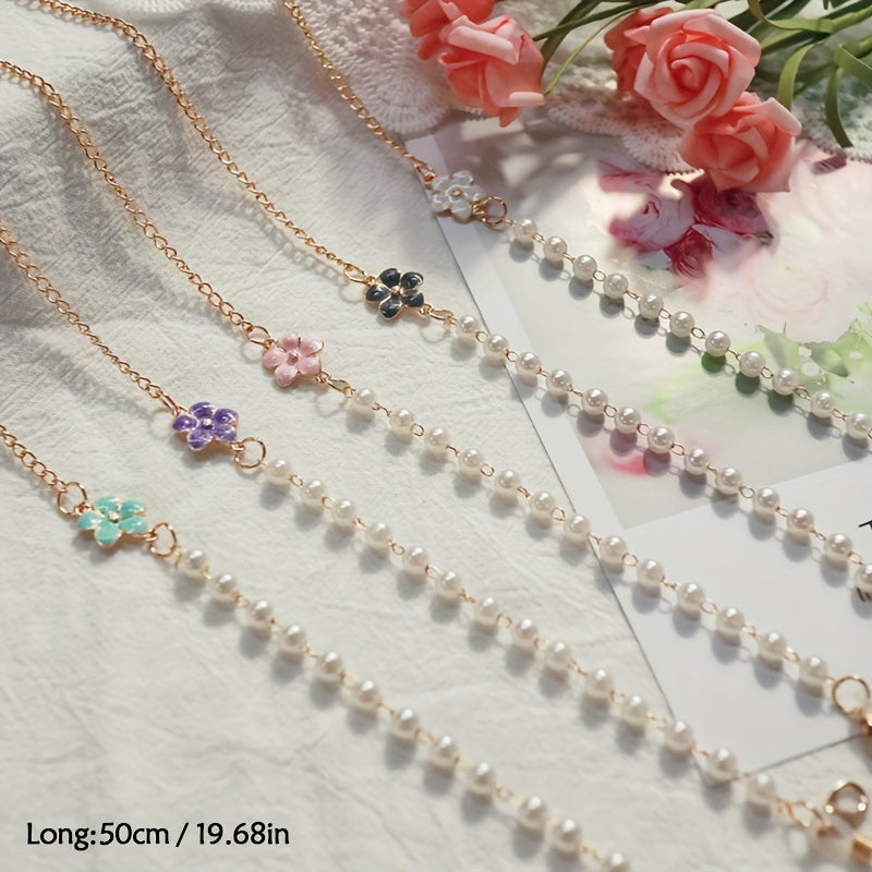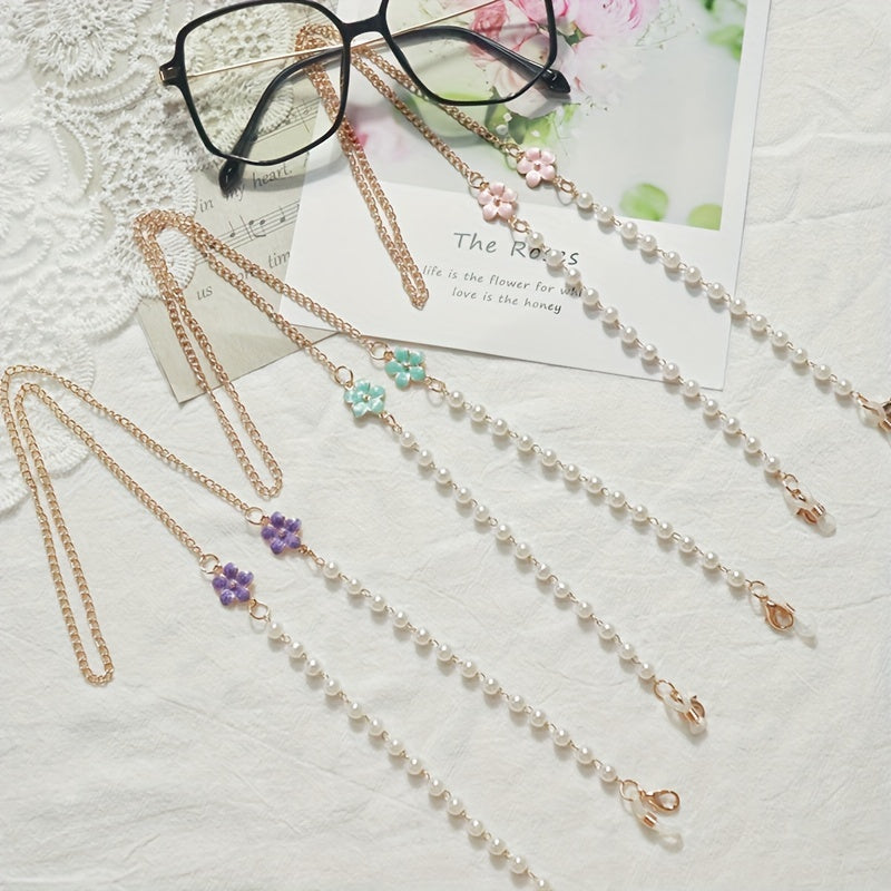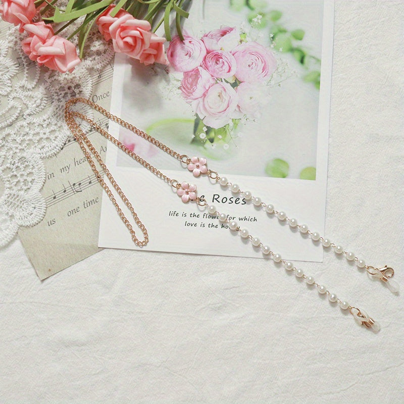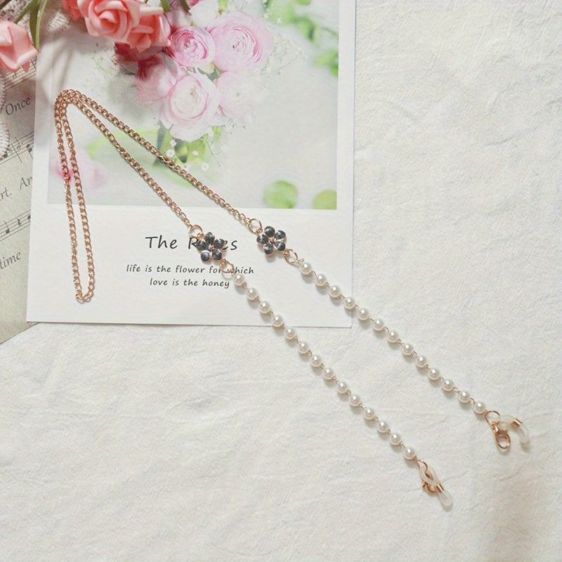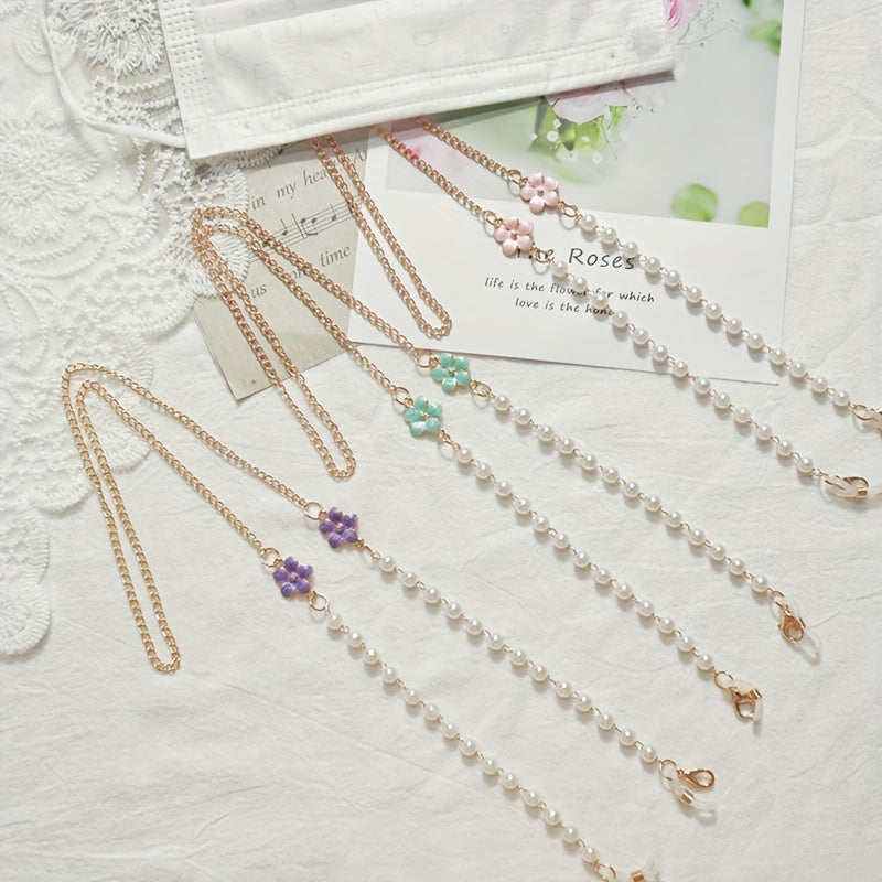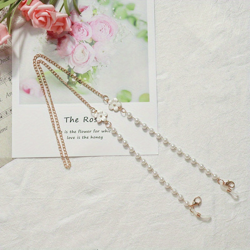 Keep your mask stylishly handy with this flower pendant faux pearl mask chain that also doubles as an eyeglasses chain. Perfect for women.