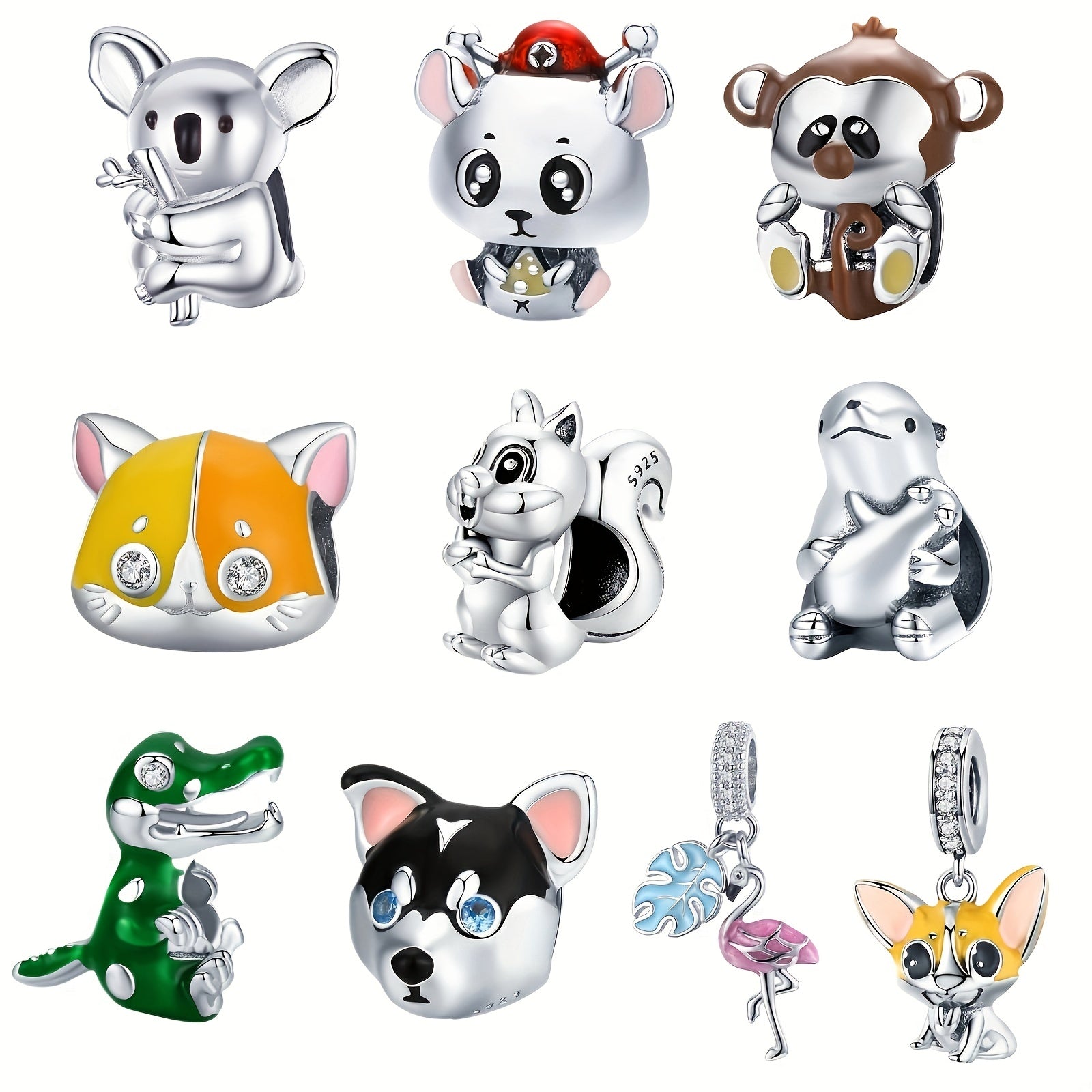 Funky Animals Cartoon Silver Bead Pendant DIY Jewelry