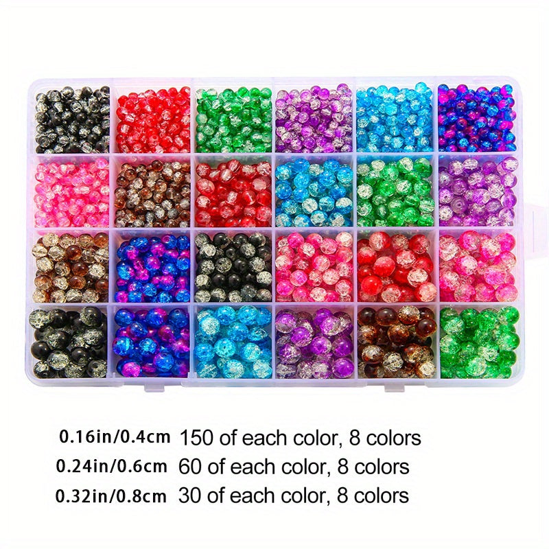 This set includes 24 grid glass inner brake beads for creating bracelets, necklaces, and other jewelry. The box contains 8 different types of loose beads.