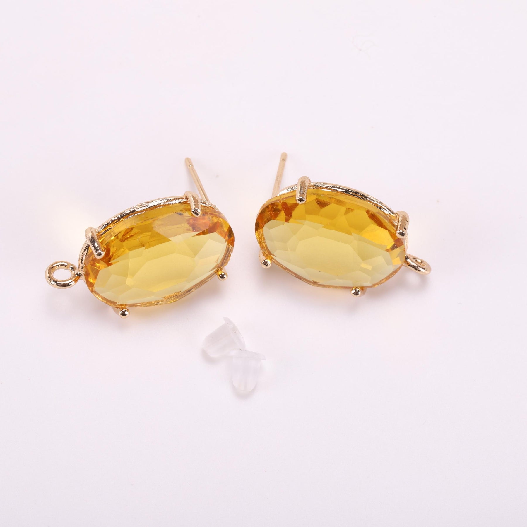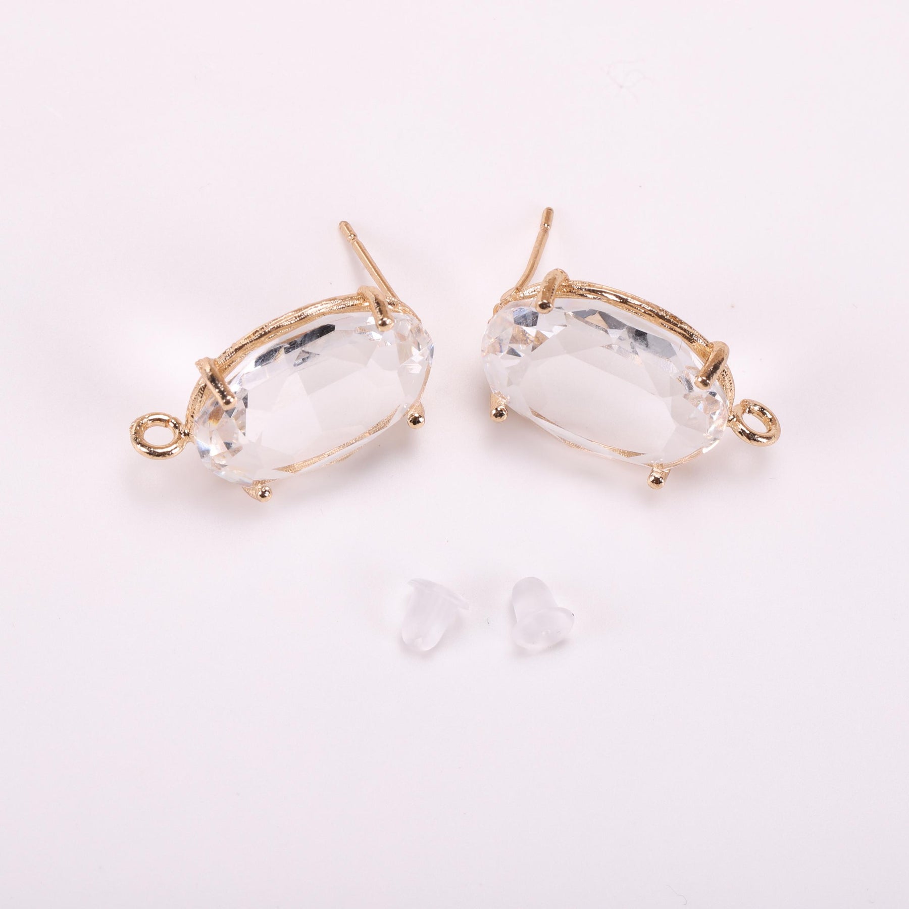 Elegantly crafted golden plated drop earrings featuring crystal glass oval straps. Perfect for DIY ear jewelry.