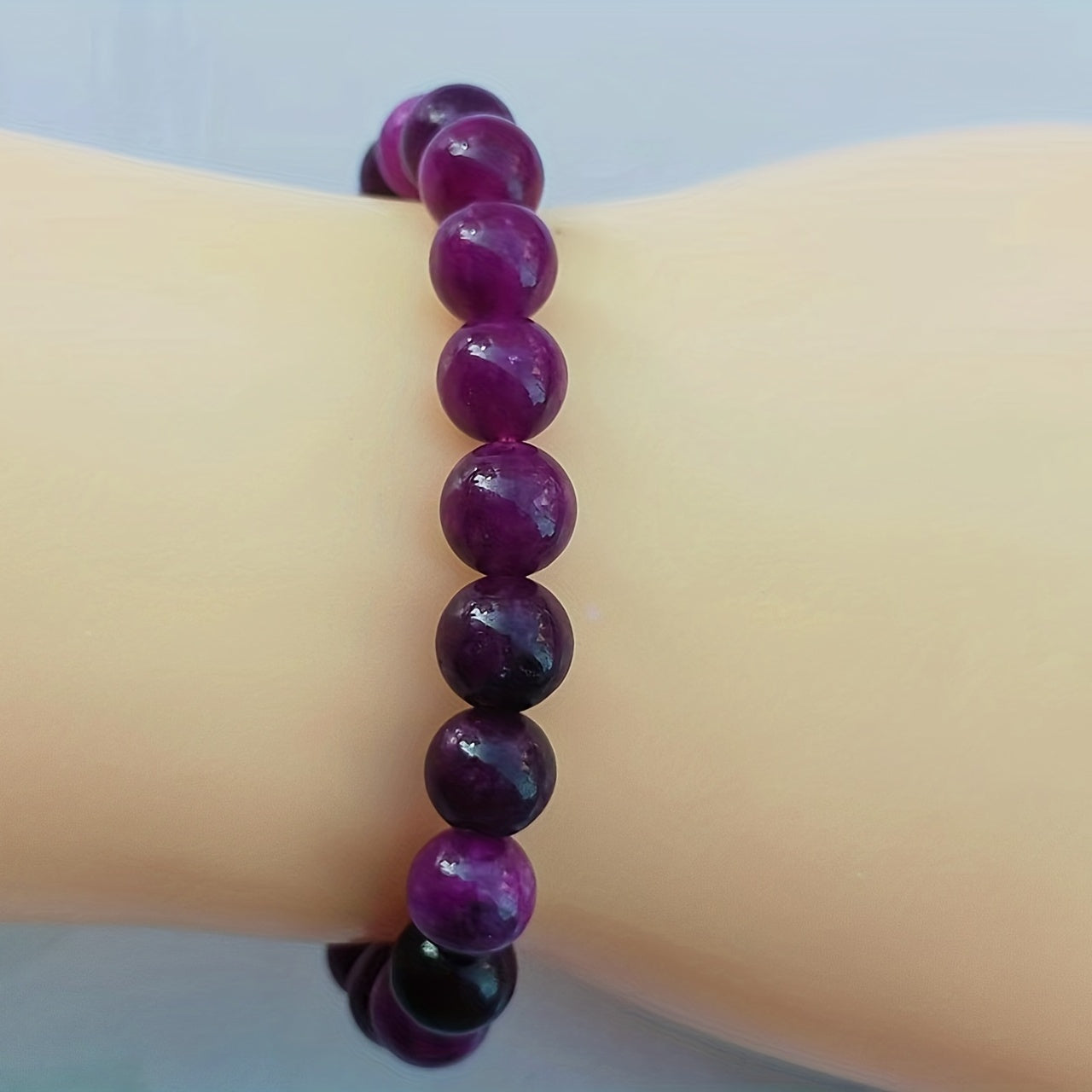 This elegant bracelet features natural purple stone beads that make it a perfect gift ornament accessory for boys and girls.
